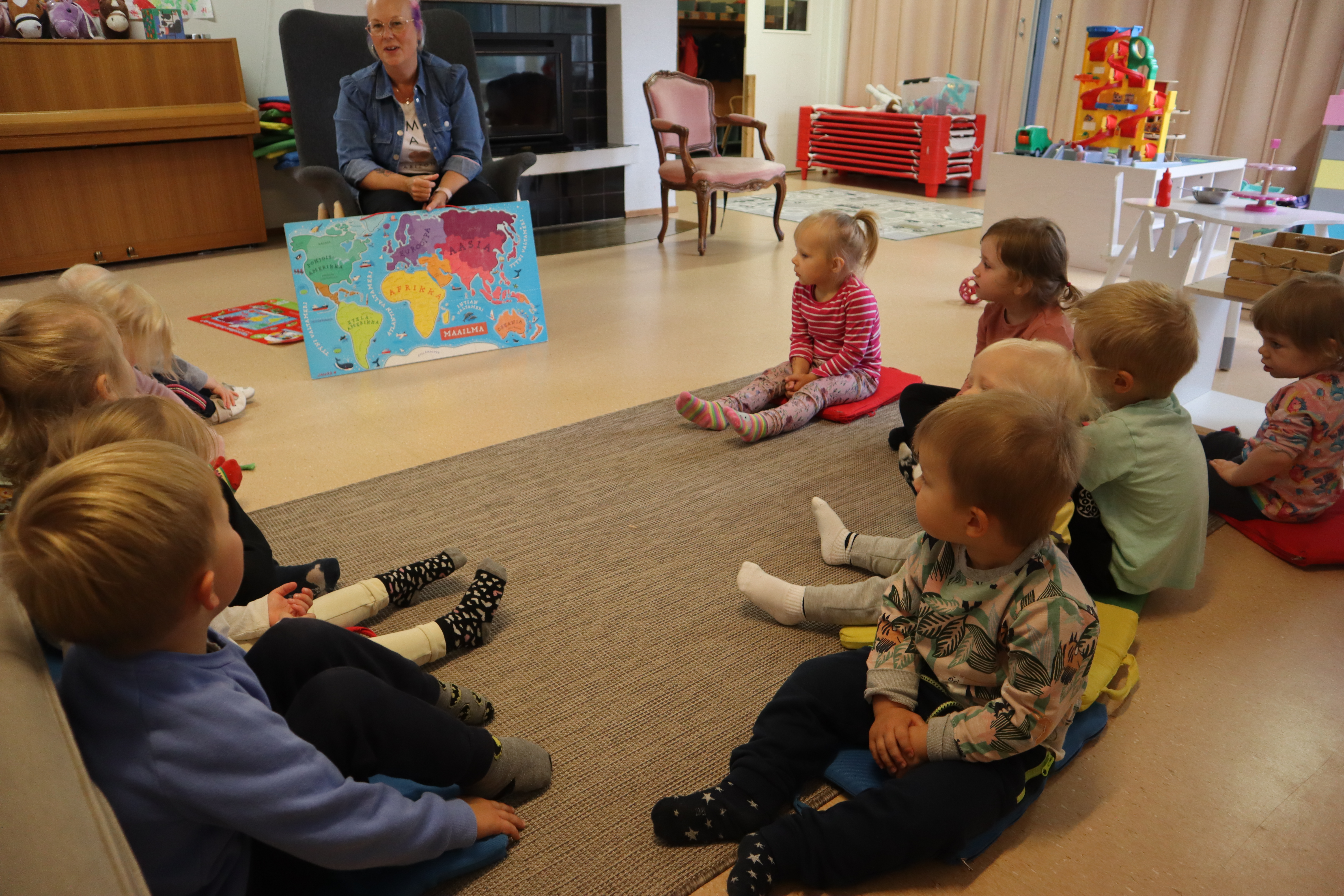 Maanantaina aamupiirillä tutustuimme hieman maailmankarttaan ja paikansimme sieltä kotimaamme Suomen. Tutkimme yhdessä Suomen karttaa ja löysimme sieltä paljon tuttuja kaupunkeja kuten Tampere (aika moni tiesi asuvansa siellä), Helsinki, Oulu ja Lappi (täälläkin oli moni käynyt) Keskustelimme kotimaan matkailusta ja nähtävyyksistä mitä Suomessa on…