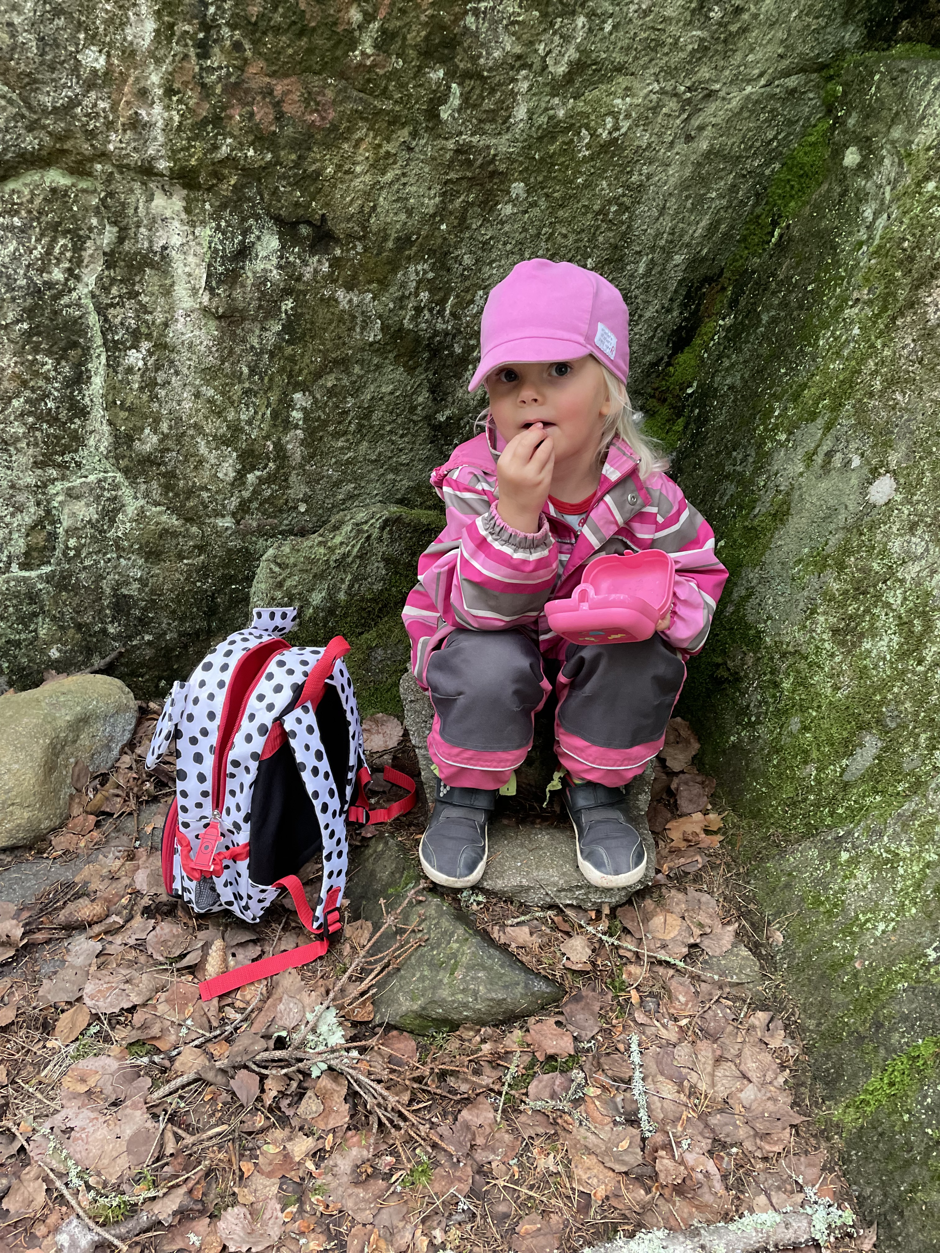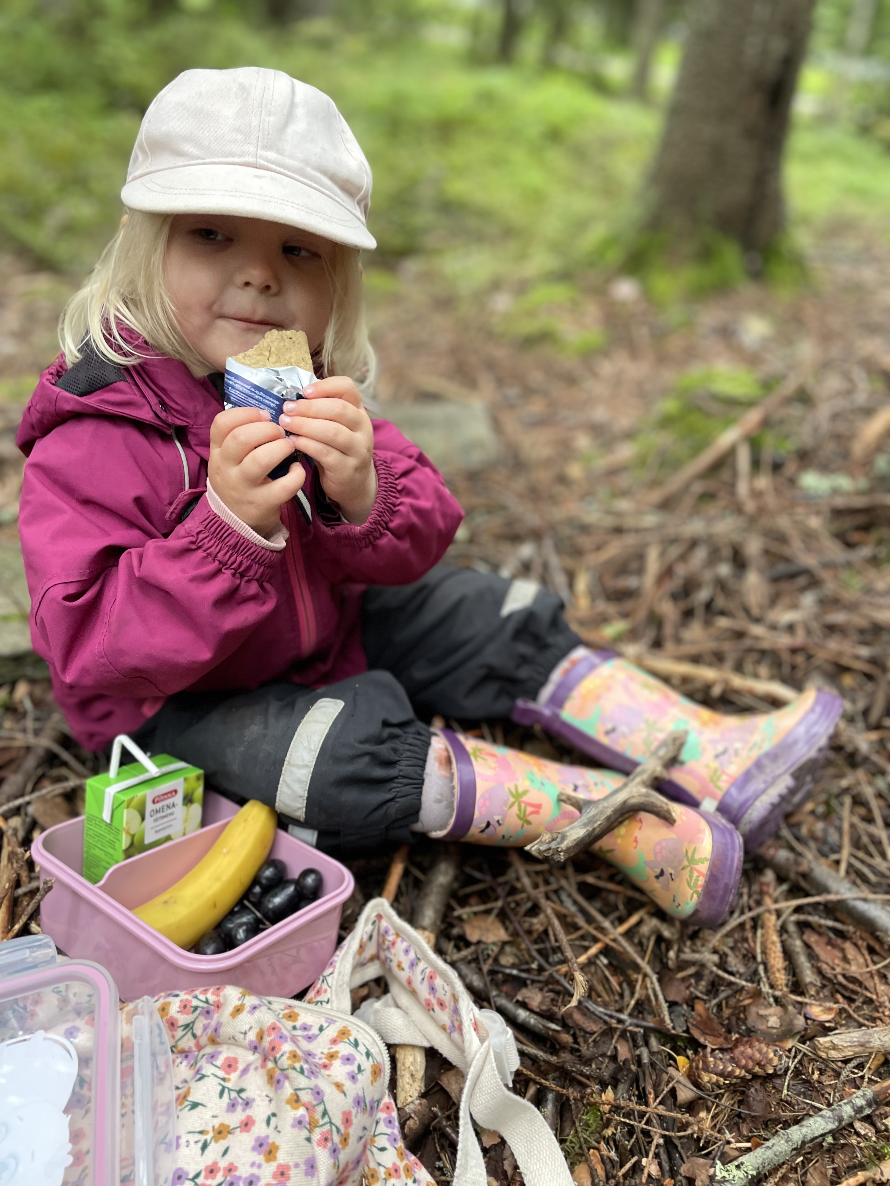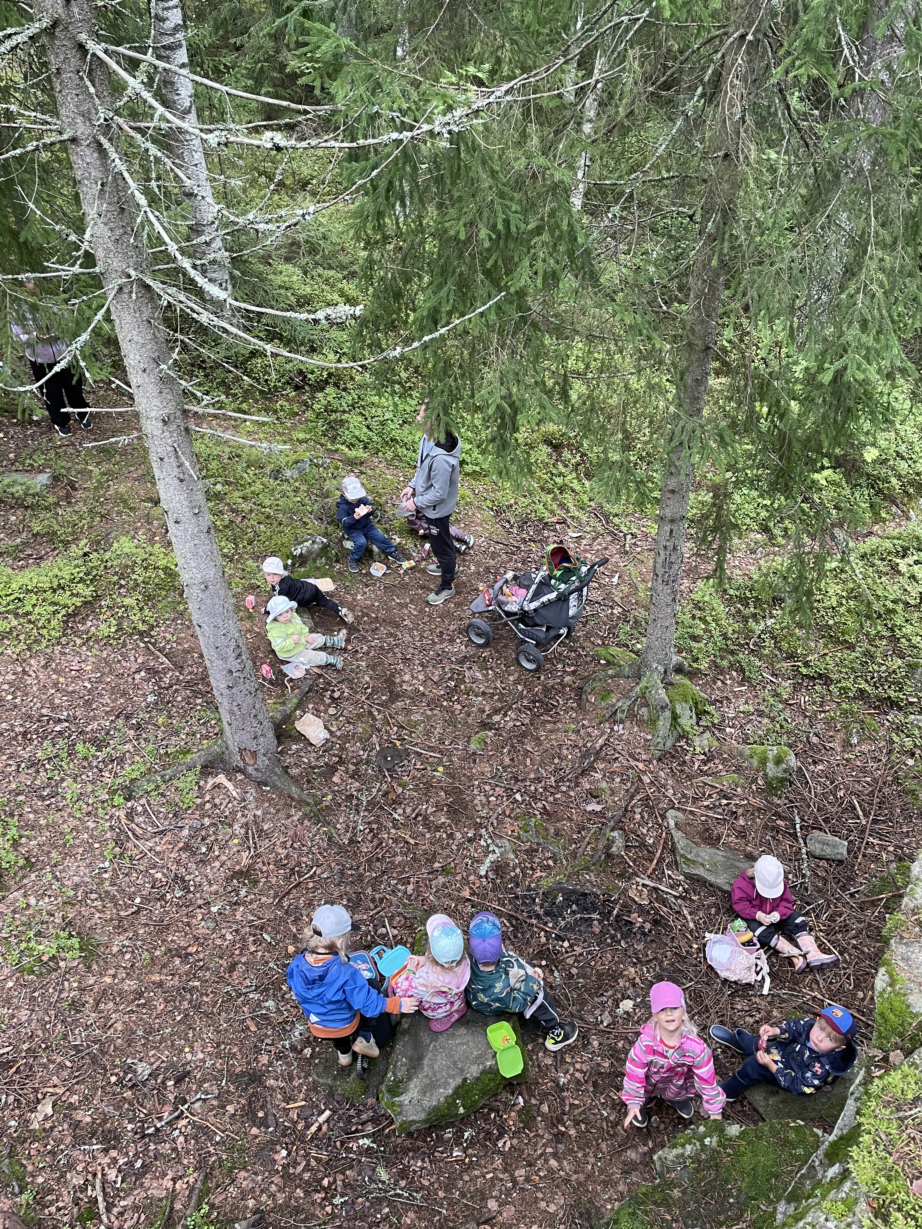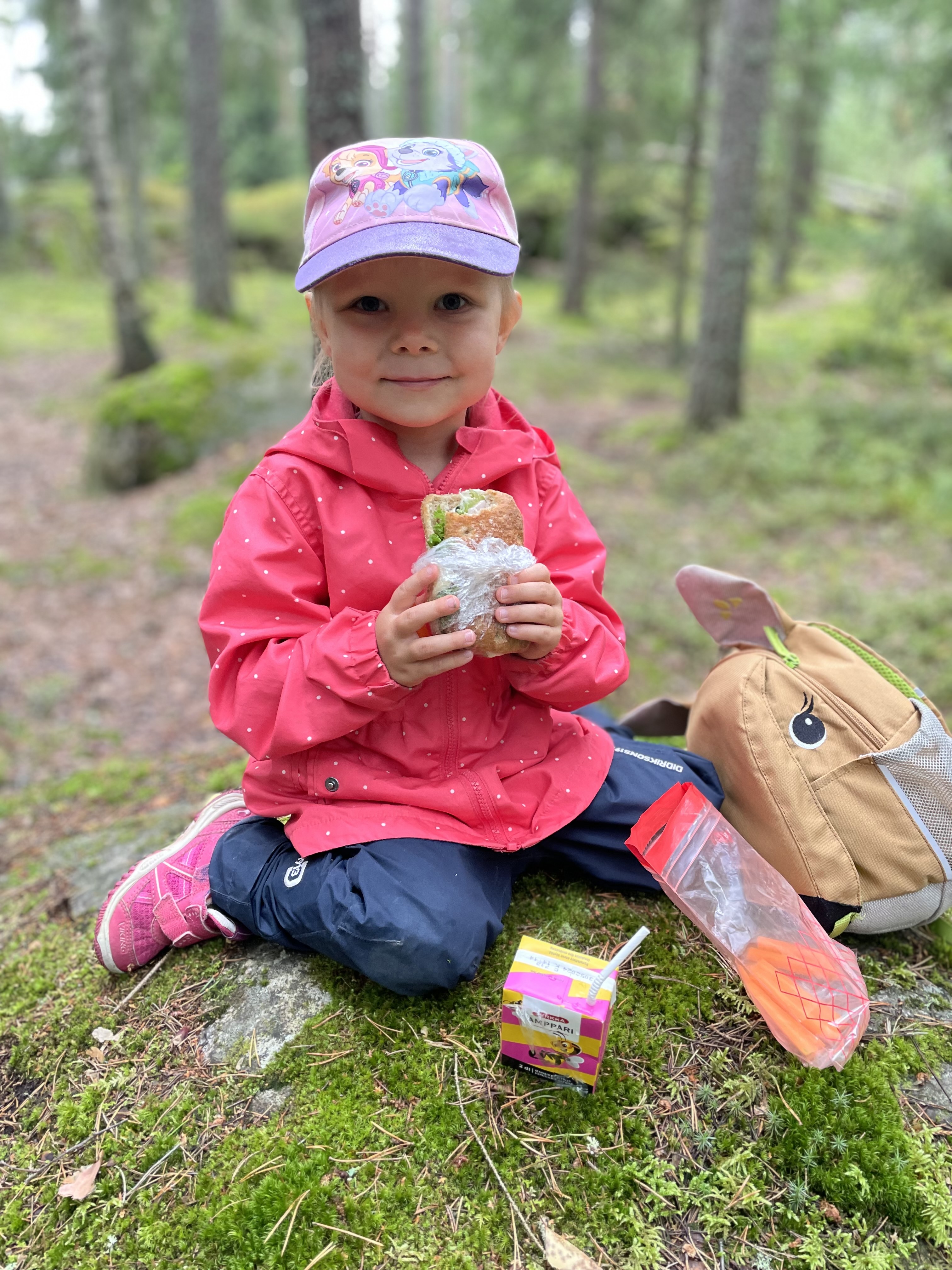 Maanantain ohjelmassa oli eväsretki Suomalaiseen metsään. Onneksi kerkesimme ennen rankkasadetta 🙂