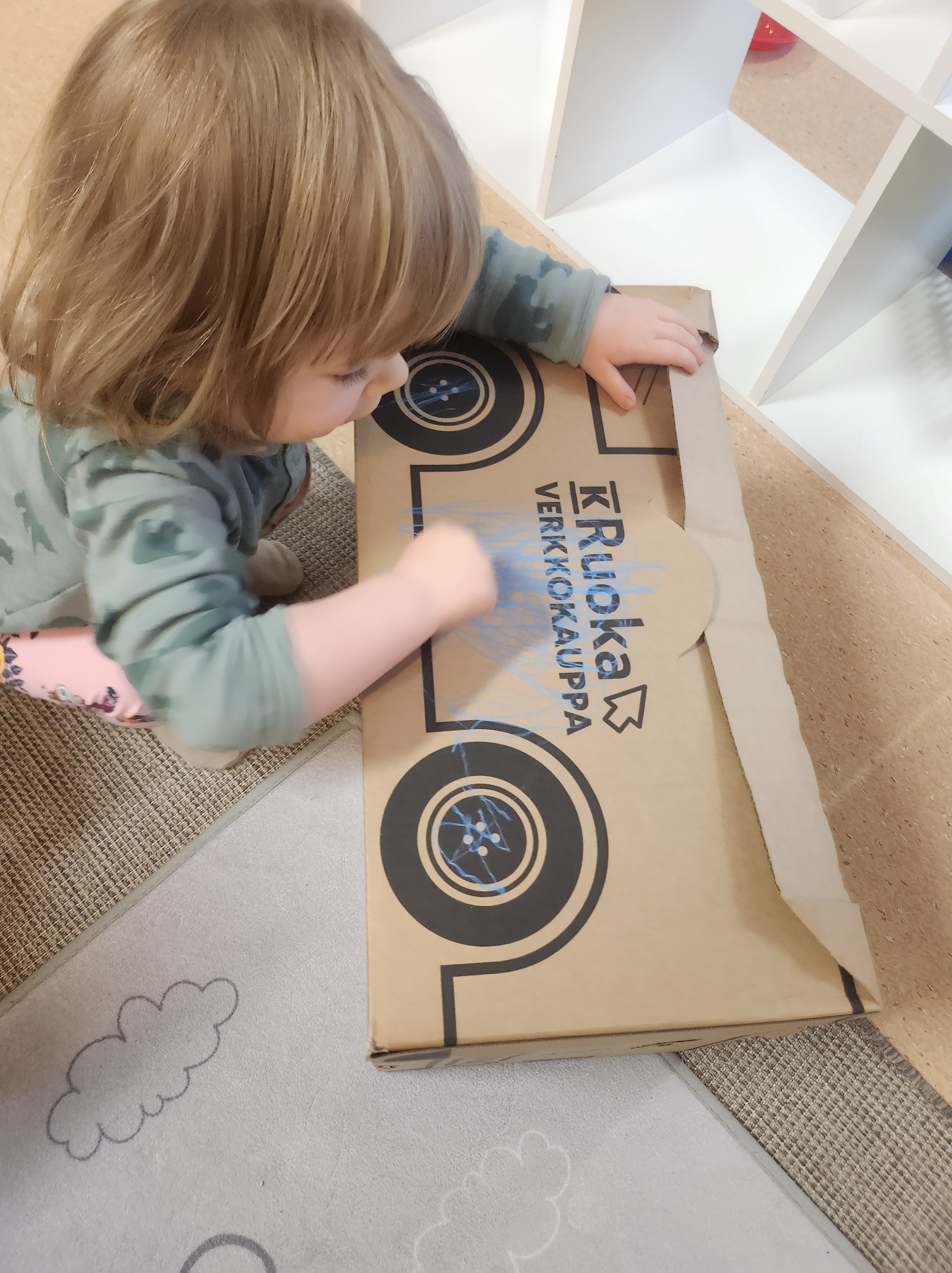 Citymarketin pahvilaatikoissa on ajateltu lapsia koska huomasimme, että niistä todella saa tehtyä autot 🙂 näillä leikittiin kovasti