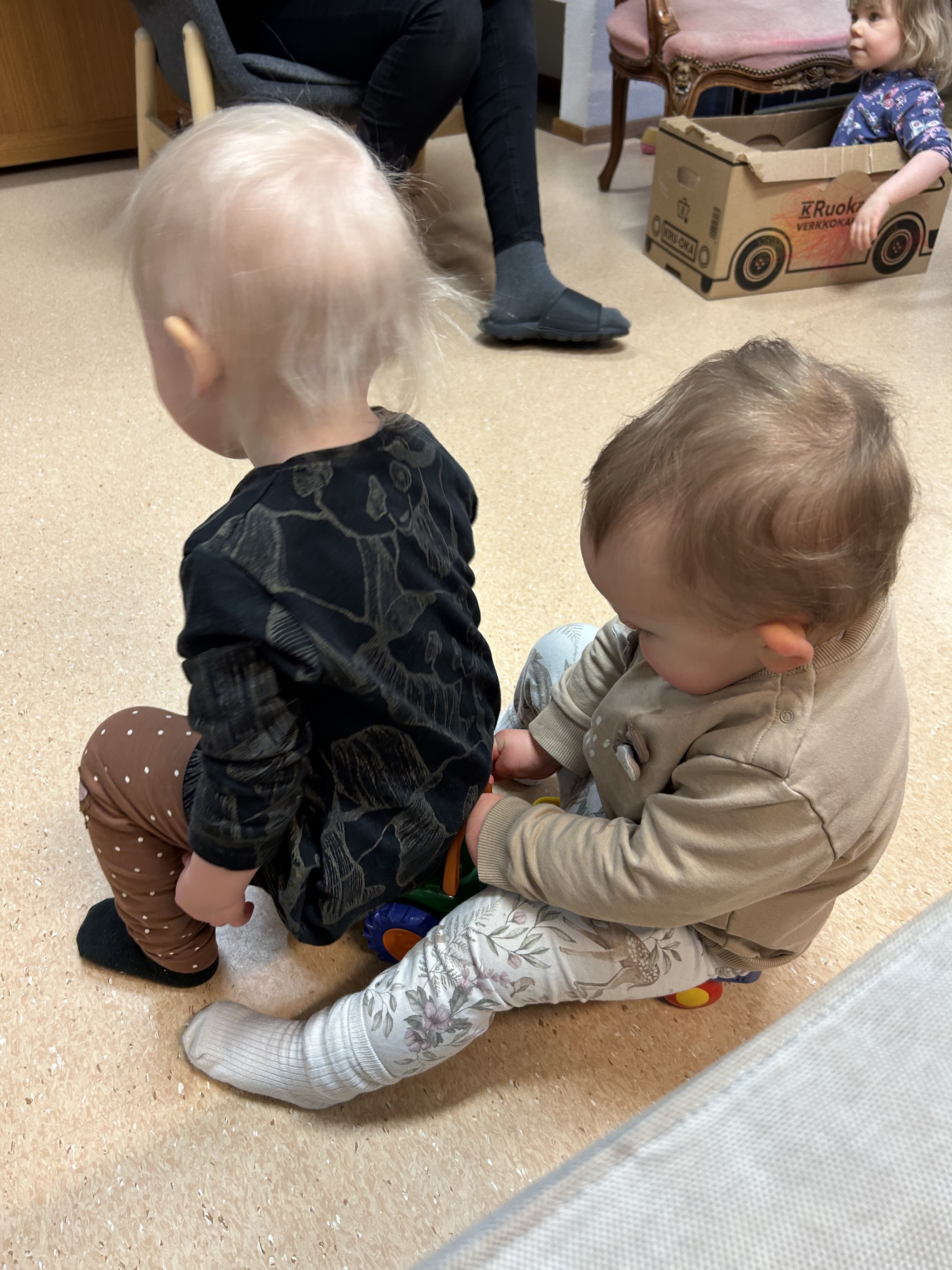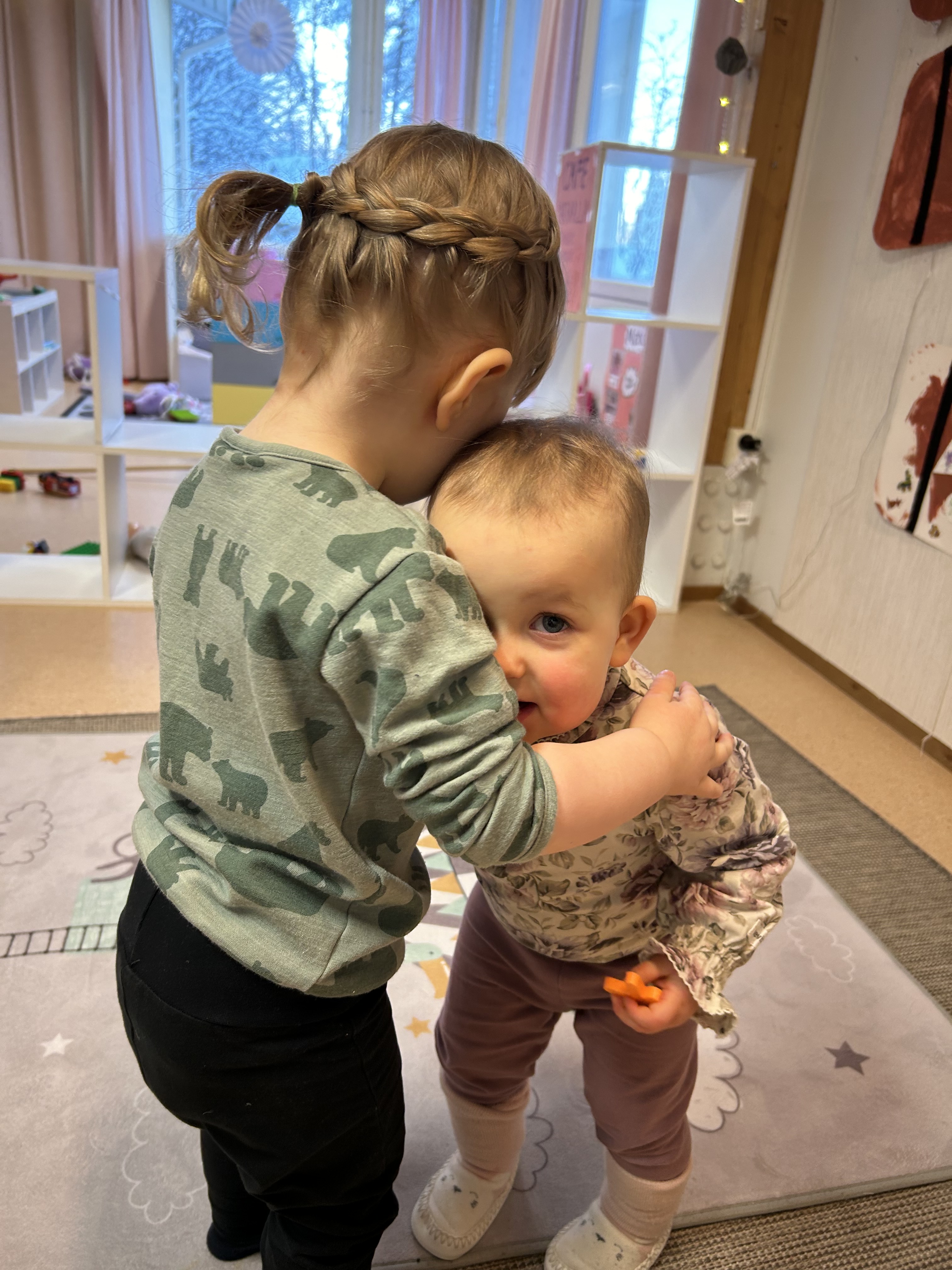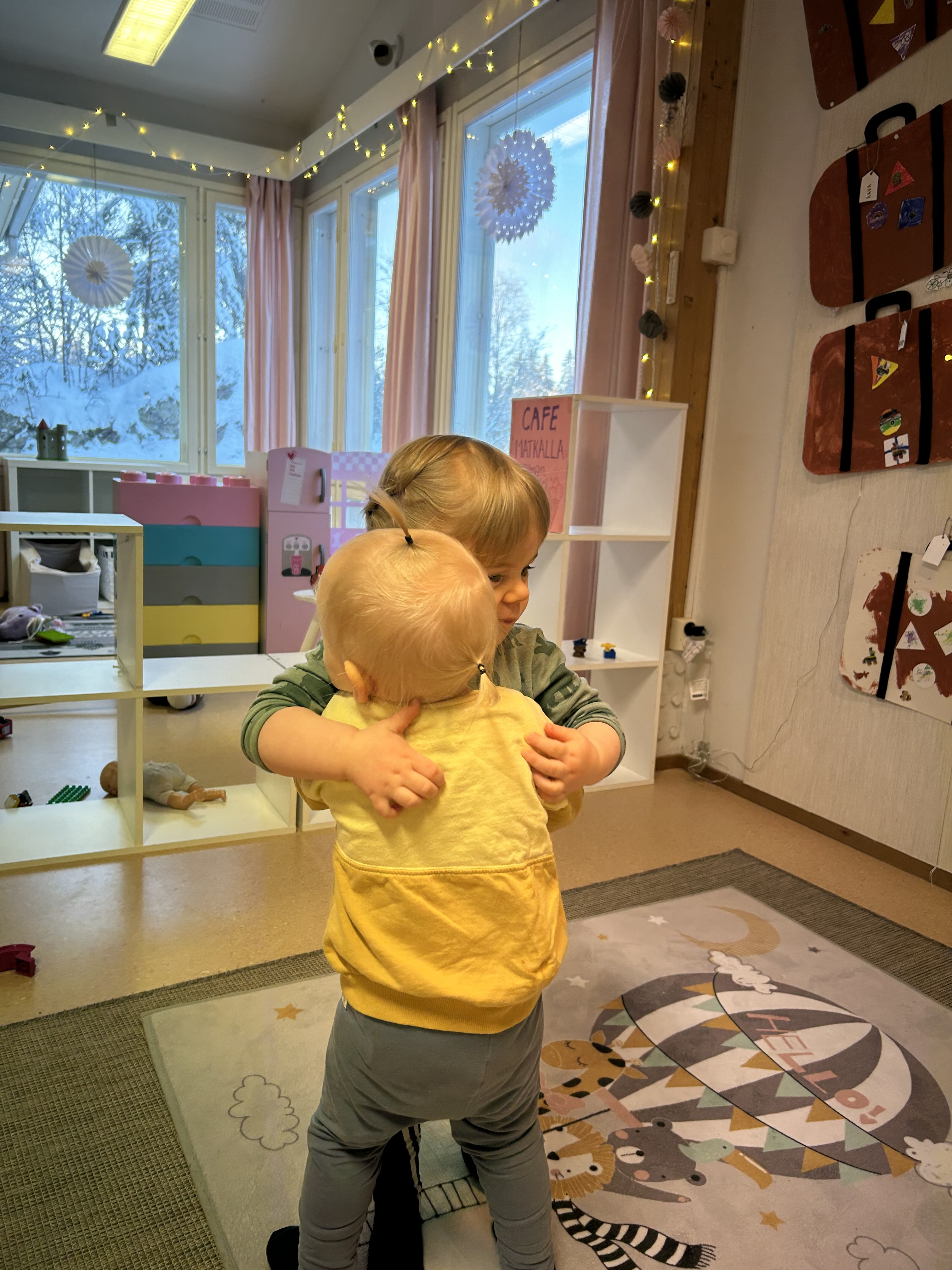Voi sitä jälleennäkemisen riemua kun lapset palasivat joululomiltaan. Kavereita oli selkeästi kaivattu ja haleja annettiin leikkien lomassa 🙂