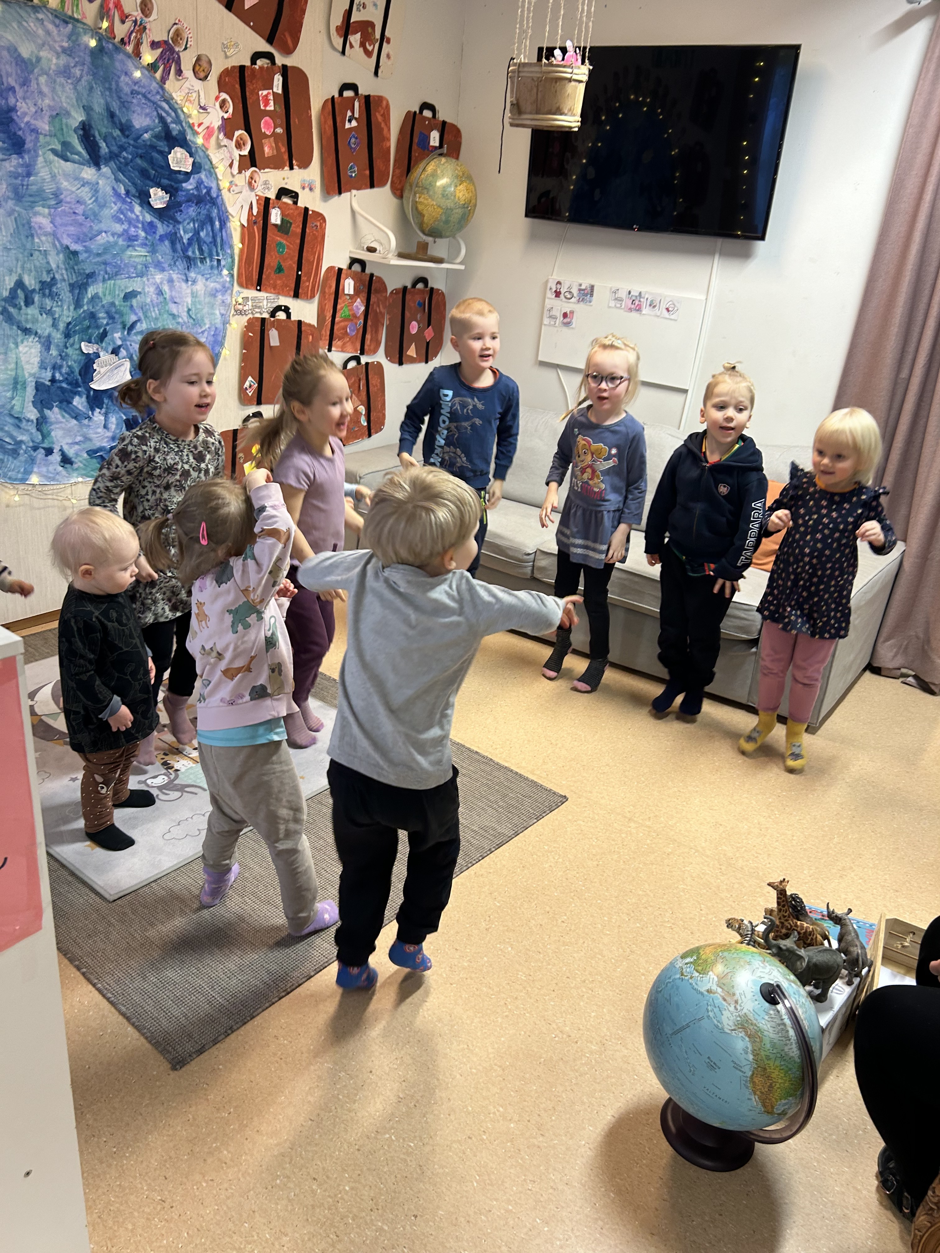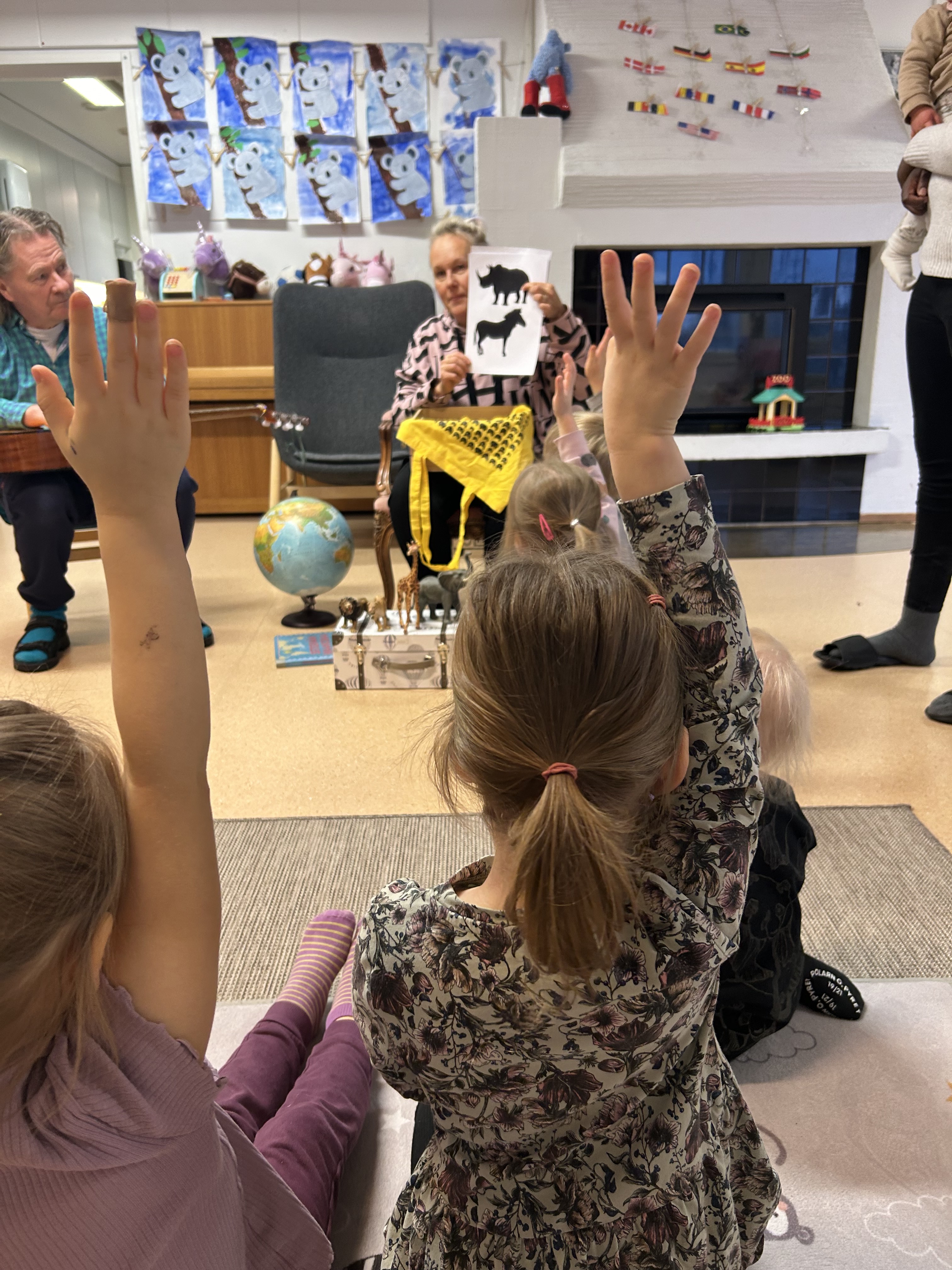Jatkamme maailmaympärysmatkaamme seuraavaksi kohti Afrikkaa. Lähihoitaja opiskelijamme Lilian on kotoisin Keniasta ja olemmekin oikein onnekkaassa asemassa koska pääsemme perehtymään kulttuuriin lauluja ja tarinoita myöten hänen kertomanaan. Lilian on opettanut meille swahilin kielisen ”tervetuloa” laulun joita olemme lasten kanssa aamupiirillä kuunnelleet. Toivotamme myös hyvät huomenet swahilin kielellä ”Jambo”, joka tarkoittaa hei. Aamupiirillä tutustuimme Afrikkalaisiin eläimiin, joita lapset saivat tunnistaa varjokuvista.