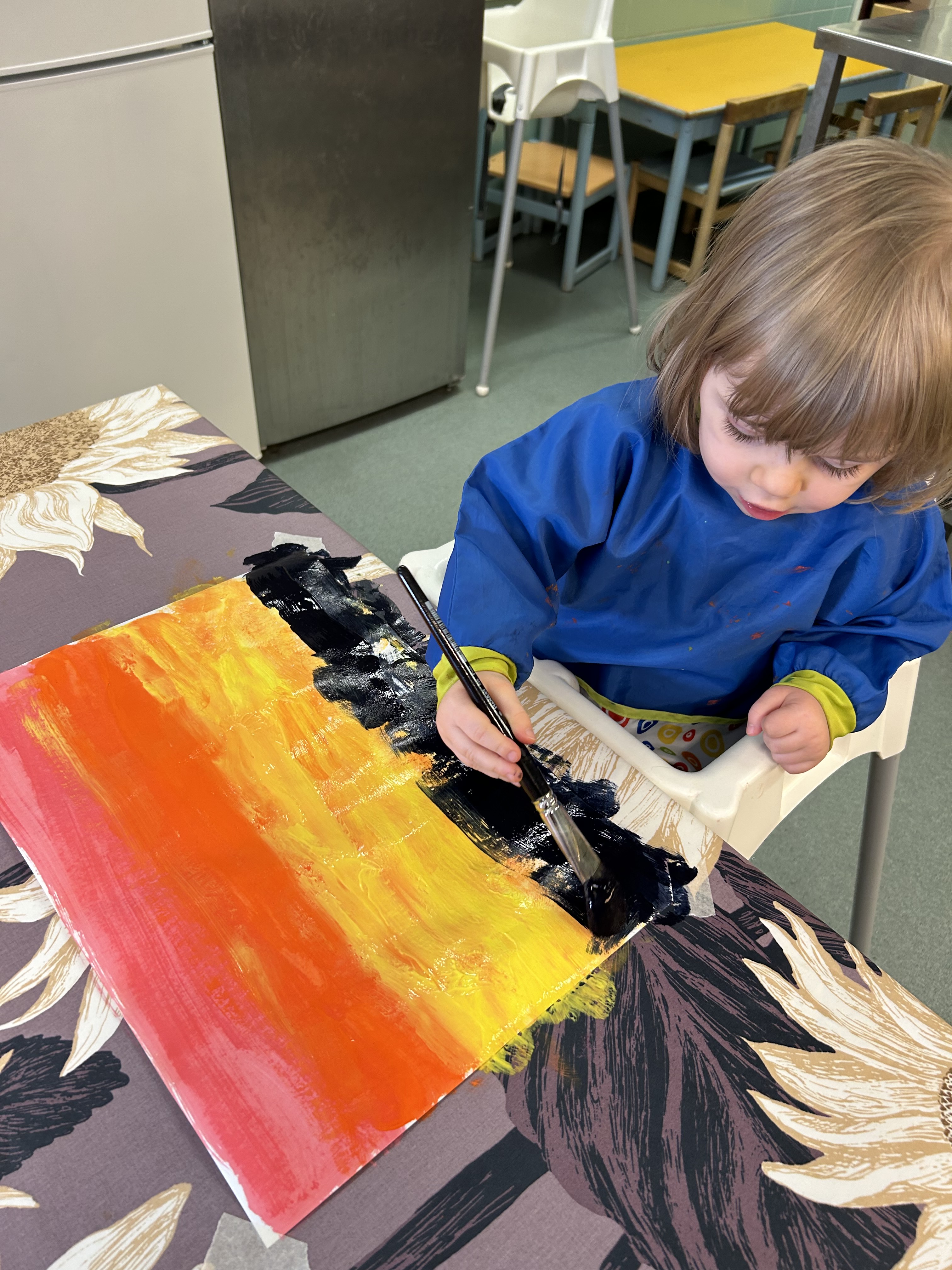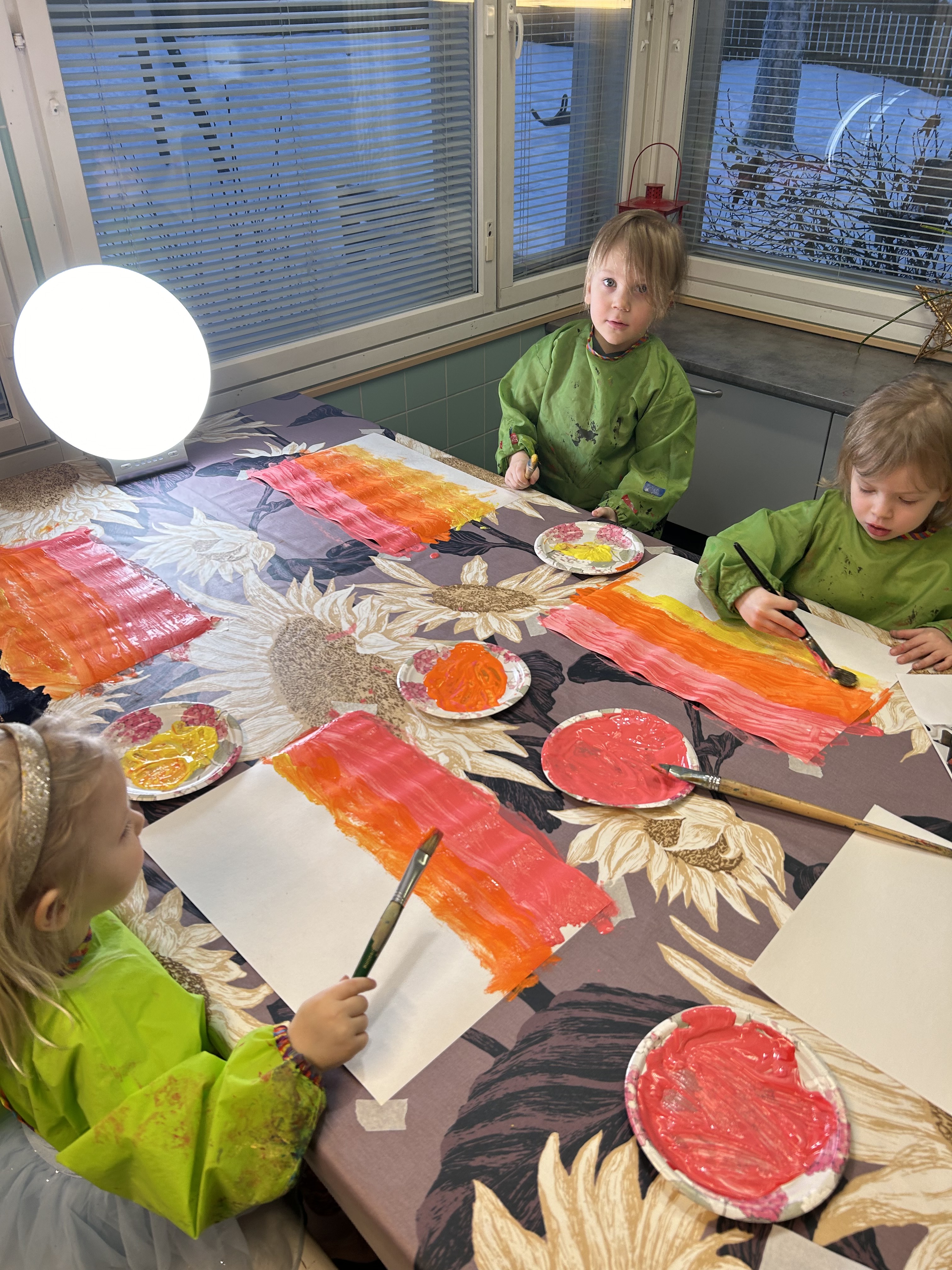 Innostuimme myös maalaamaan auringonlaskuja… näitä askarteluja jatkamme vielä ensi viikolla