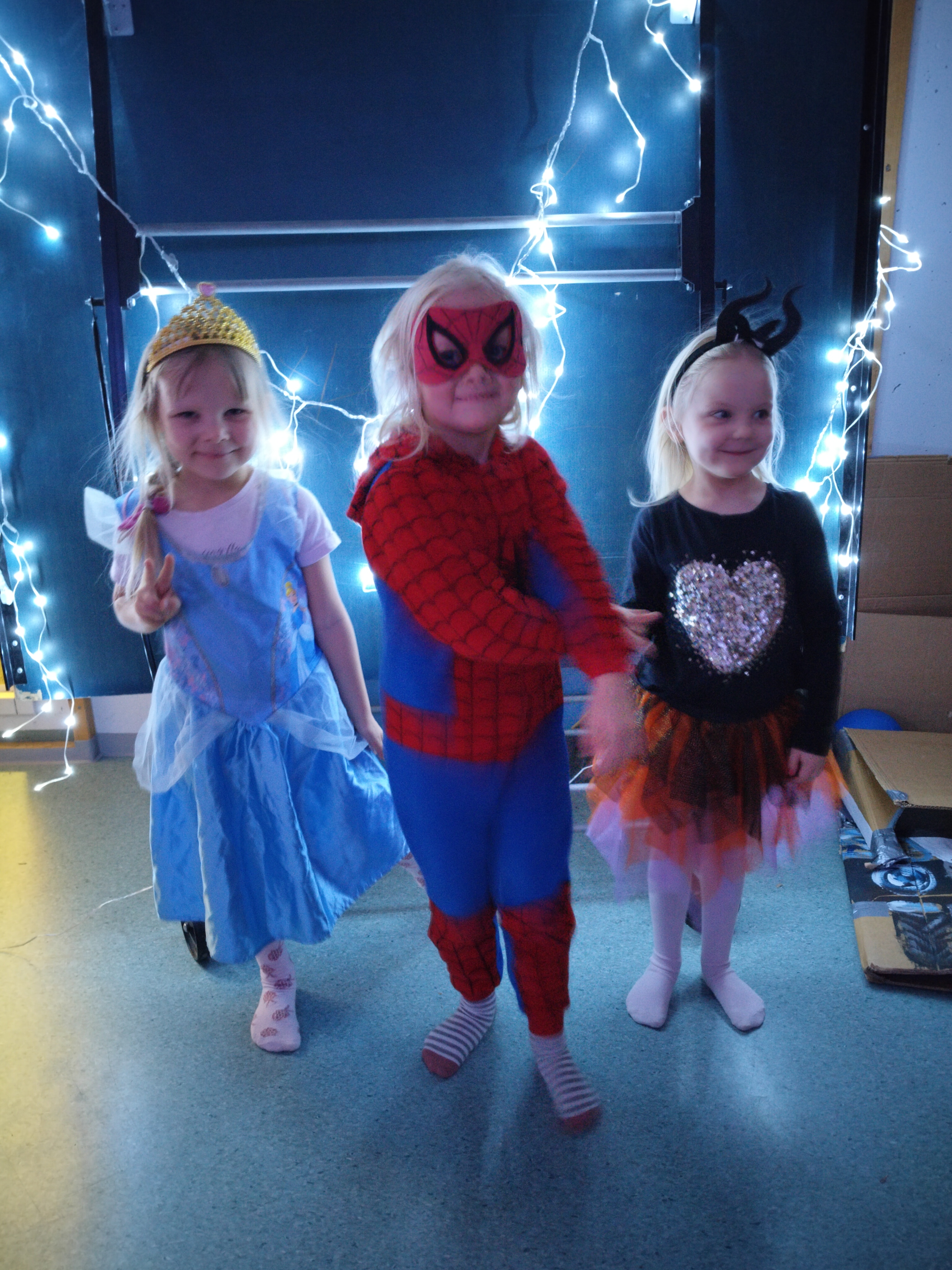 Muutama viikko sitten meillä oli juhlat ja lapset saivat pukeutua naamiaisasuihin. Olipa huvittavaa, kuinka hauskoja hahmoja aamupalapöydässämme ruokaili 🙂