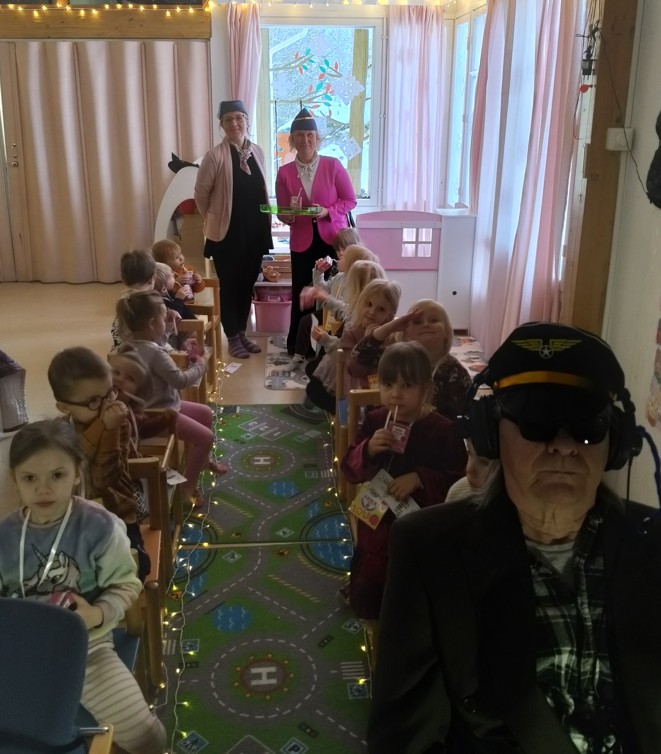 Koneessa oli jännittynyt tunnelma ja lapset kuuntelivat tarkkaavasti kapteenin kuulutusta. Koneessa tarjoiltiin pillimehuja ja muumipatukoita. Lento sujui hienosti ja laskeuduimme turvallisesti perille…