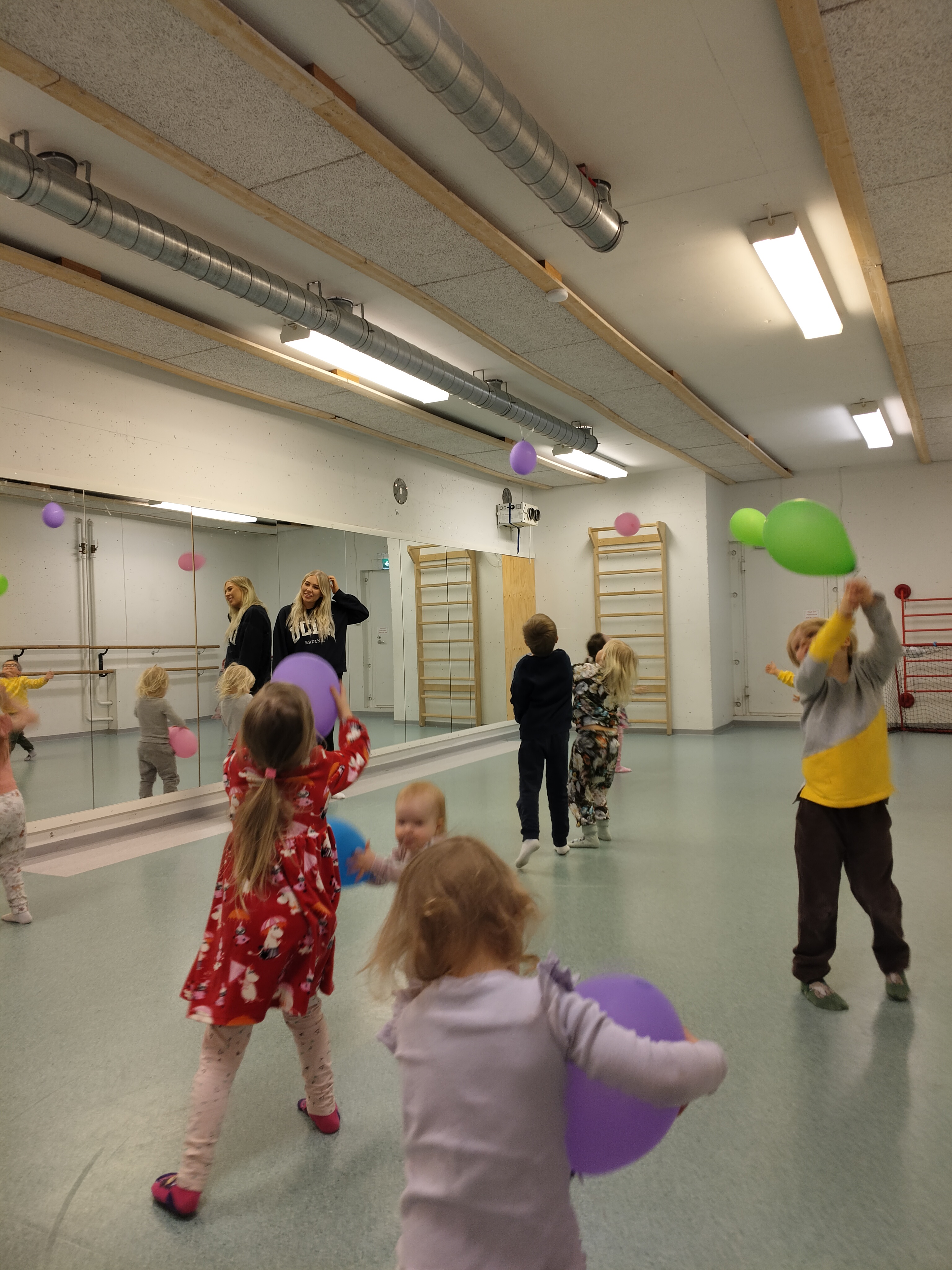 Venla piti lapsille jumpan pommassa. Jumpalla leikittiin banaanihippaa ja patsasleikkiä. Hiki tuli ja lapsilla oli hauskaa…
