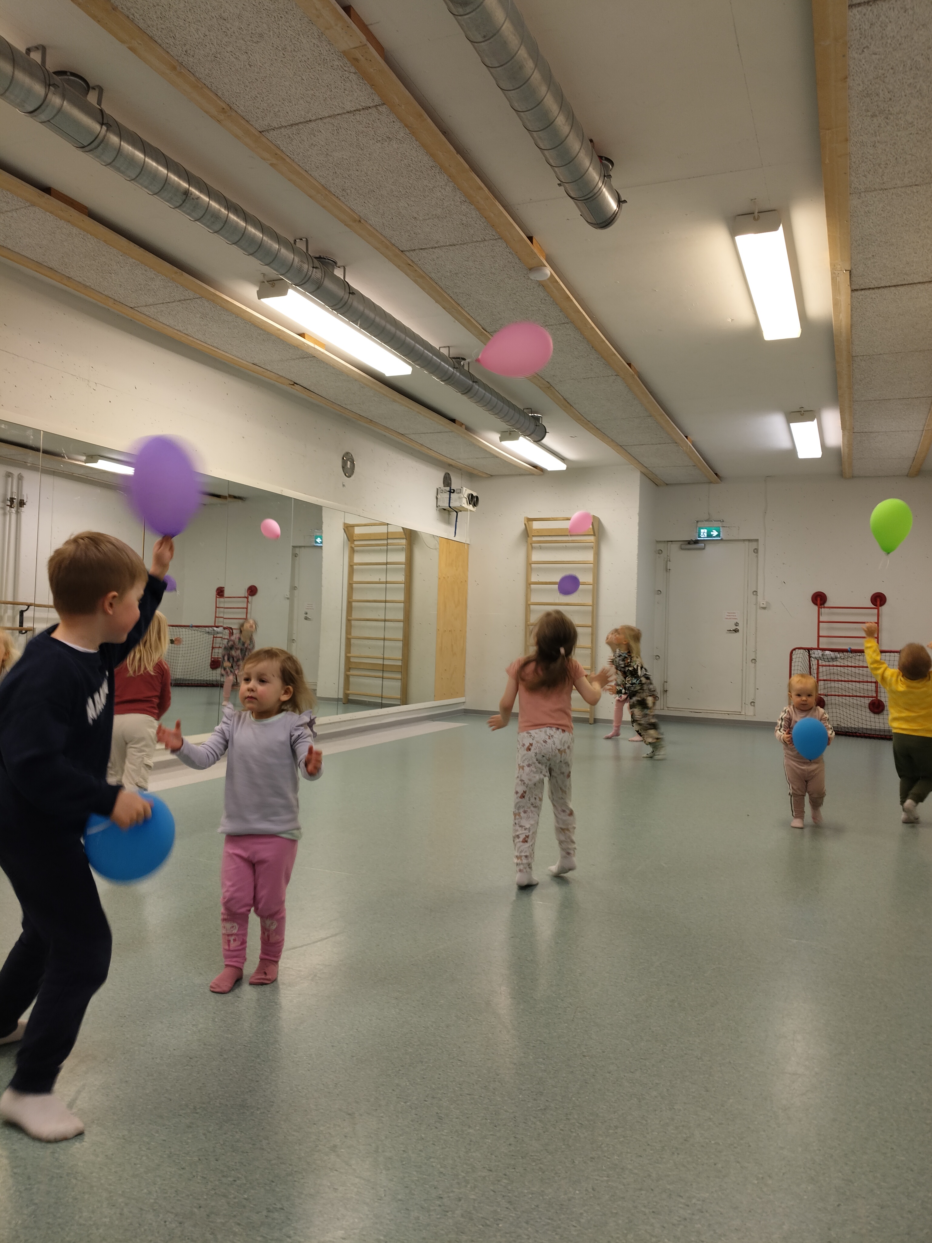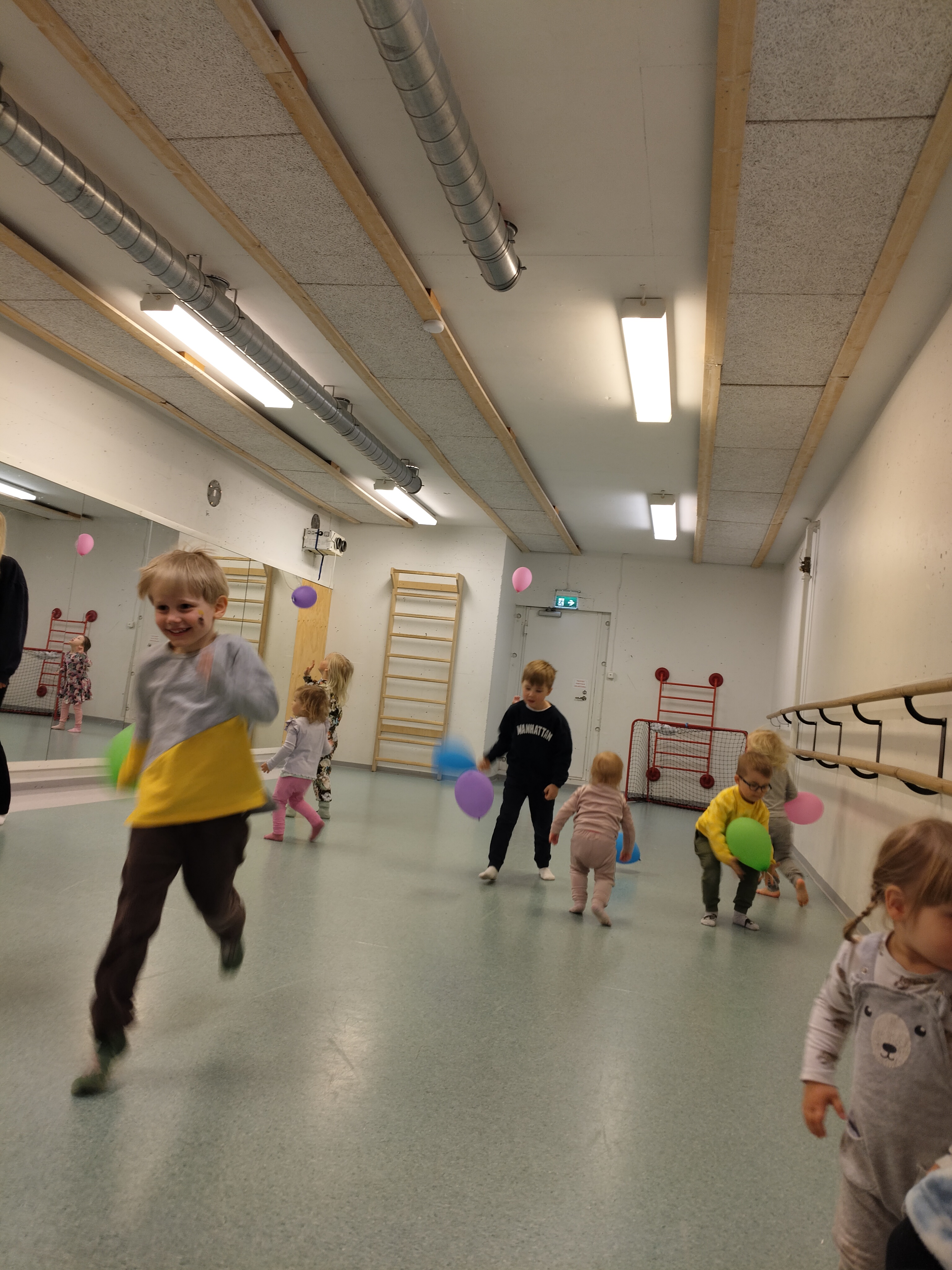 Lapset pääsivät myös leikkimään ilmapalloilla jotka ovat olleet koristeina juhlahumut… Voi sitä riemun määrää kun pääsi juoksentelemaan ja pomputtamaan palloja vapaasti 🙂