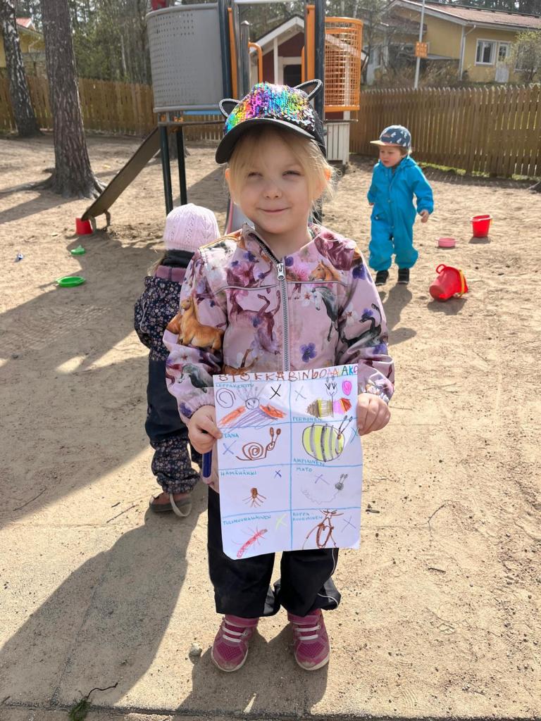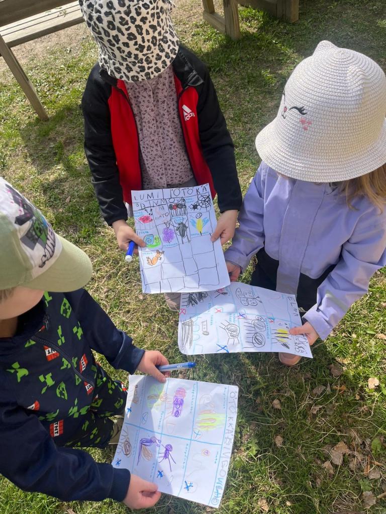 Lapset ovat olleet kovin kiinnostuneita kevään tullessa ötököistä ulkona. Tästä keksin idean tehdä heidän kanssaan ötökkäbingon. Lapset saivat itse piirtää oman ötökkäbingon ja seuraavana päivänä otimme ne ulkoiluun mukaan. Luvassa oli iso ötökkäjahti ja lasten löydettyä ötökän, he saivat rastittaa sen bingosta.
