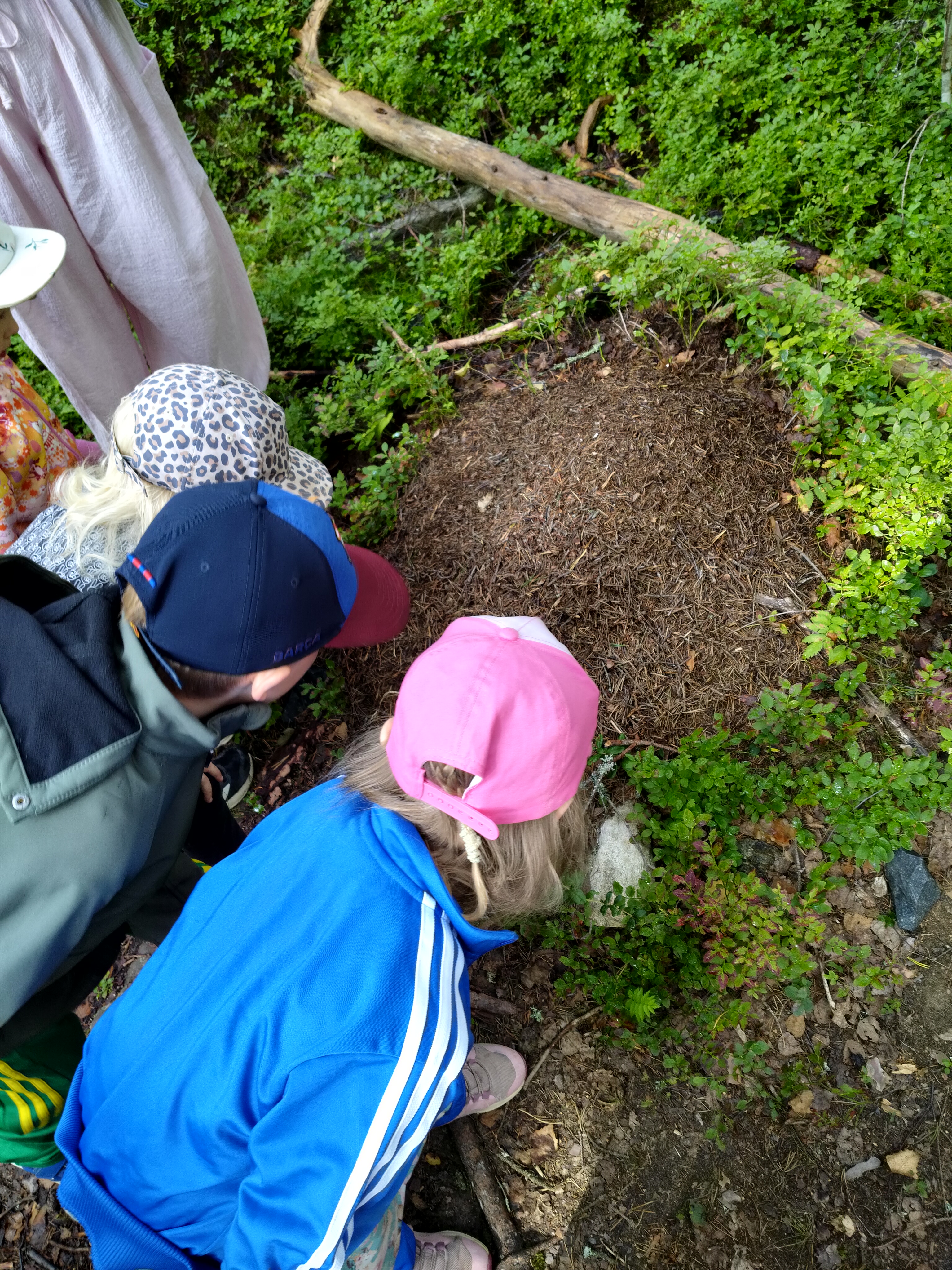 Kiven piilotus reissu oli täynnä tutkimista, ihmettelyä ja lapset tekivät hienoja havaintoja. Muurahaispesän kuhina oli hieman hiljentynyt ja lapset pohtivat miksi. Pääsimme aika läheltä näkemään muurahaisten tekemiä onkaloita ja kuinka muutamat työläiset keossa vielä ahersivat…