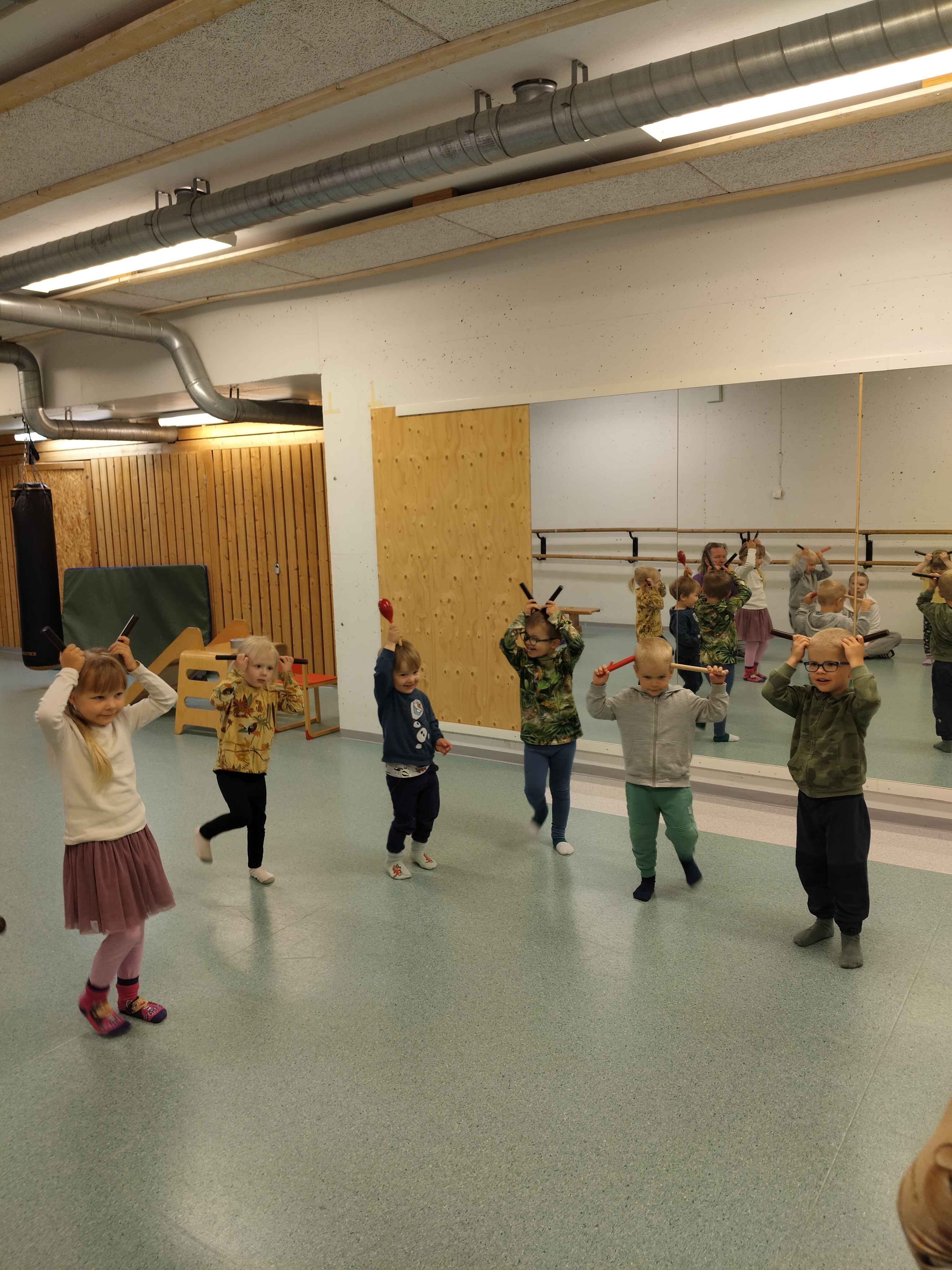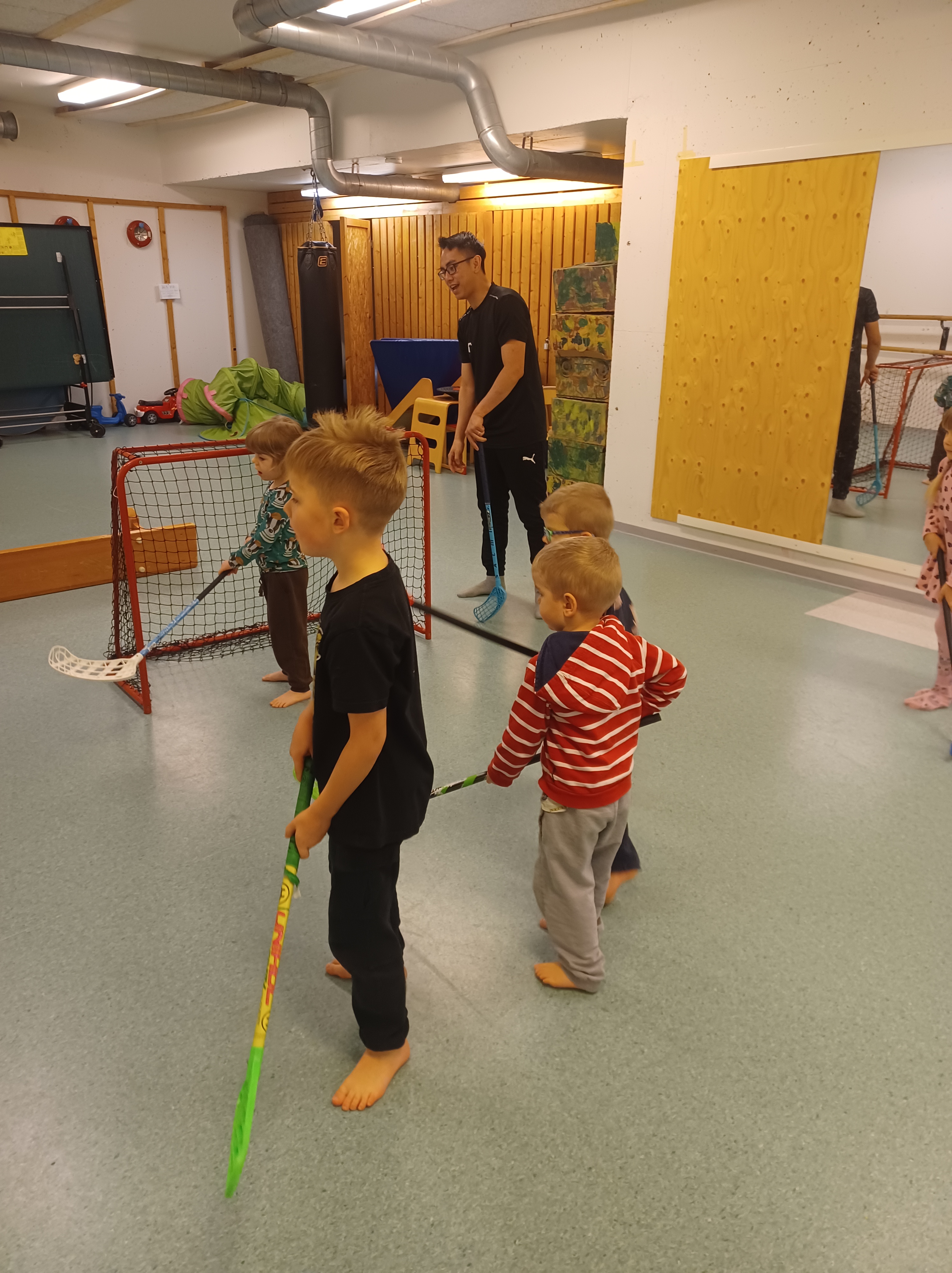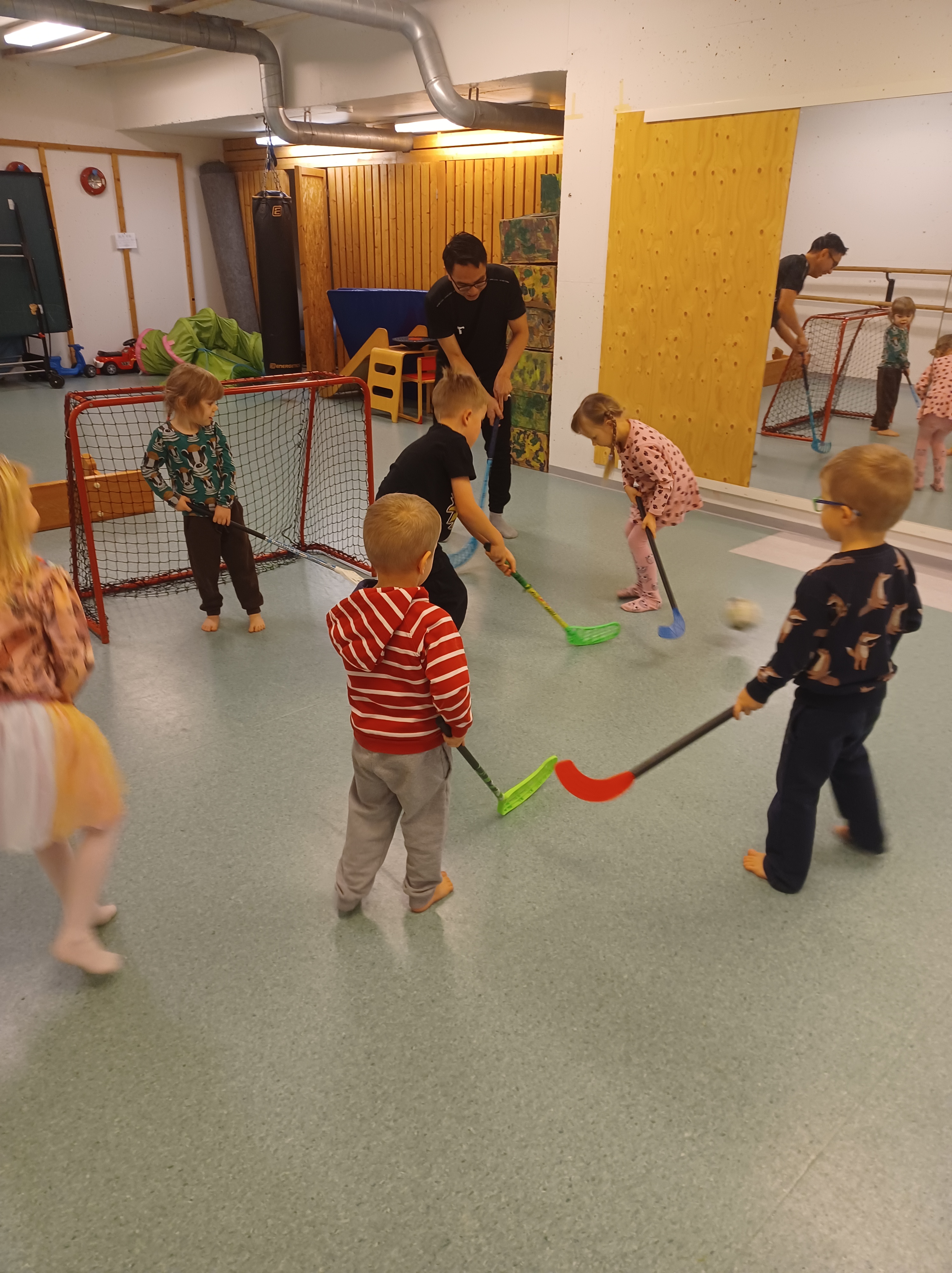 Tiistain jumpalla kävimme pommassa pelaamassa sählyä ja yläkerrassa jammailtiin fröbelin palikoiden tahtiin…