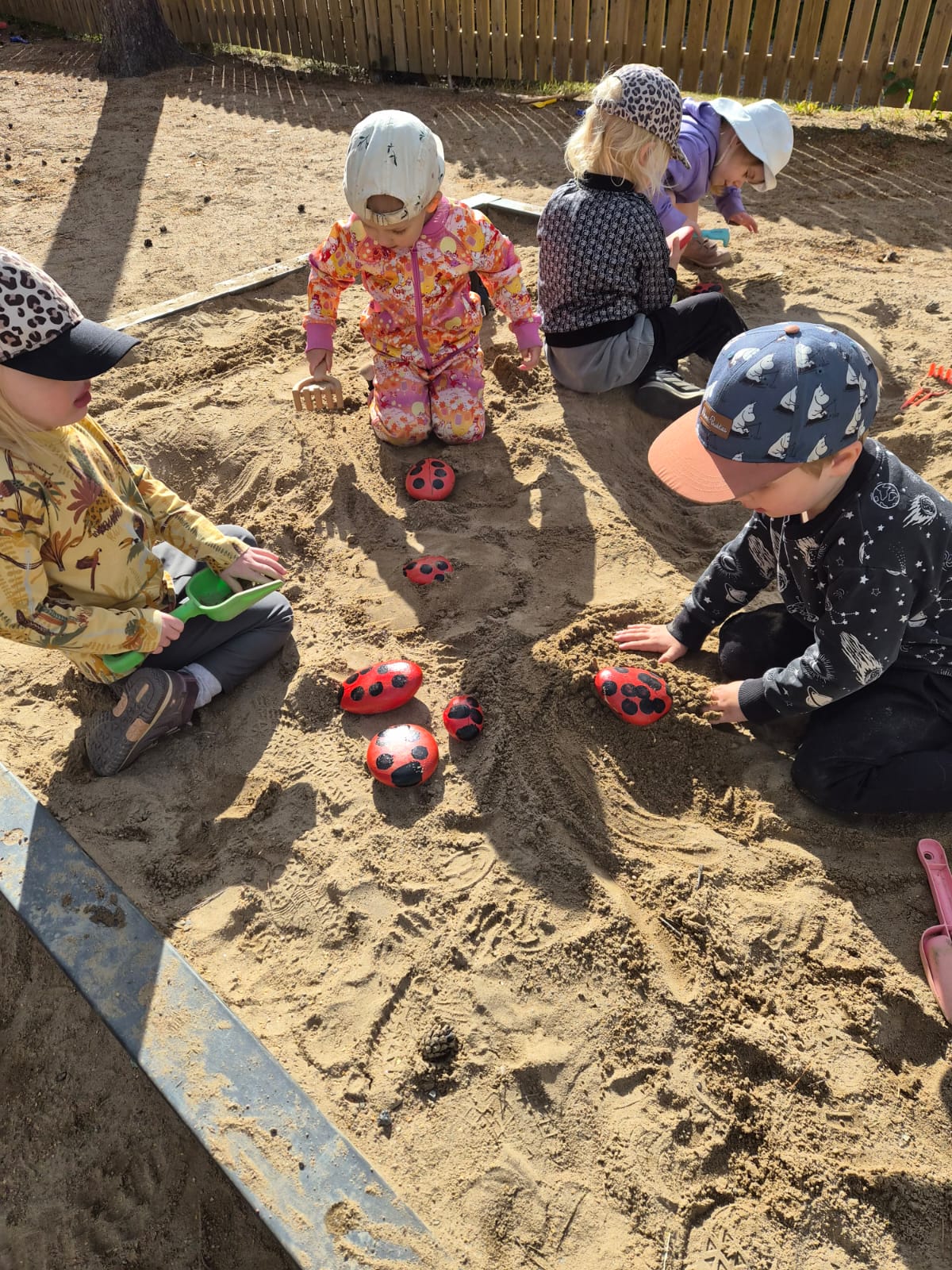 Leppäkertut pääsivät mukaan myös omiin leikkeihin. Lapset saivat oman leppäkerttunsa ulkoleikkikaveriksi 🙂