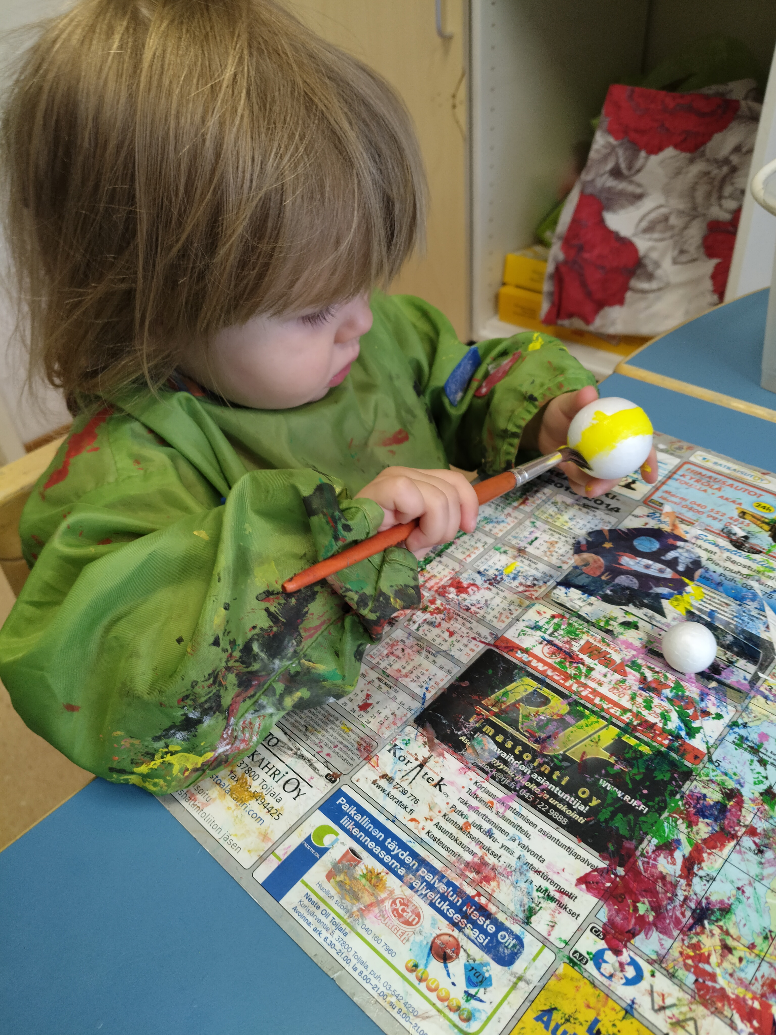 Jatkoimme avaruusprojektia ja askartelimme viskareiden kanssa planeettoja. Tämä oli erilainen askarteluprojekti koska lapset saivat maalata ilmapalloa apuna käyttäen.