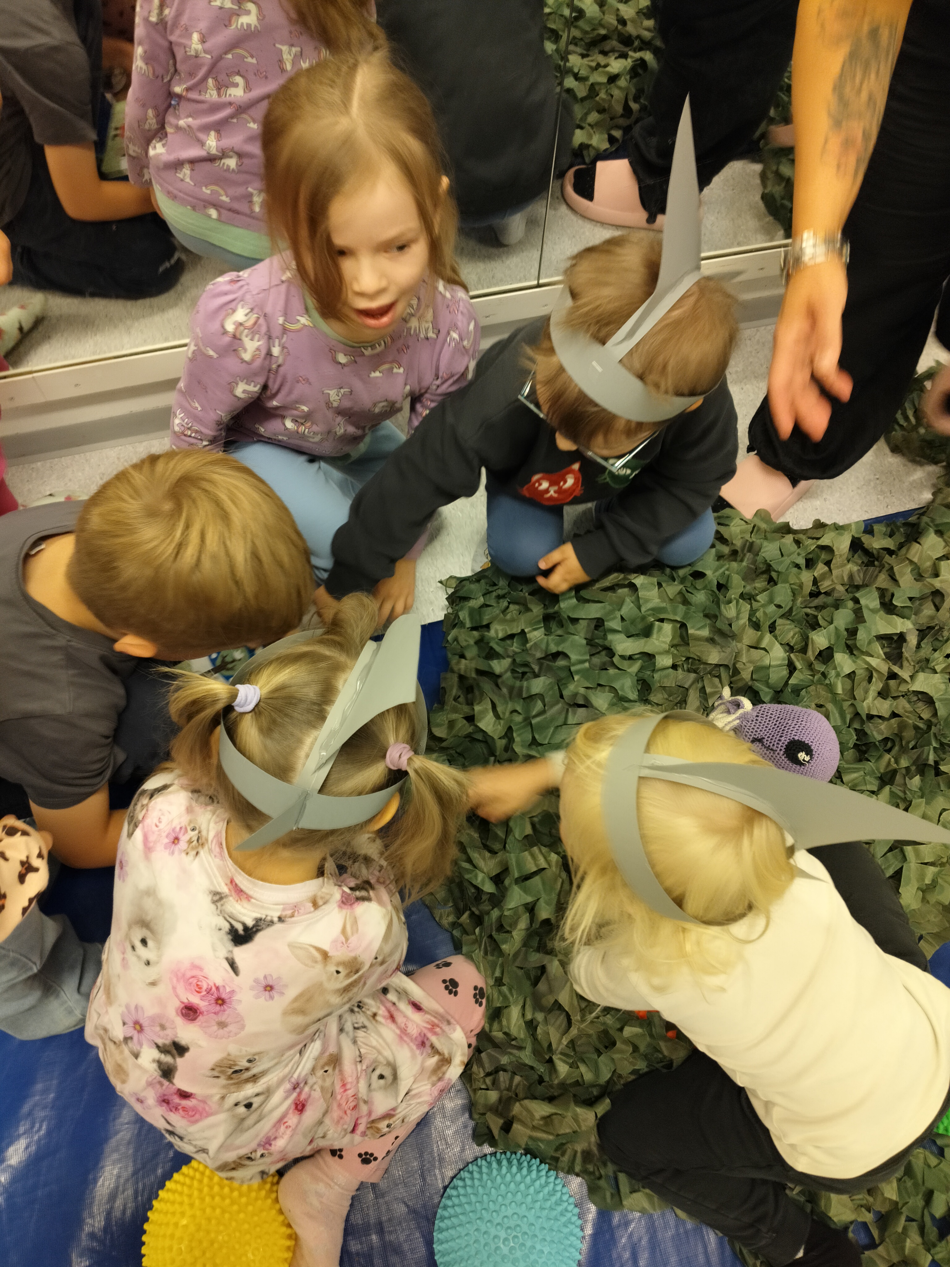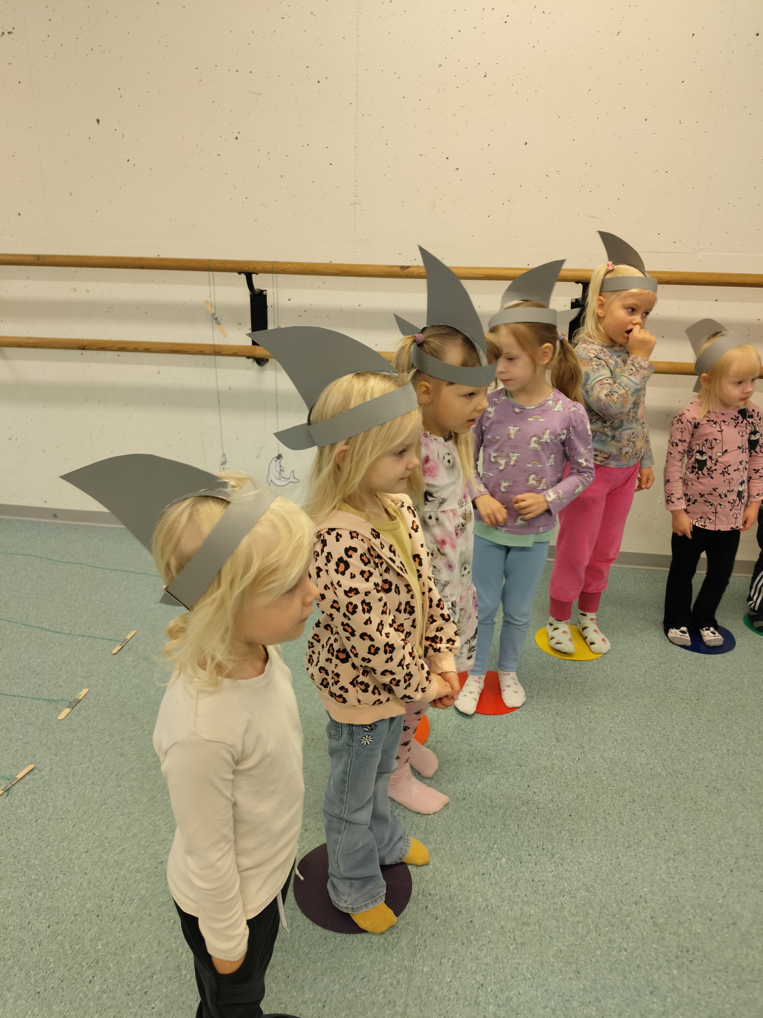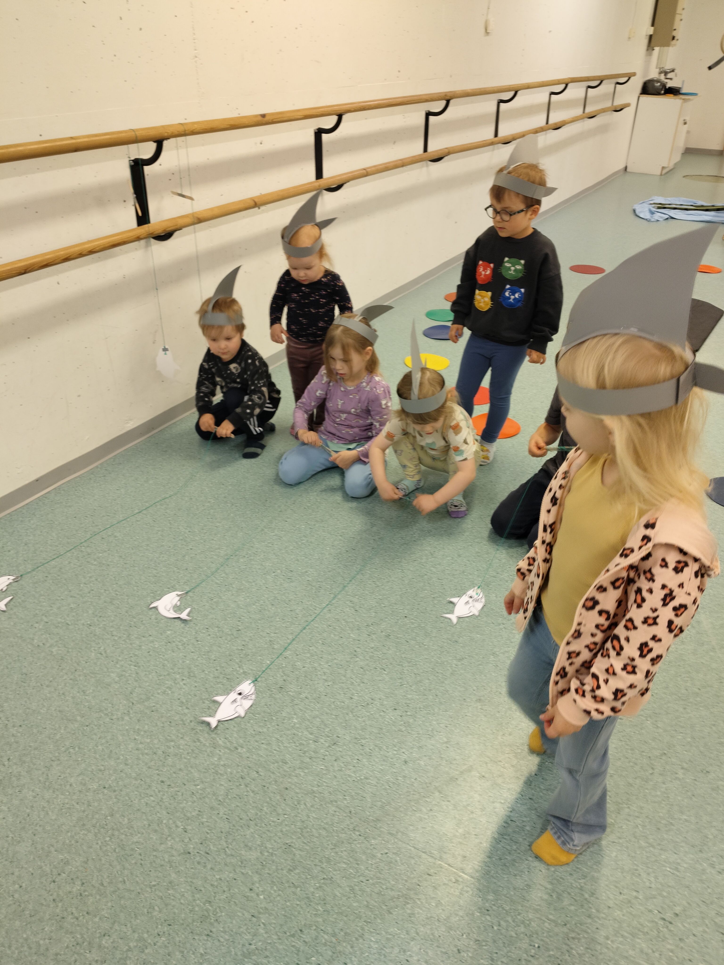 Siirryimme projektissa eteenpäin ja lasten toiveiden mukaisesti seuraavana vuorossa on delfiinit, hait ja muut meren elävät. Pidimme merenalaiset juhlat pommassa. Juhlissa oli paljon erilaisia toimintapisteitä ja tehtäviä mitä lapset pääsivät suorittamaan 🙂 edeltävänä viikkona askartelimme lapsille teemaan sopivat hai-hatut.