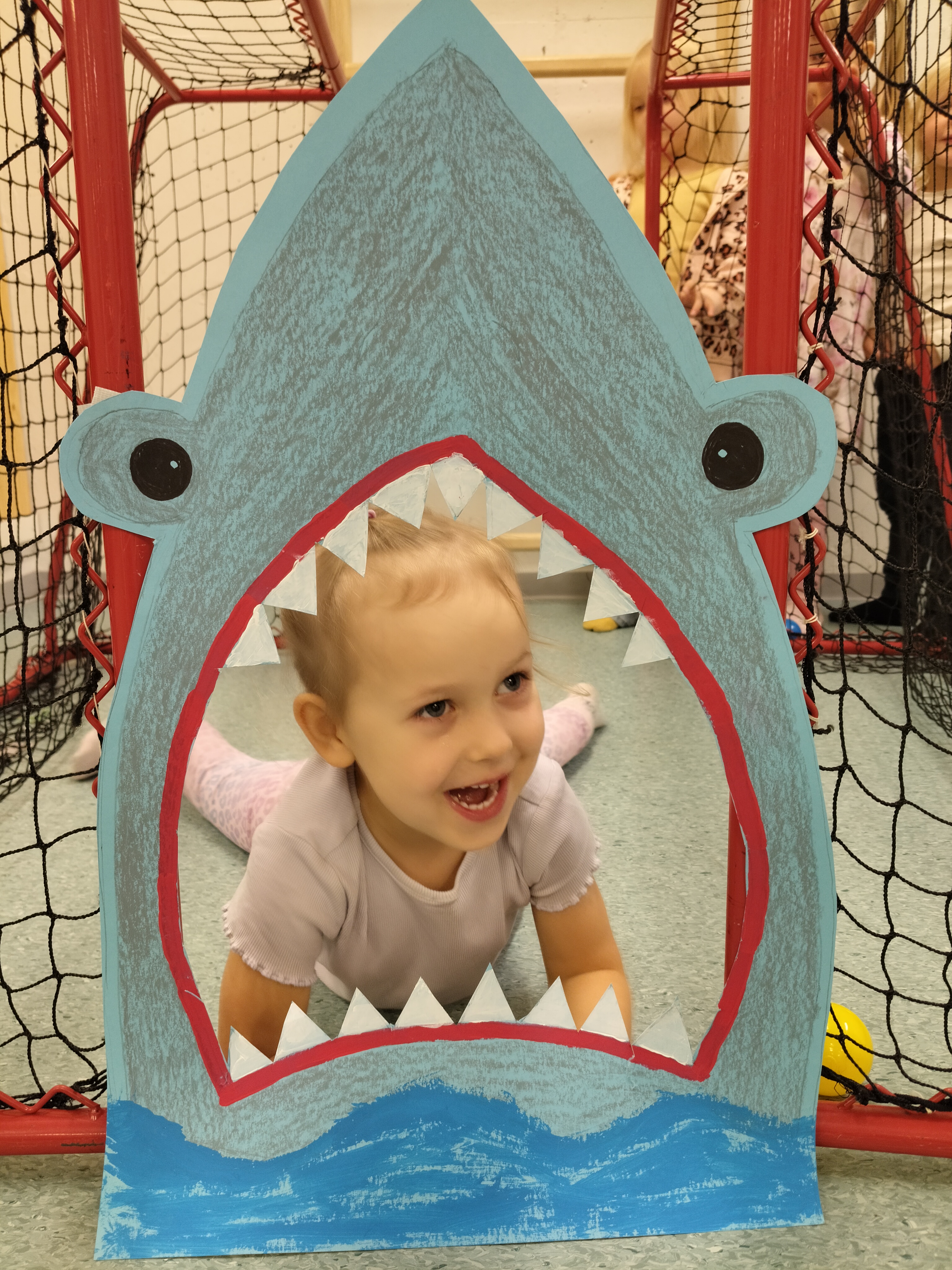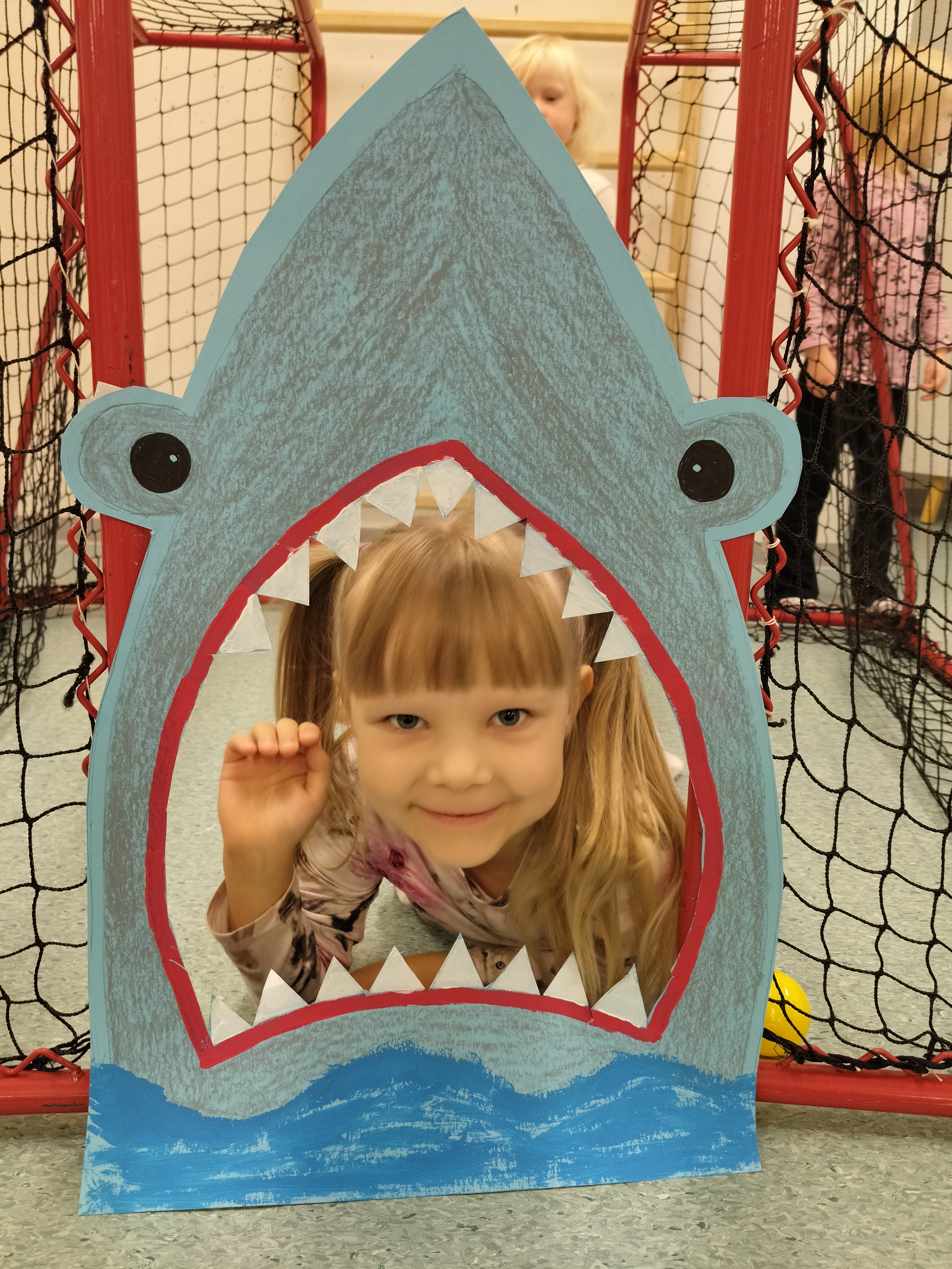 Lapsista otettiin myös hauskat yksityiskuvat hain suussa 🙂
