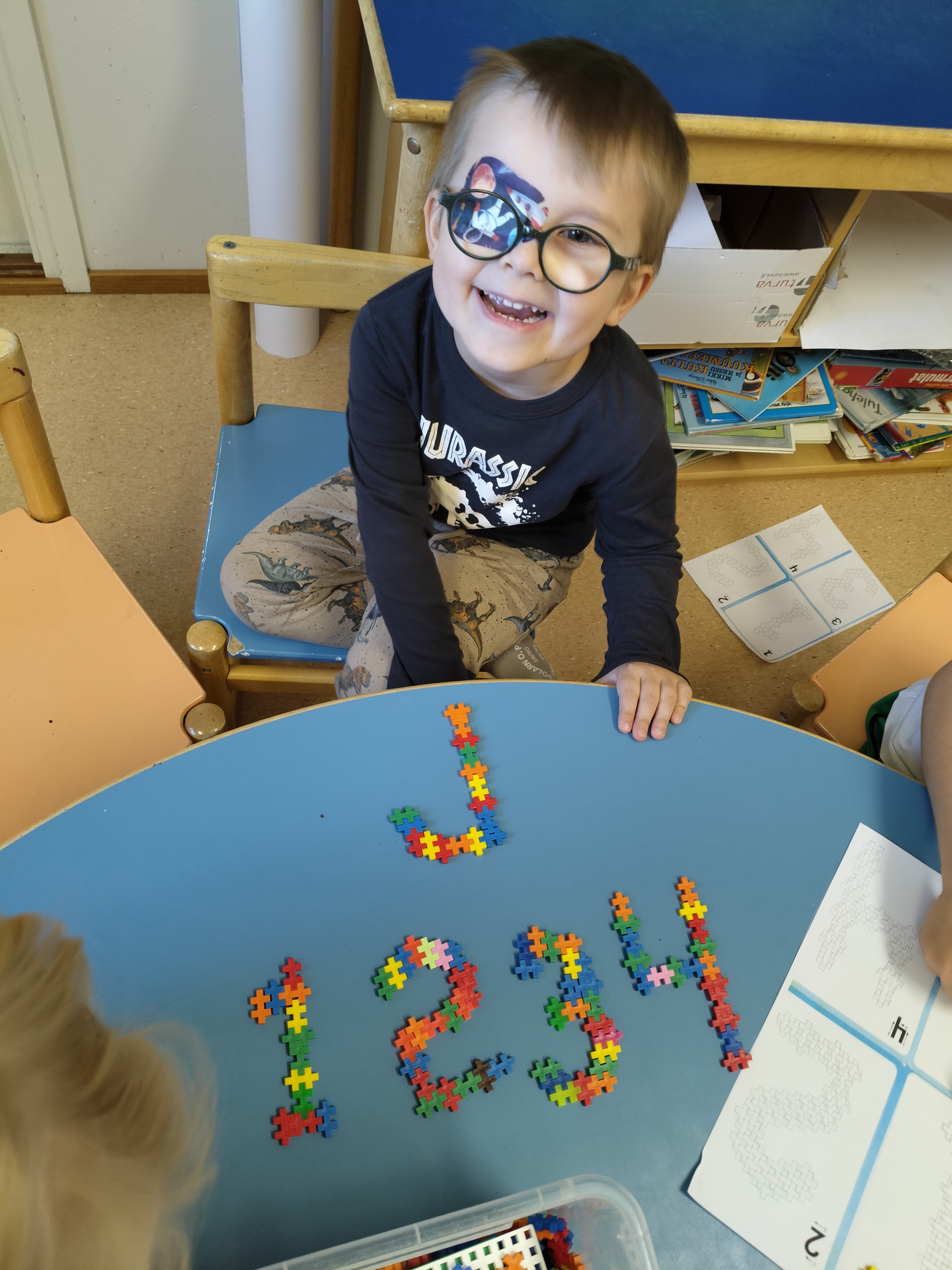 Viskarihommissa teimme plus-plus paloilla tehtäviä mallin mukaan, hyvin onnistui!