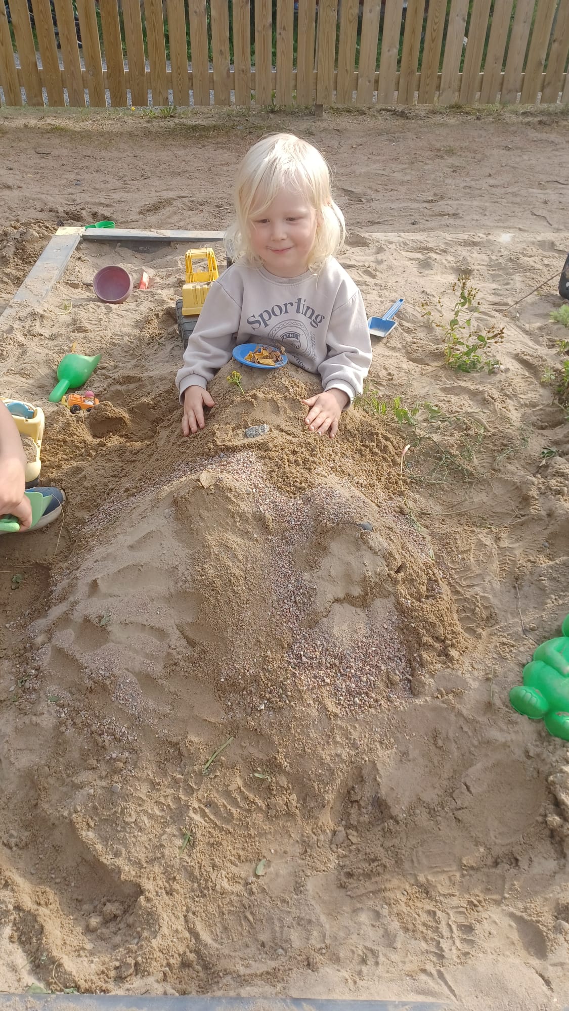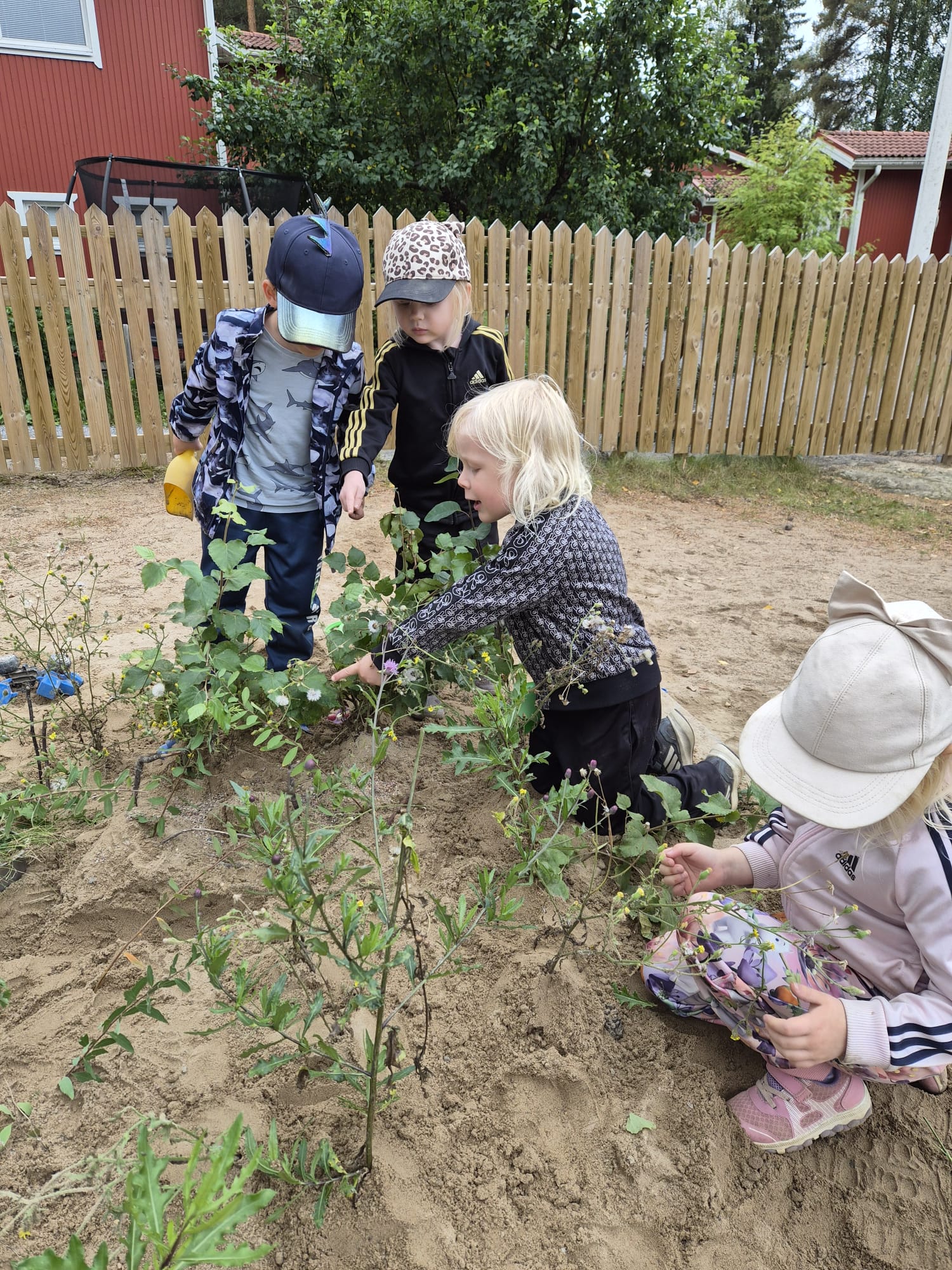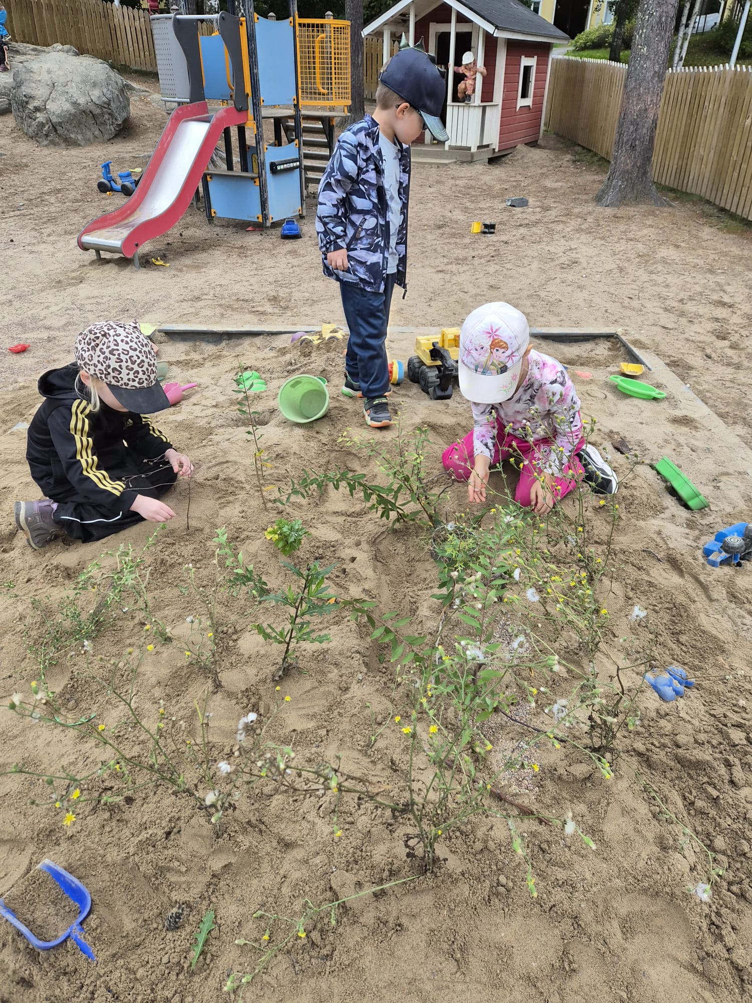 Lapset keksivät ulkona hauskan puutarhaleikin. Hiekkalaatikkoon istutettiin jos jonkinmoista kasvia 🙂 tässä leikissä kaikki pääsivät osallistumaan ja yhteishenki oli ihailtavaa.