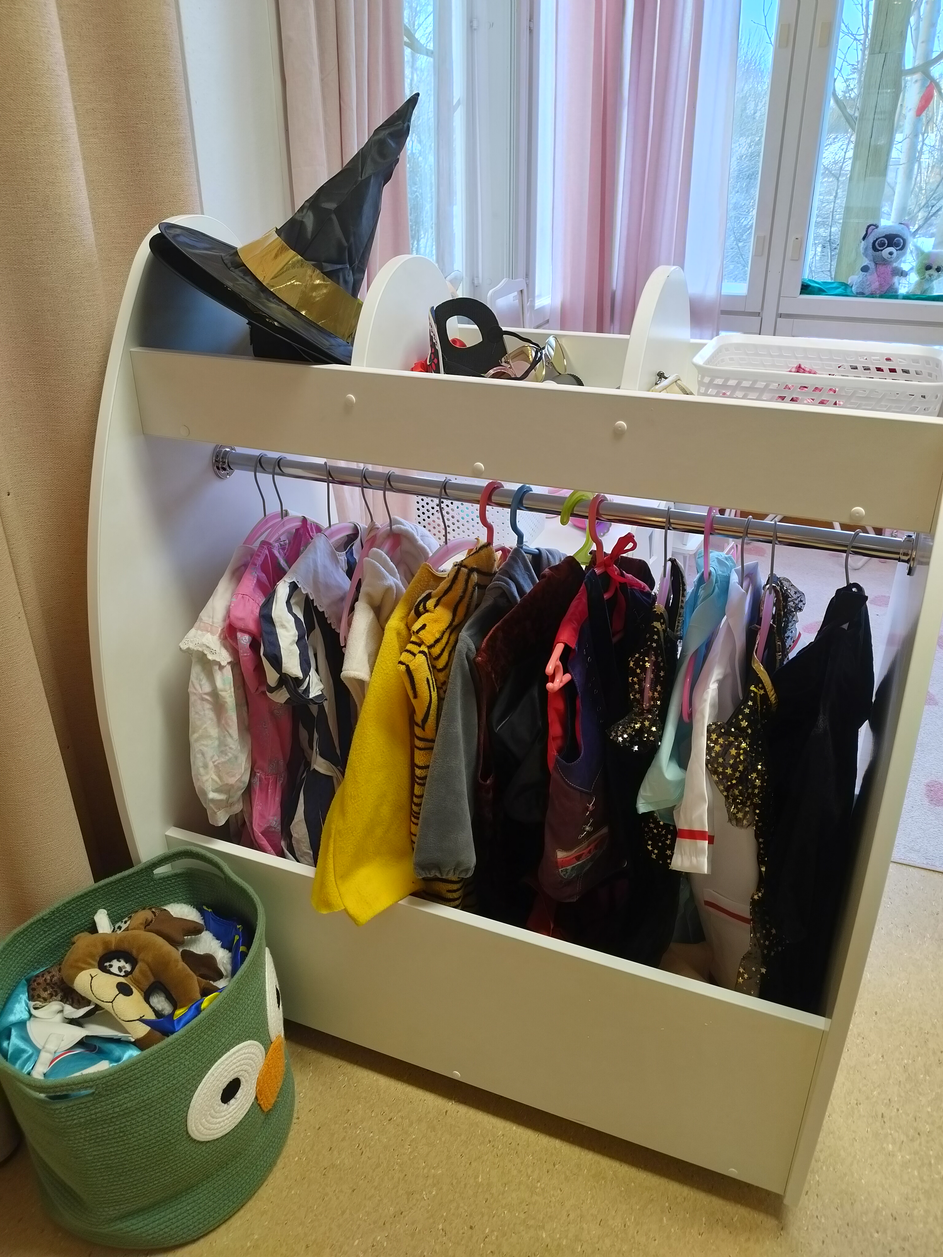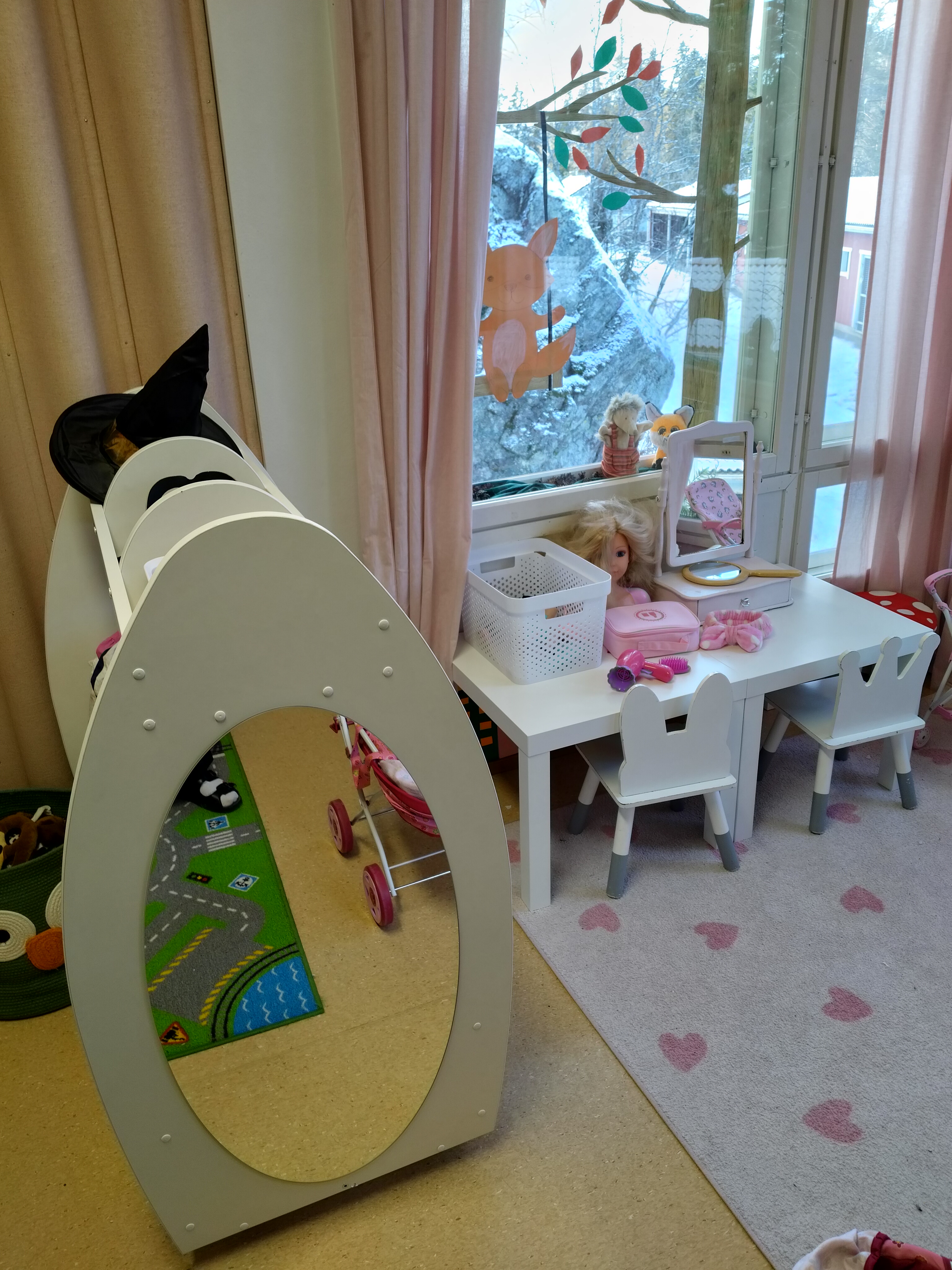 Uusimme hieman salin leikkejä ja teimme muutamia uusia hankintoja. Vanhempainyhdistyksen varainkeruurahoilla ostettiin lapsille roolivaateteline sekä kampaamoleikkiin oheistarvikkeita.