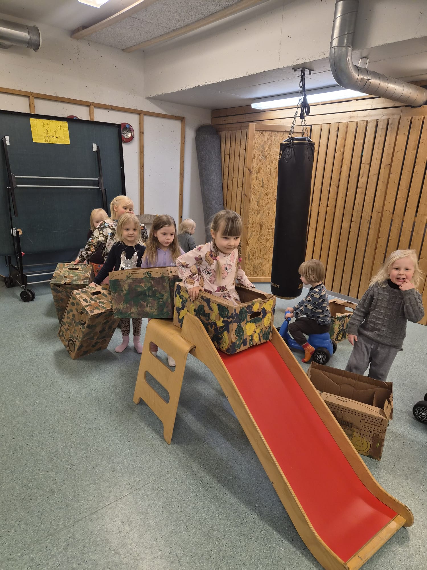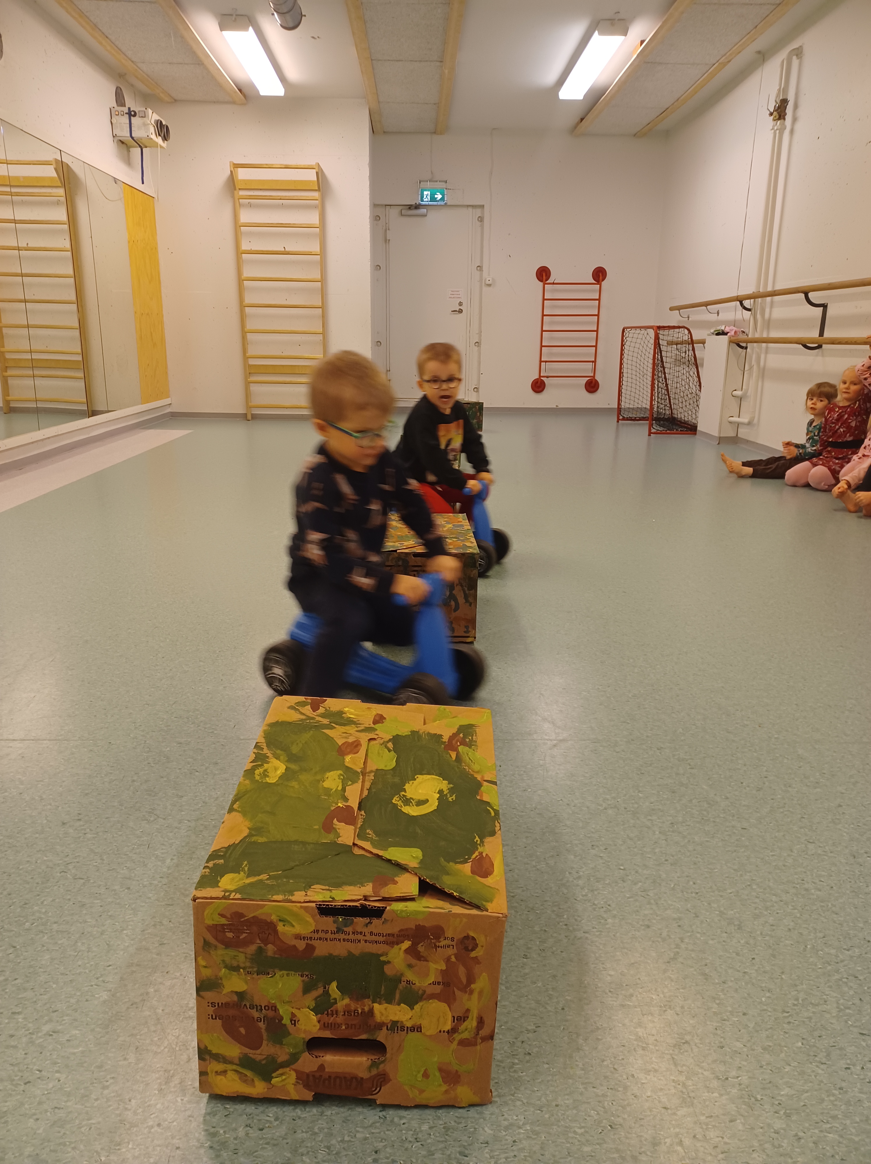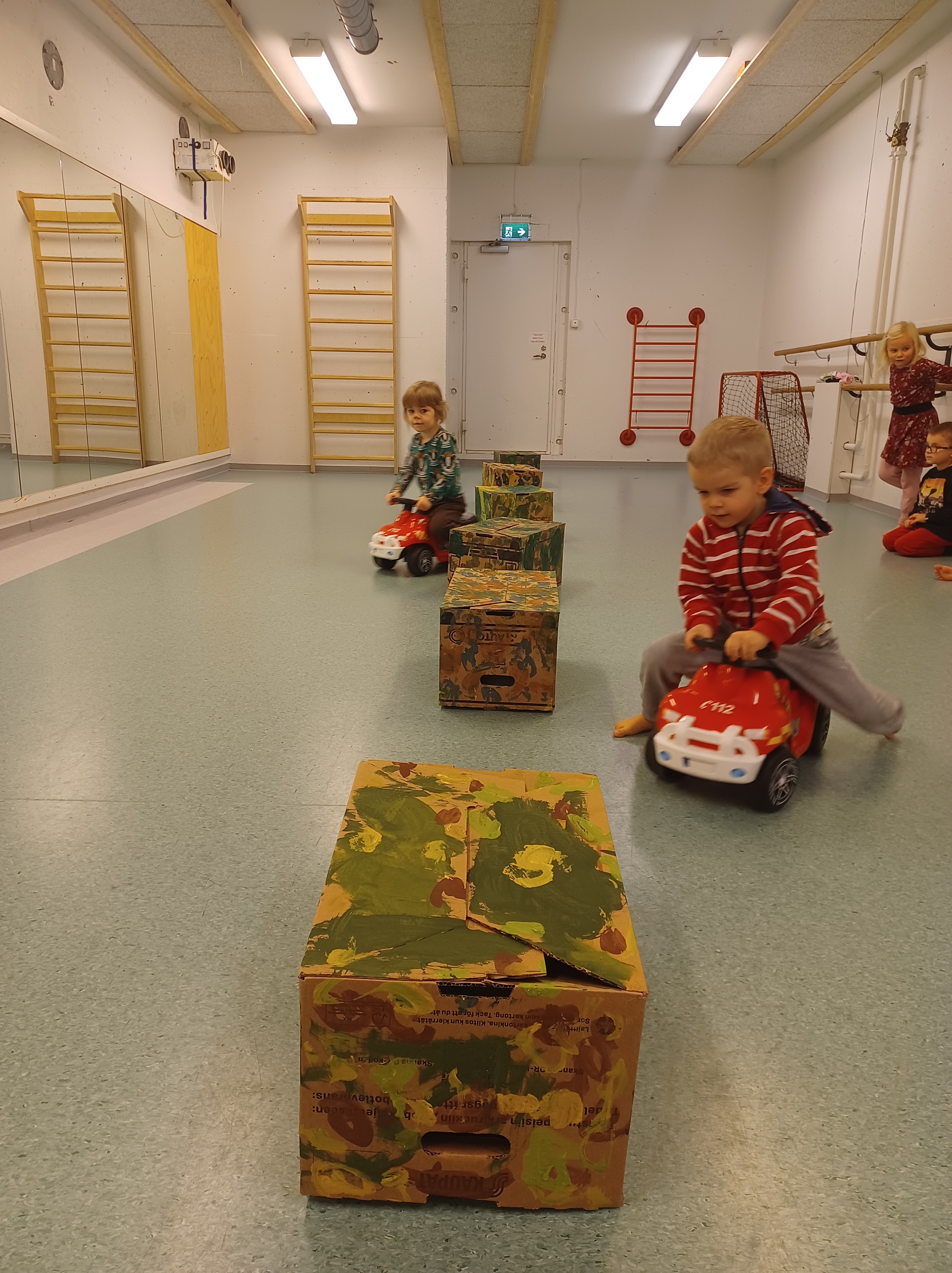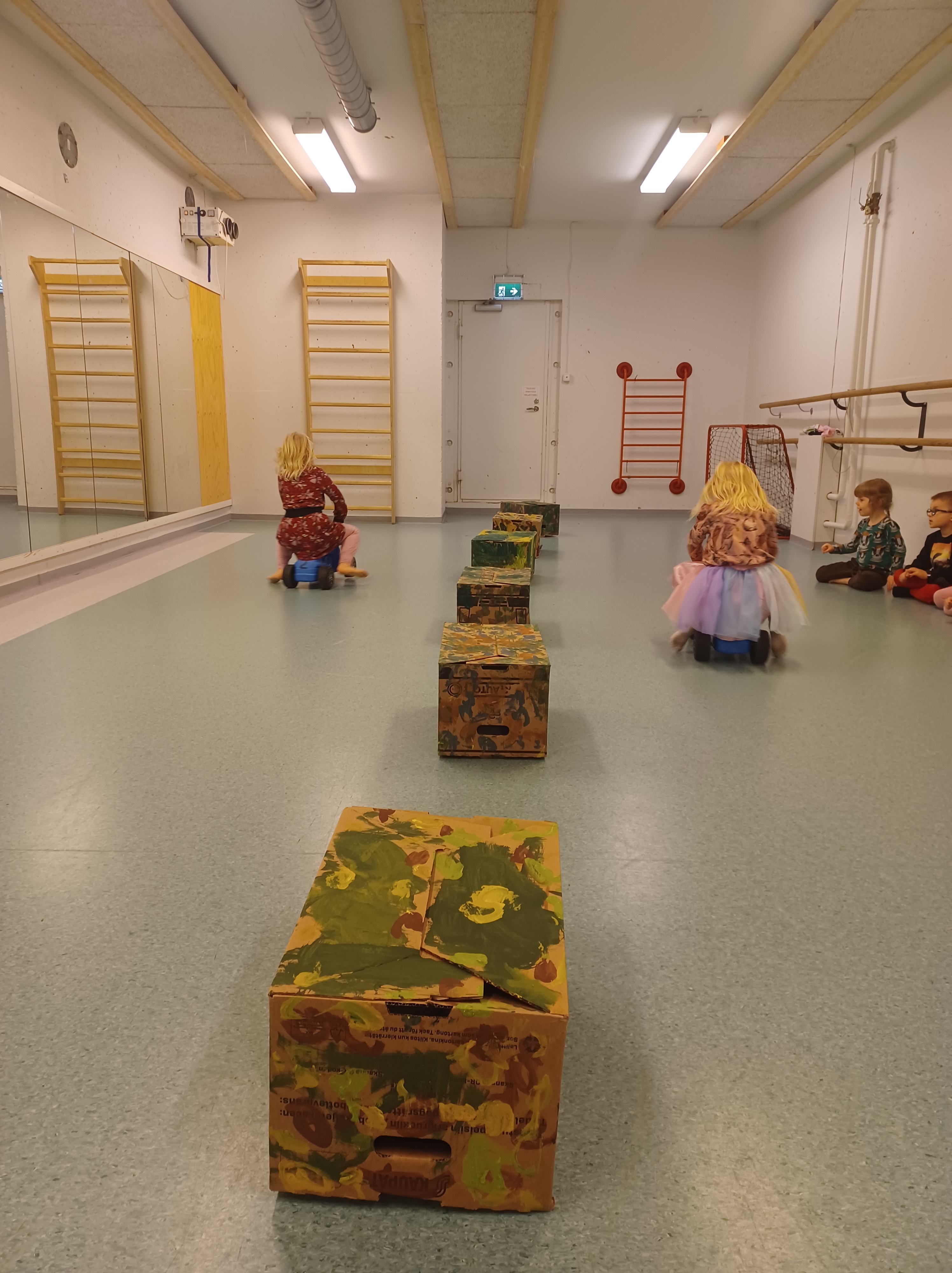 Mahtava opiskelijamme Venla suunnitteli lapsille temppuradan pommaan ja siellä olikin kiva viettää sadepäivän aamua 🙂