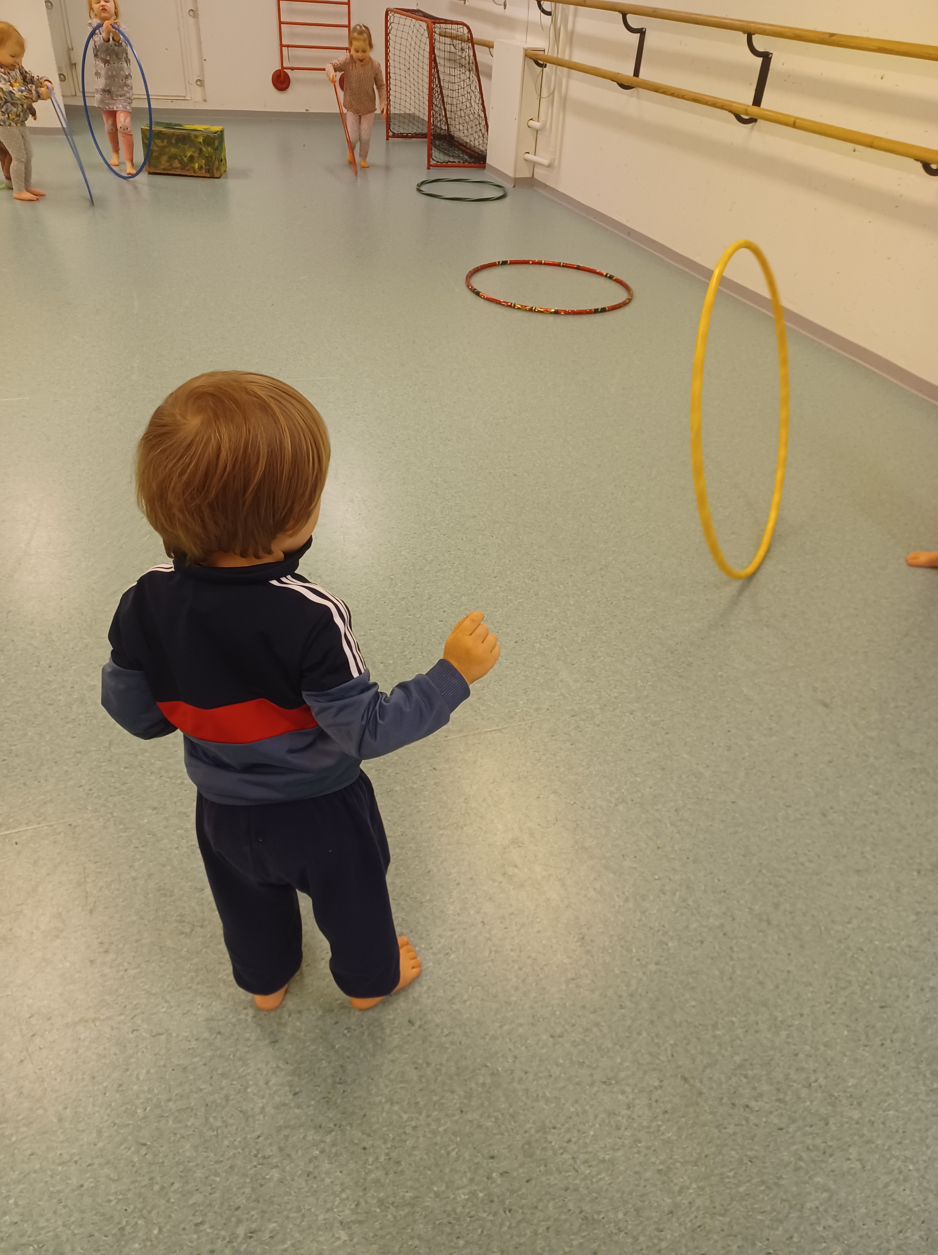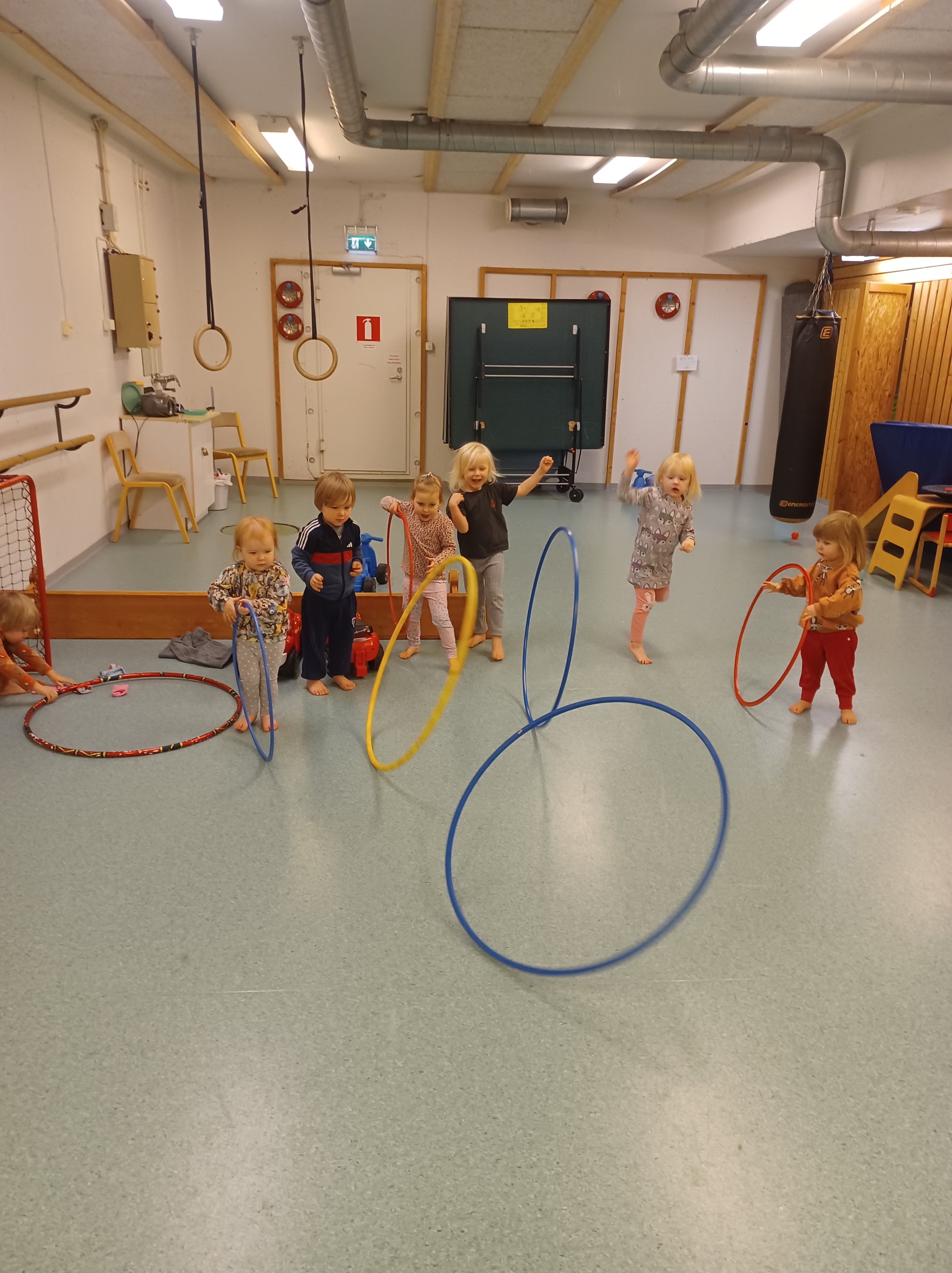Jumpalla teimme koordinaatioharjoituksia pujottelemalla ja renkailla 🙂 lopuksi pelasimme lasten toiveesta pari matsia…