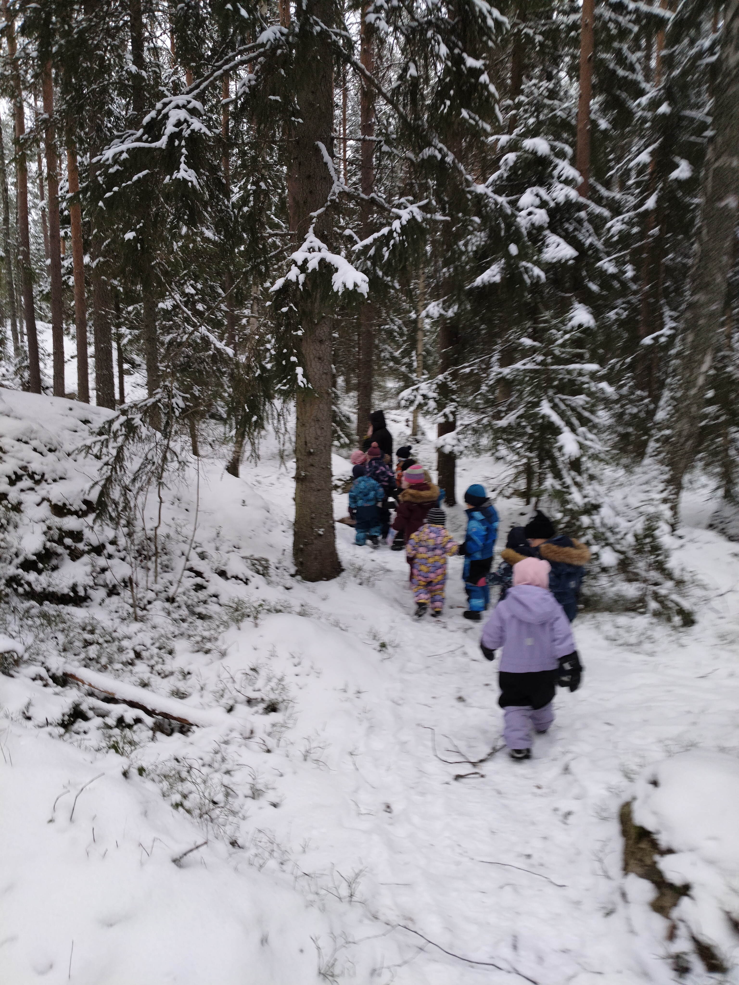 Tästä innostuneina teimme tutkimusretken lähimetsään ja bongailimme eläinten jättämiä jälkiä… Lapset olivat hyvin tarkkana ja tekivät hyviä havaintoja lähiympäristöstä.