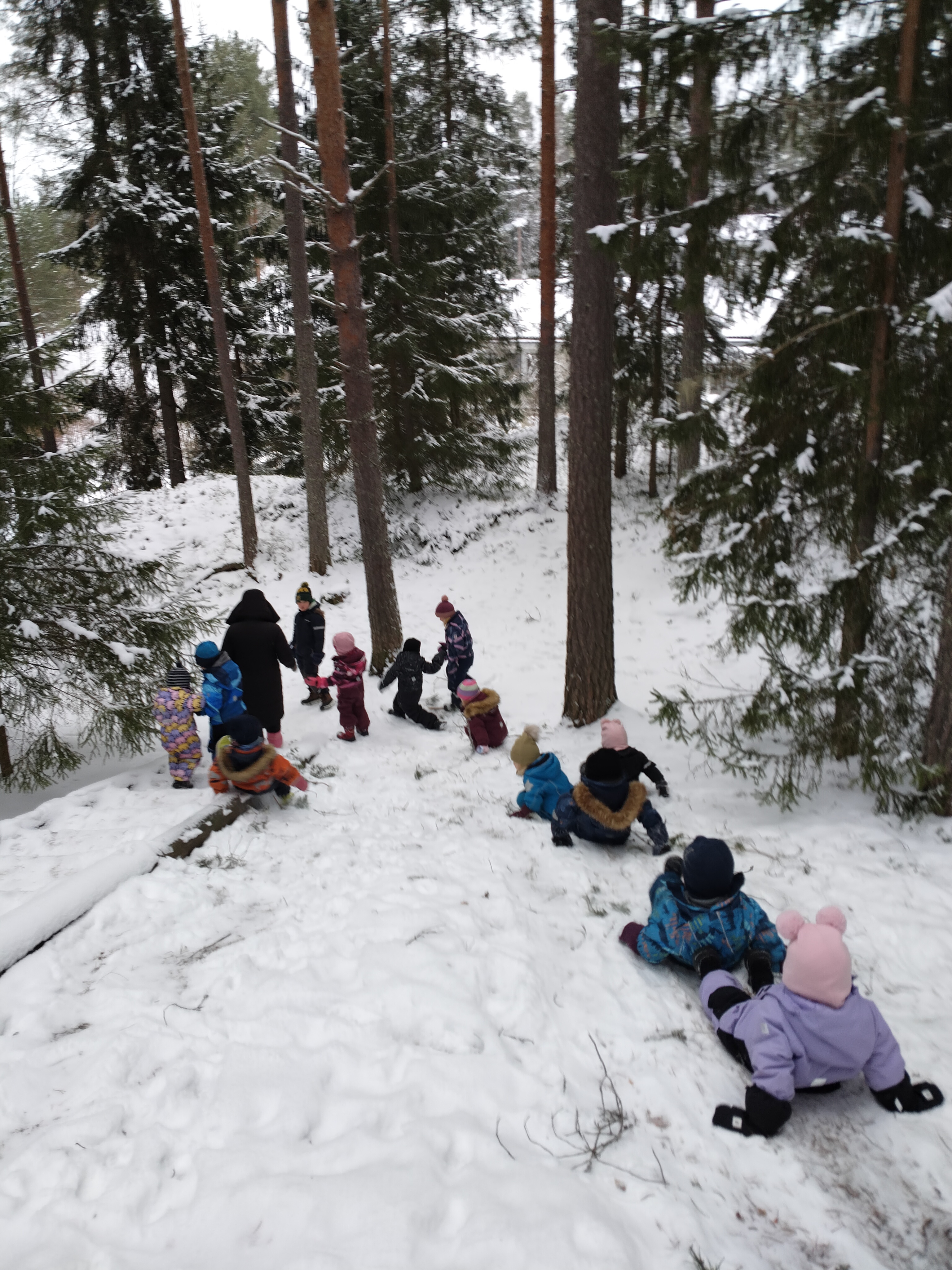 Opiskelijamme Helmi oli keksinyt lapsille kivoja leikkejä. Hannu yllätti ”tuo isoin keppi” leikissä ja lapsia nauratti. Lopuksi kiitimme luontoa ja halailimme puita 🙂