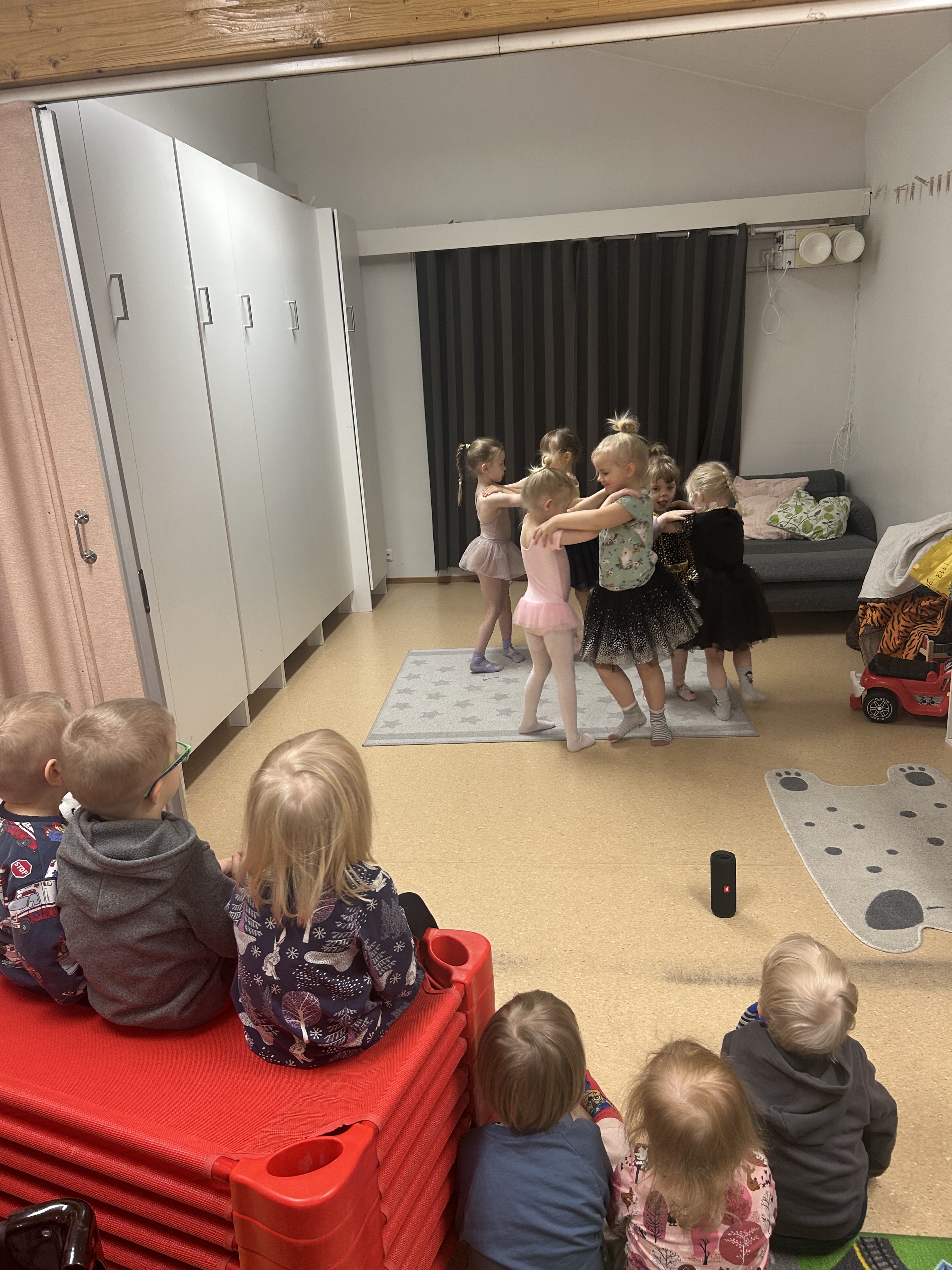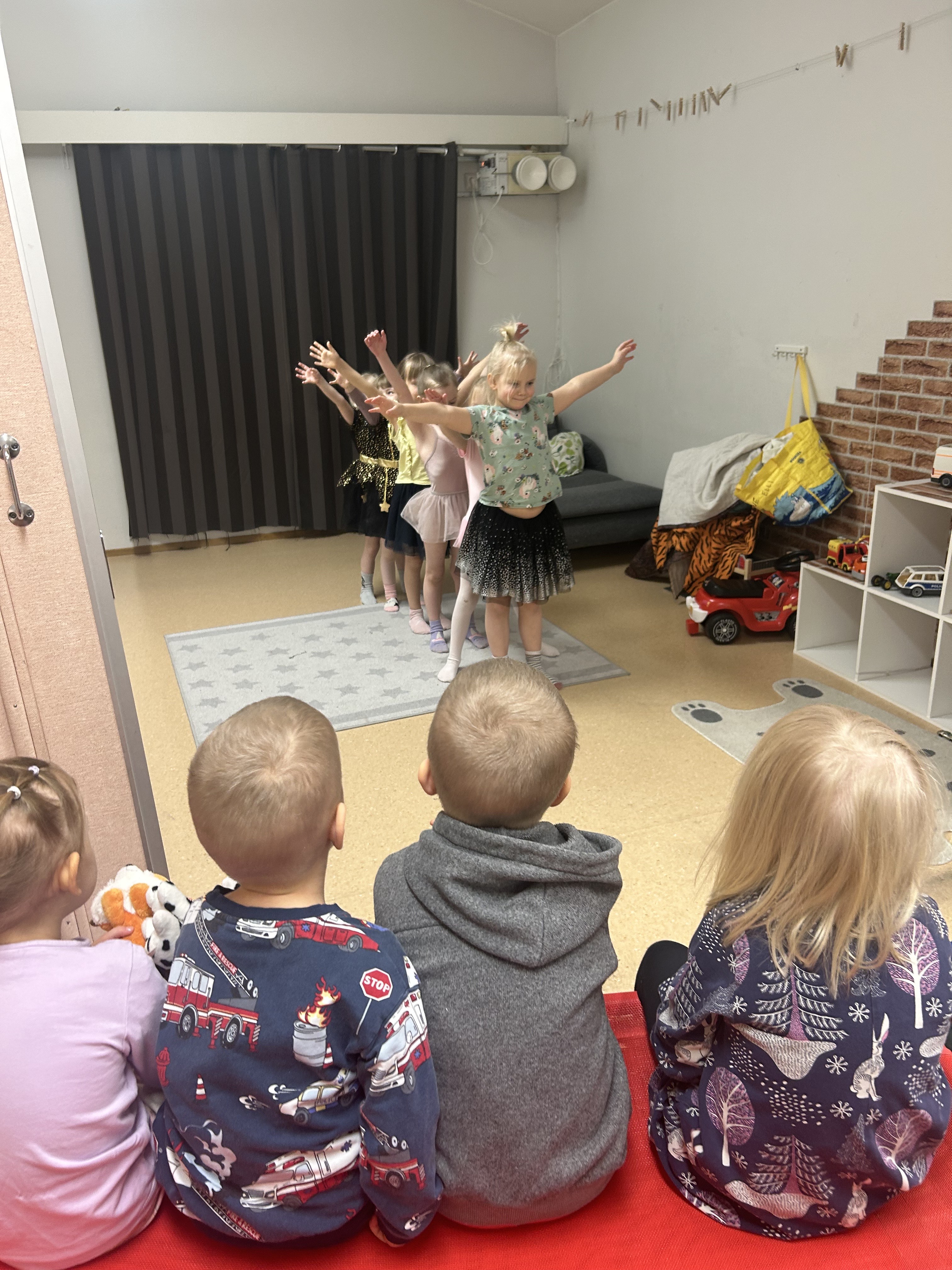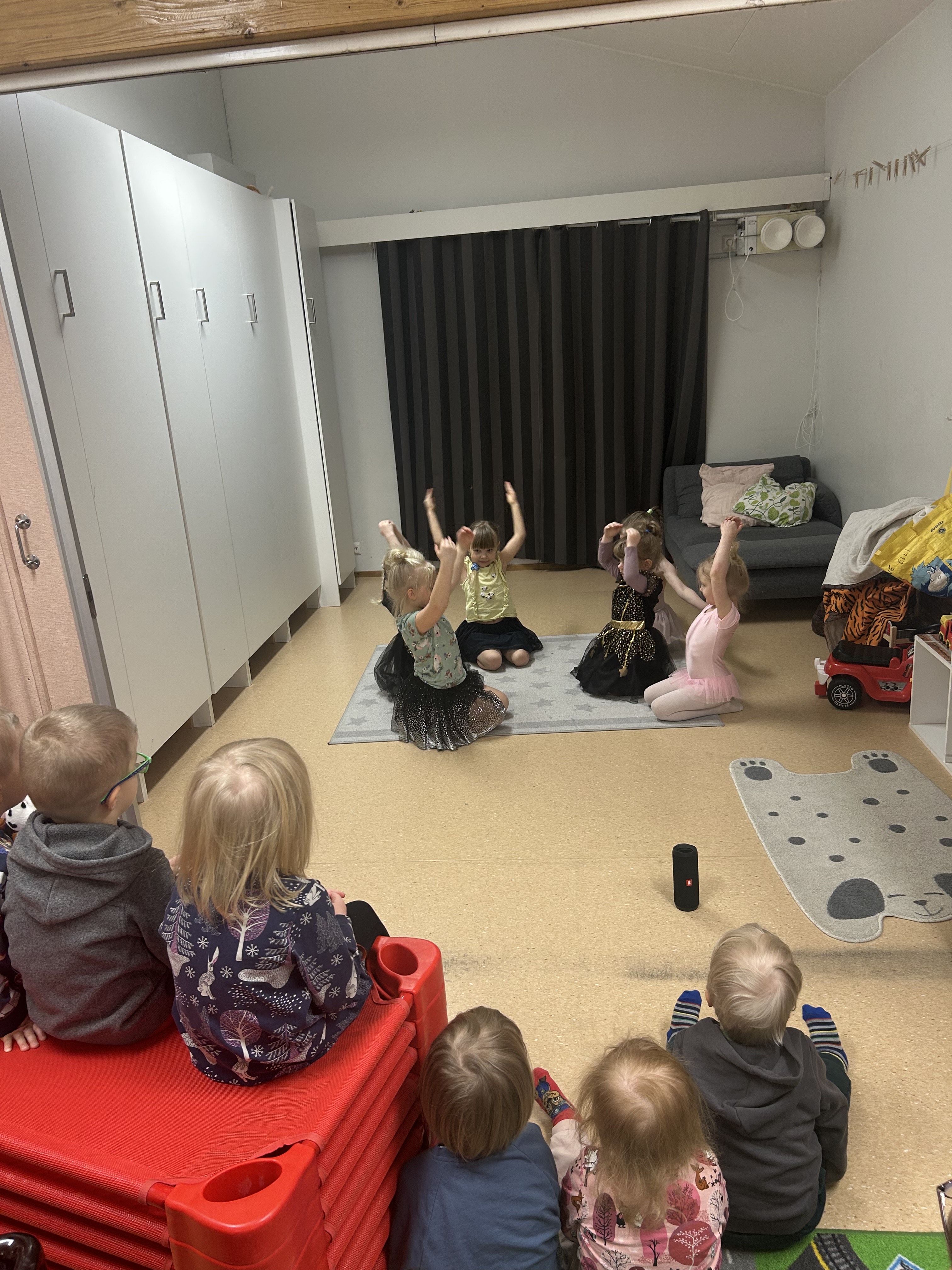 Lapsien vahvuus tässä ryhmässä on ehdottomasti itseilmaisu, jossa he ovat minusta erityisen taitavia. Järjestin siis lapsia varten avoimen lavan. Lapset, ketkä olivat halukkaita osallistumaan saivat itse päättää, mitä he esittäisivät. Avoimen lavan katsomossa saatiin nauttia mm. vitseistä, laulamisesta ja tanssimisesta. Lapsilta ei myös tietenkään unohtunut meidän aikuisten rahastus, ennen heidän upeita, vaivalla tehtyjä esityksiään.