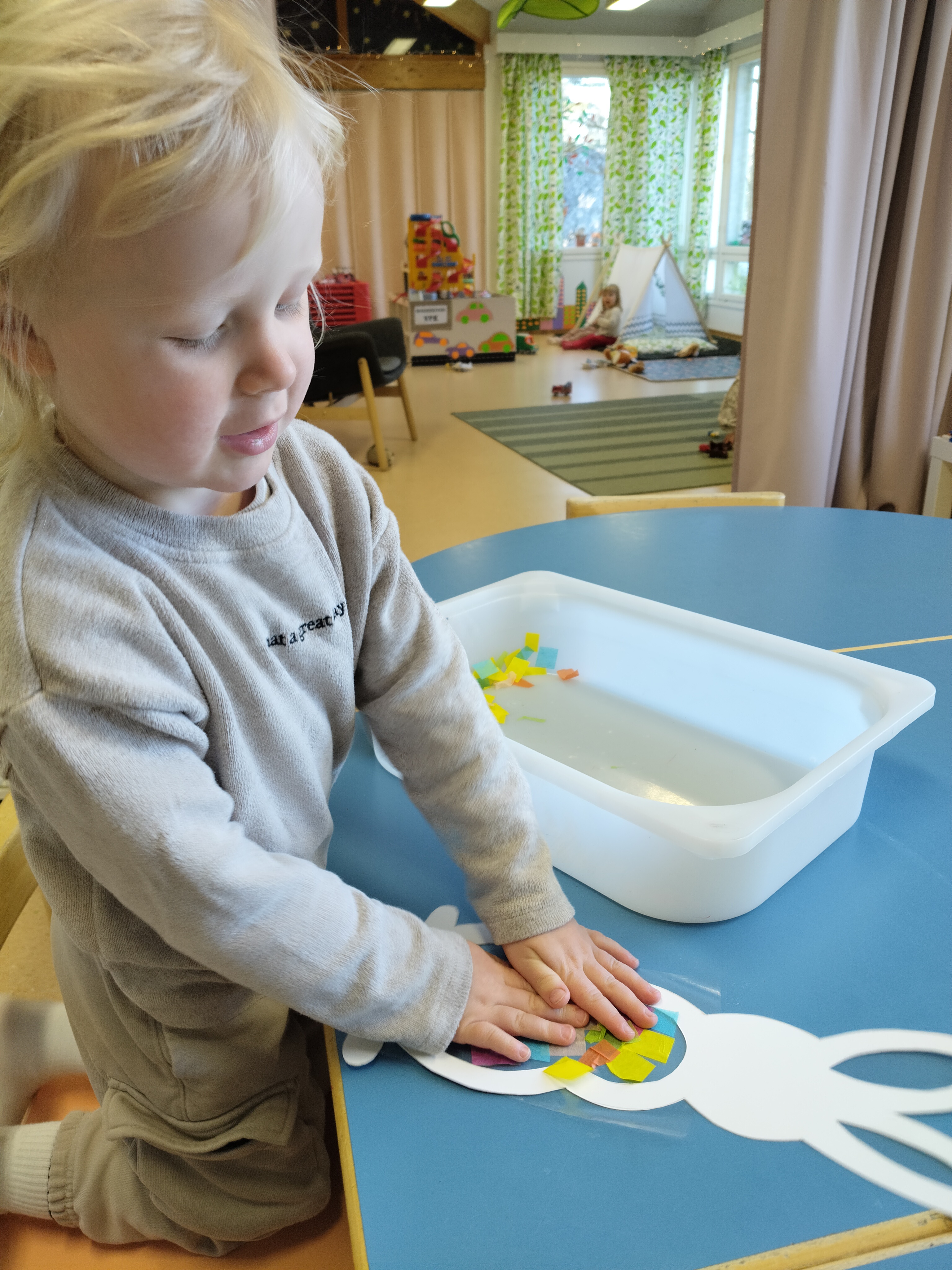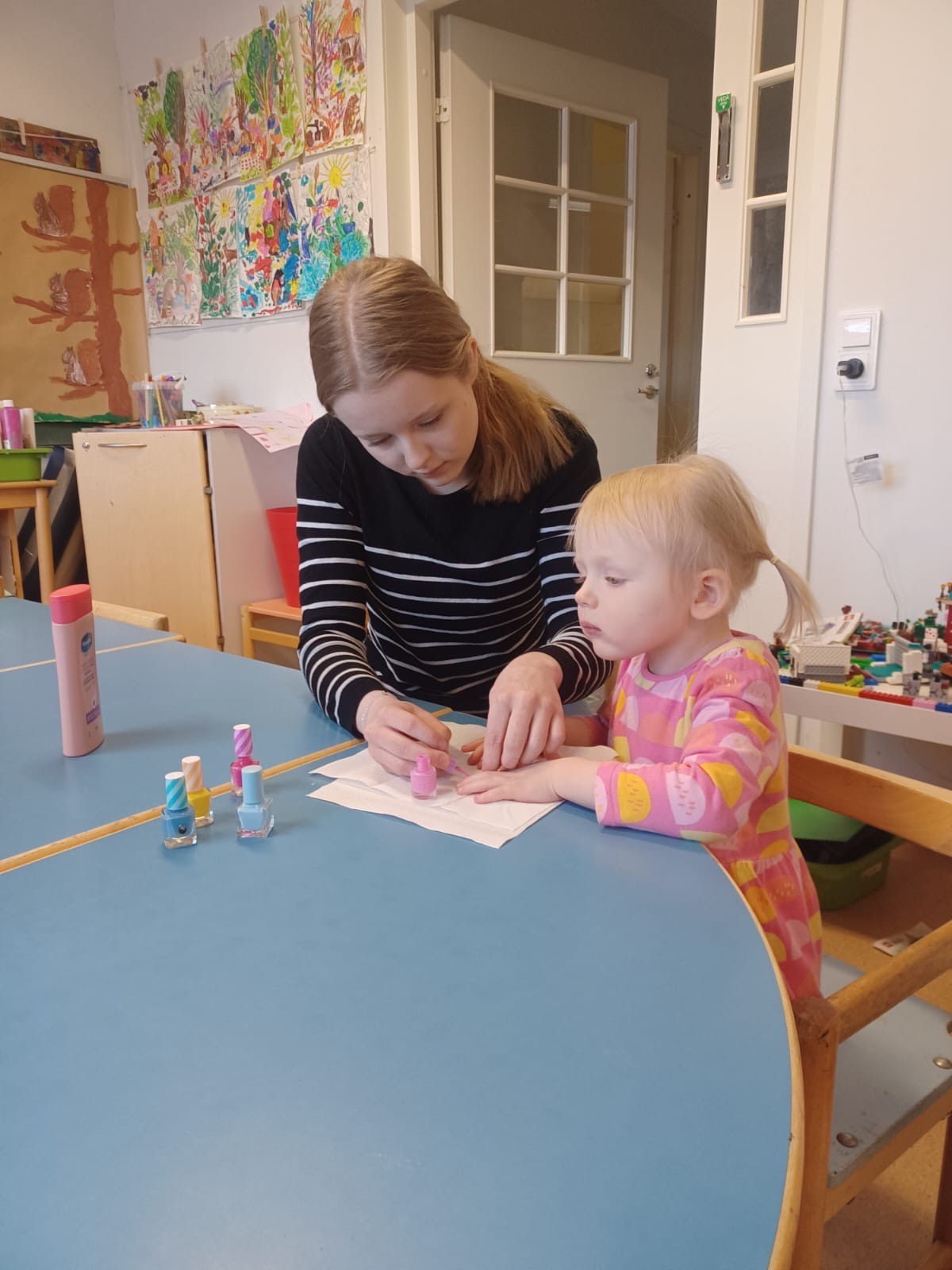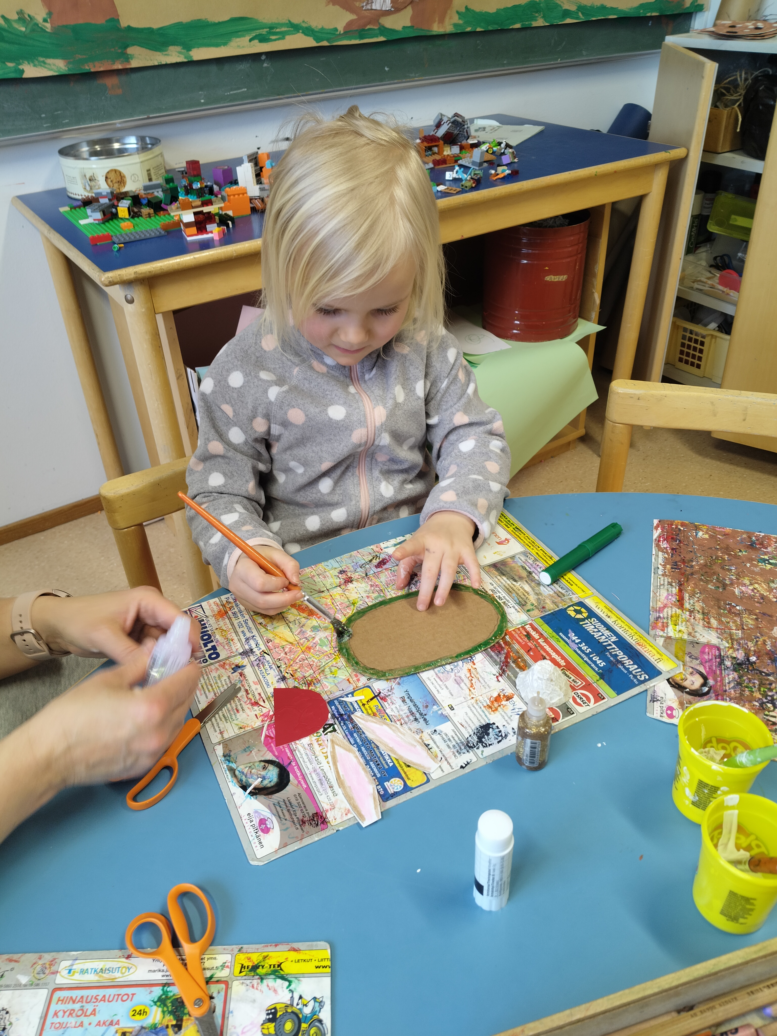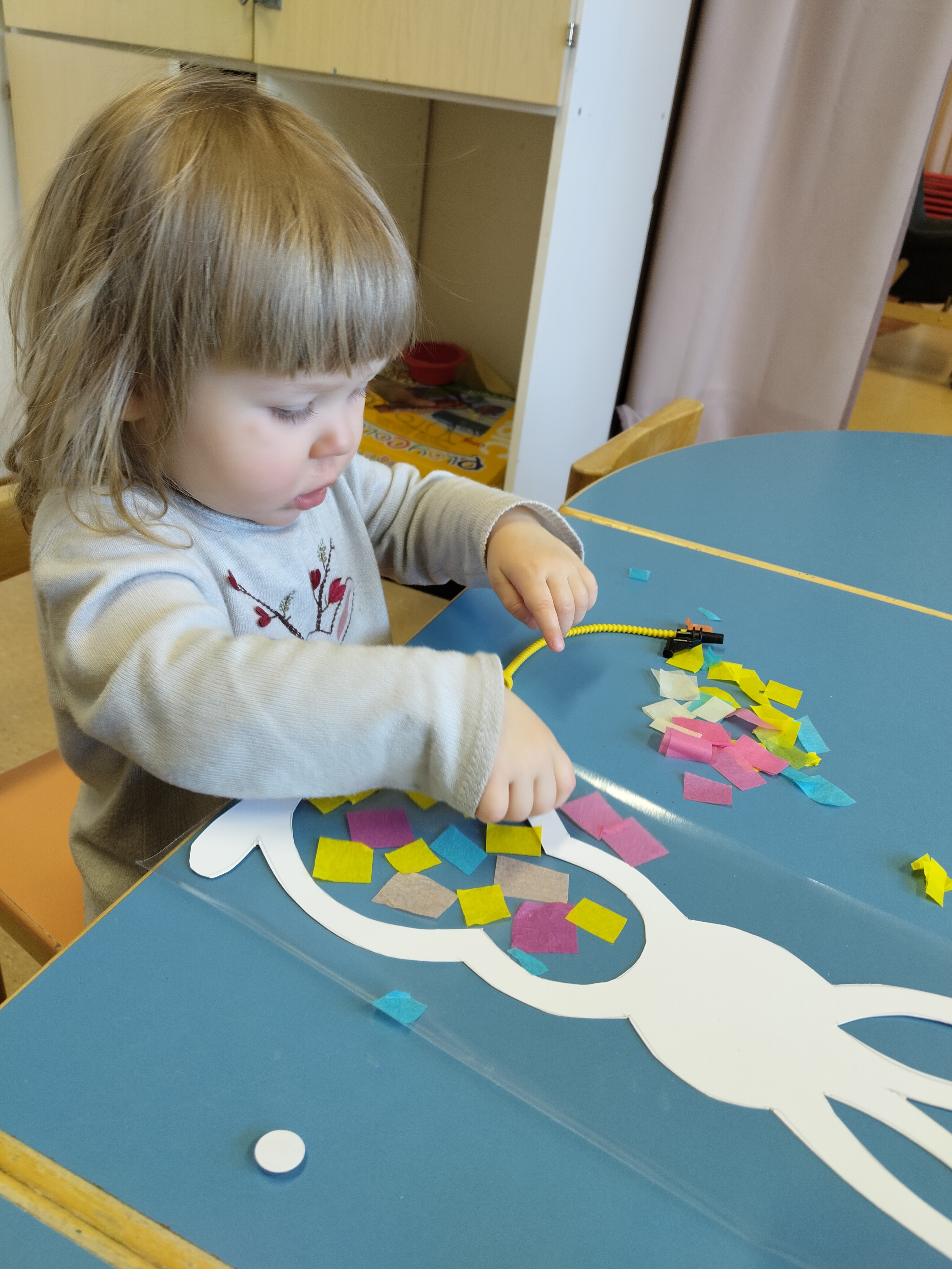 Pienryhmissä olemme pelailleet lautapelejä sekä palapelejä, tehneet viskaritehtäviä, leikkineet ja askarrelleet. Lasten osallisuus päästään hyvin huomioimaan pienryhmätoiminnassa. Tuuli pitää kevään aikana lapsille myös vuorovaikutuskerhoa pienryhmissä kerran viikossa. Tämä tukee vuorovaikutustaitojen kehittymistä ja yhteyden rakentamista leikkitilanteissa aikuisen ohjauksella.