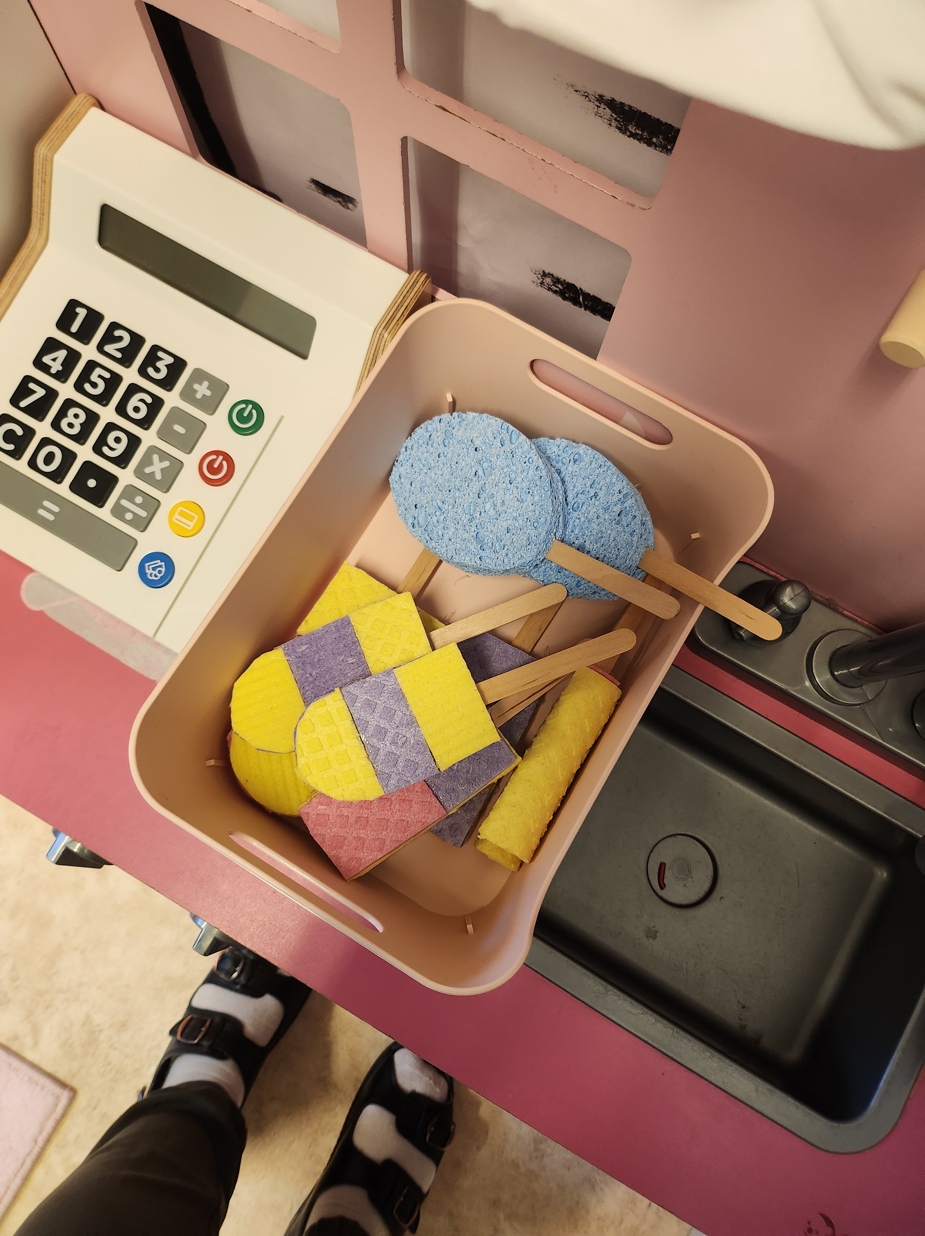 Lisäsimme mielenkiintoa muovailuun ja ideoimme lapsille erilaisia muovailualustoja, joita he voivat haluamallaan tavalla koristella. Alustoista löytyy mm. jätskejä ja leivonnaisia 🙂