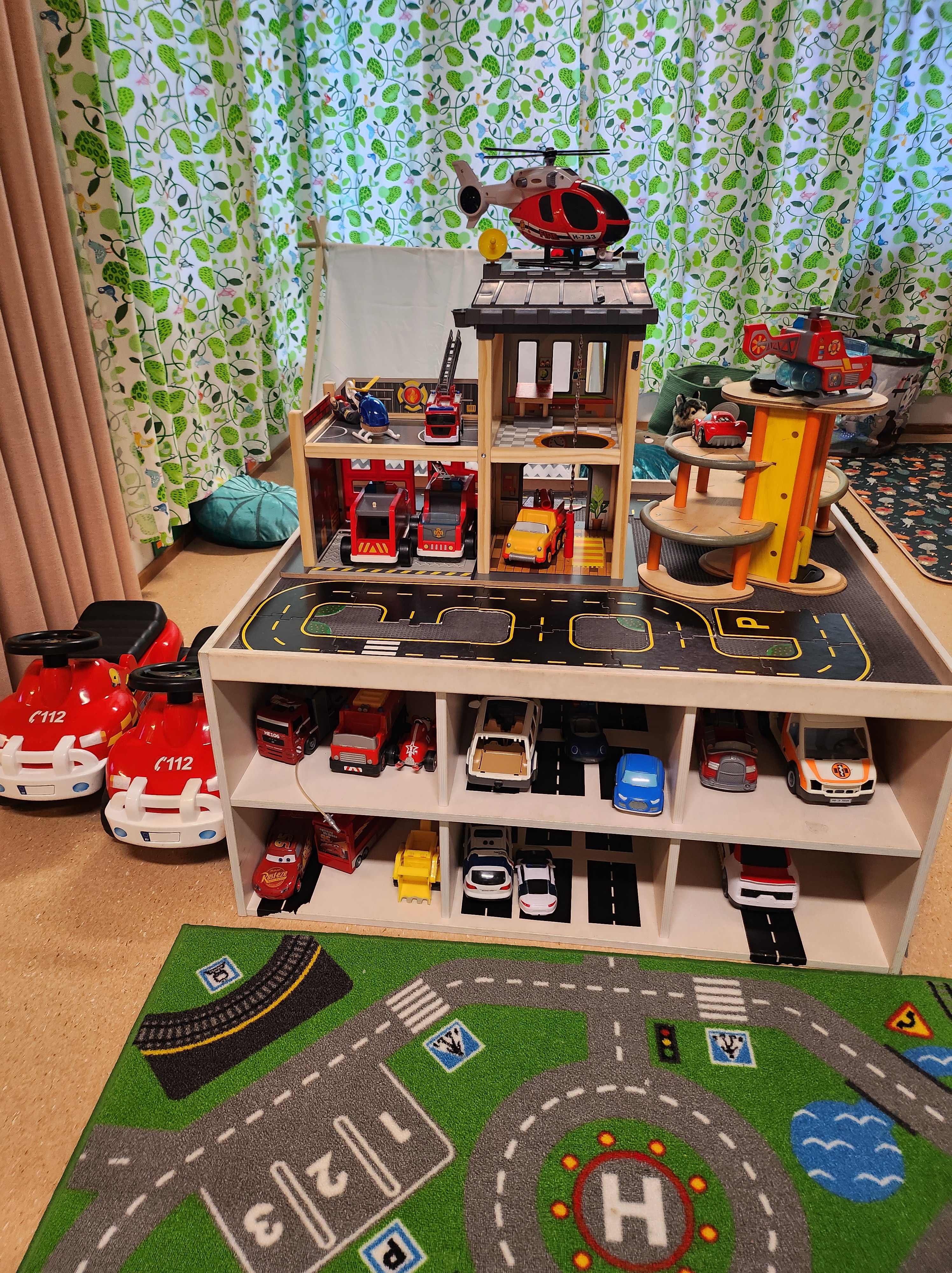 Rakensimme lasten kanssa pizzerian ja jätskikioskin toimistoon. Metsäleikki ja palomiesleikki siirtyi saliin ja nukkarissa on kotileikki. Pizzerialeikki on ollut ihan huippu. Lapset keksivät jopa pizzan kotiinkuljetuspalvelun, joten sitä voi tilata minne tahansa 🙂