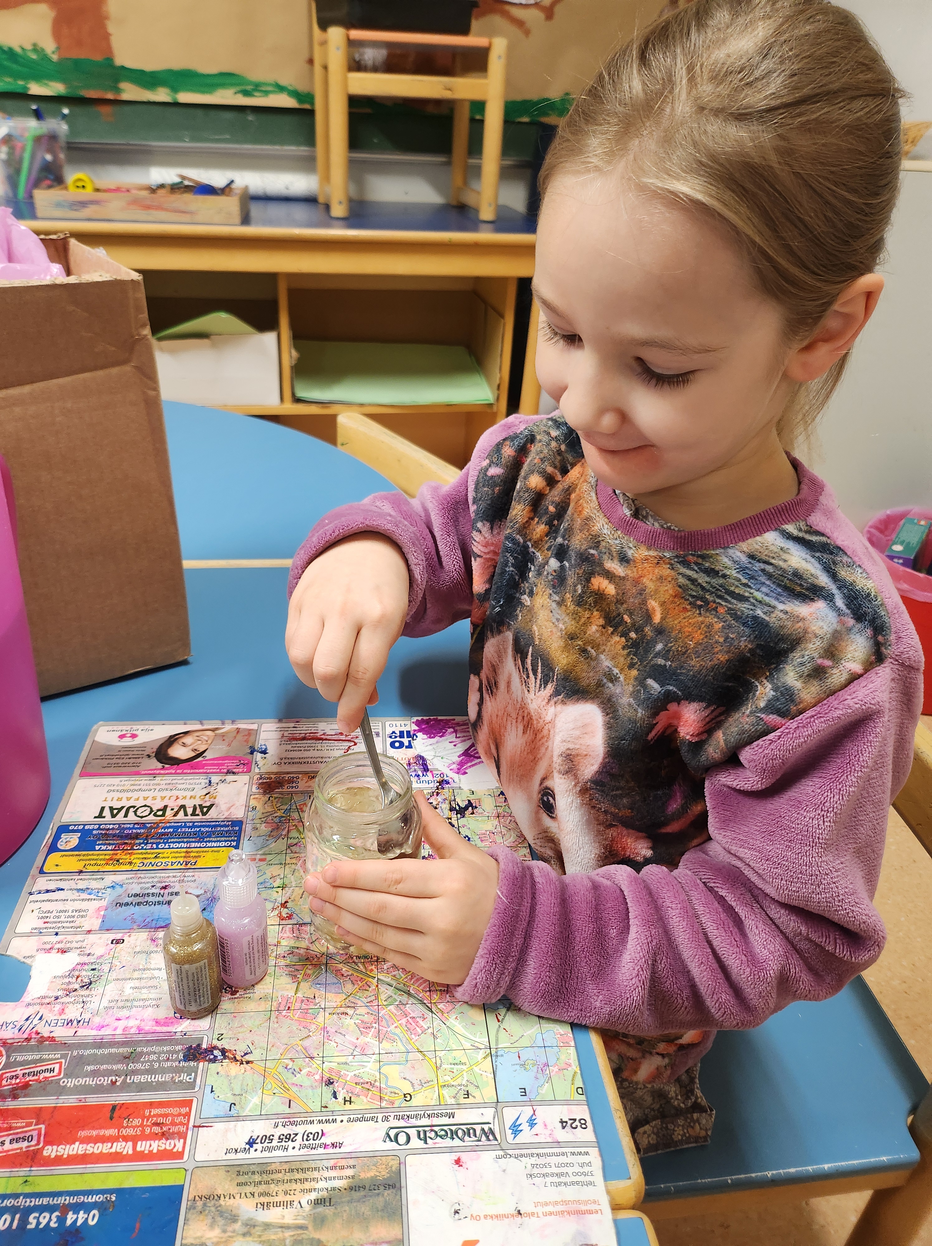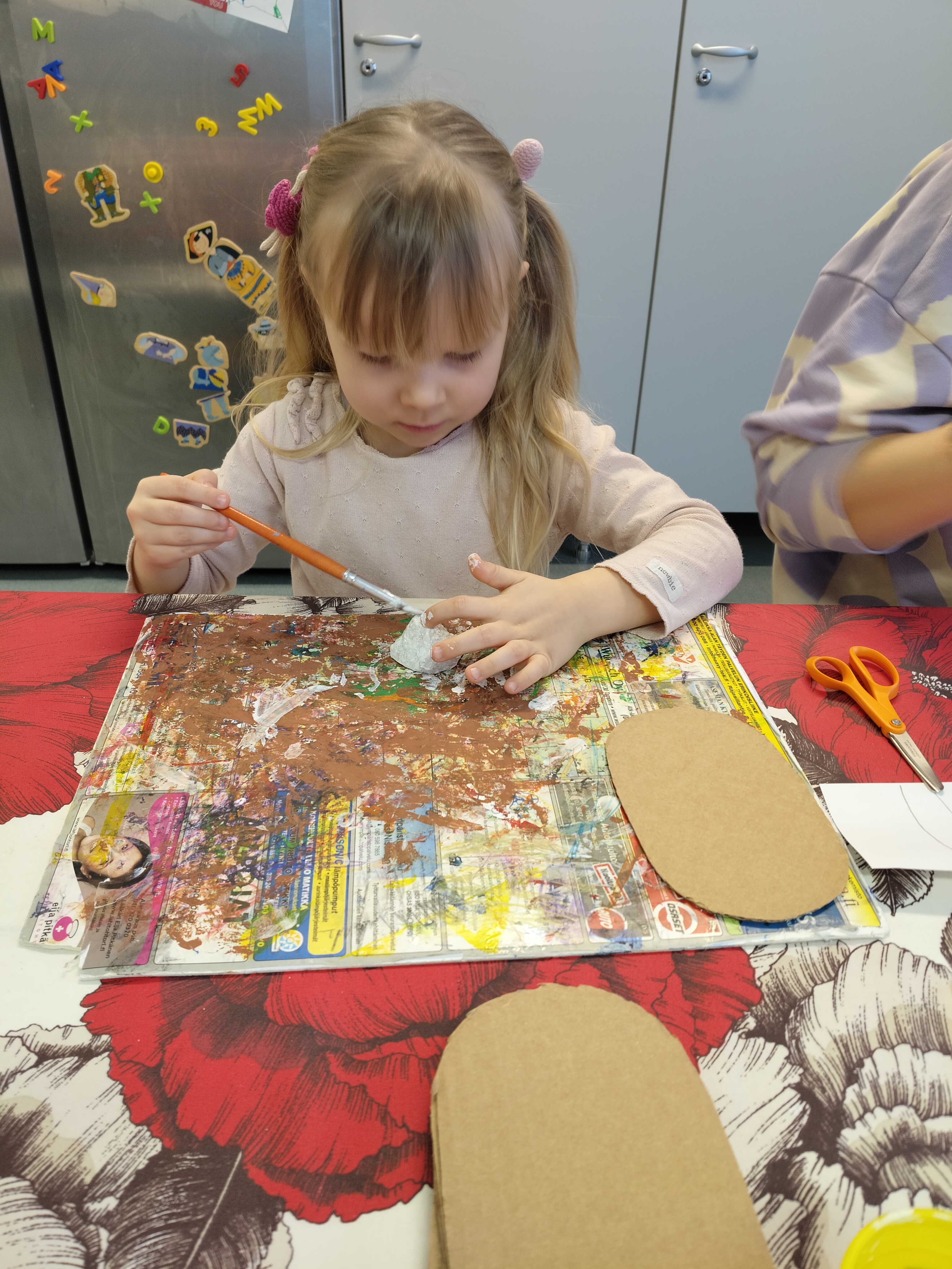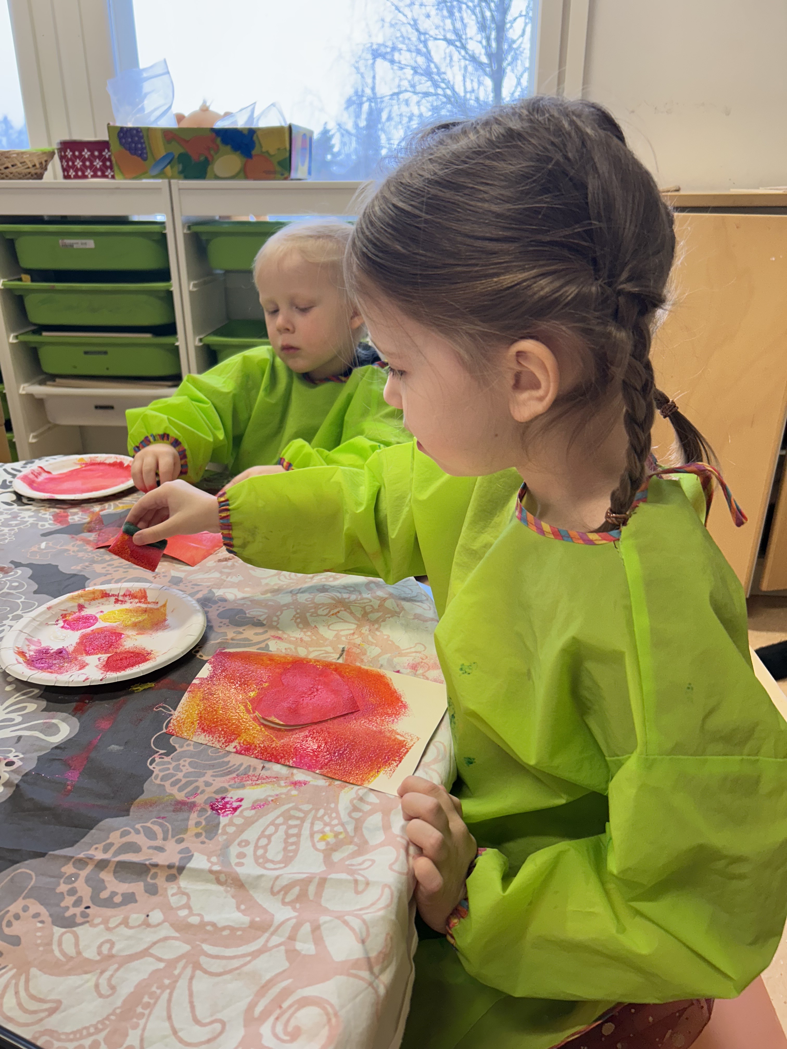 Manner Taidetarvikkeen väki kävi päiväkodillamme pitämässä lapsille työpajaa ja kuvaamassa lapsia askartelemassa. Lapset pääsivät kokeilemaan paperimassa-askartelua, monoprinttien painantaa gellilevyillä sekä lapset saivat värittää vahaliiduilla puputaulut ja viedä ne kotiin. Tämä oli hieno tilaisuus tutustua erilaisiin materiaaleihin ja askartelutekniikoihin, joita aiomme käyttää jatkossakin. Lapset tykkäsivät kovasti 🙂 Kiitos Manner Taidetarvikkeet!