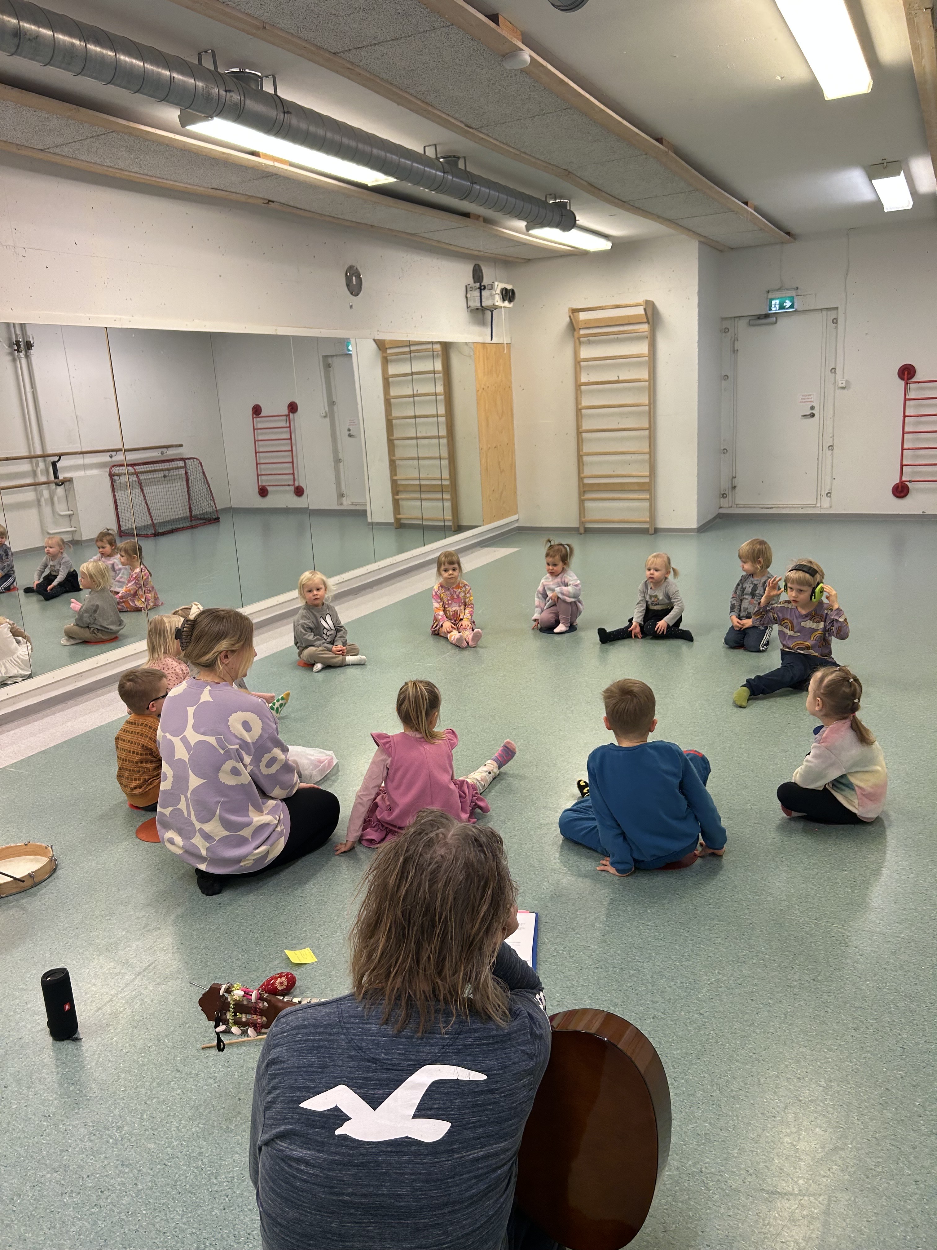 Perjantain musahetki alkaa aina kannustuspiirillä. Laulettiin pitkästä aikaa ”jos sul lysti on”, tanssittiin revontulitanssia, rentouduimme soitinlorun avulla ja lapset saivat esittää toivekappaleita. Lasten TOP5 toivekappaleet kautta aikojen ovat: