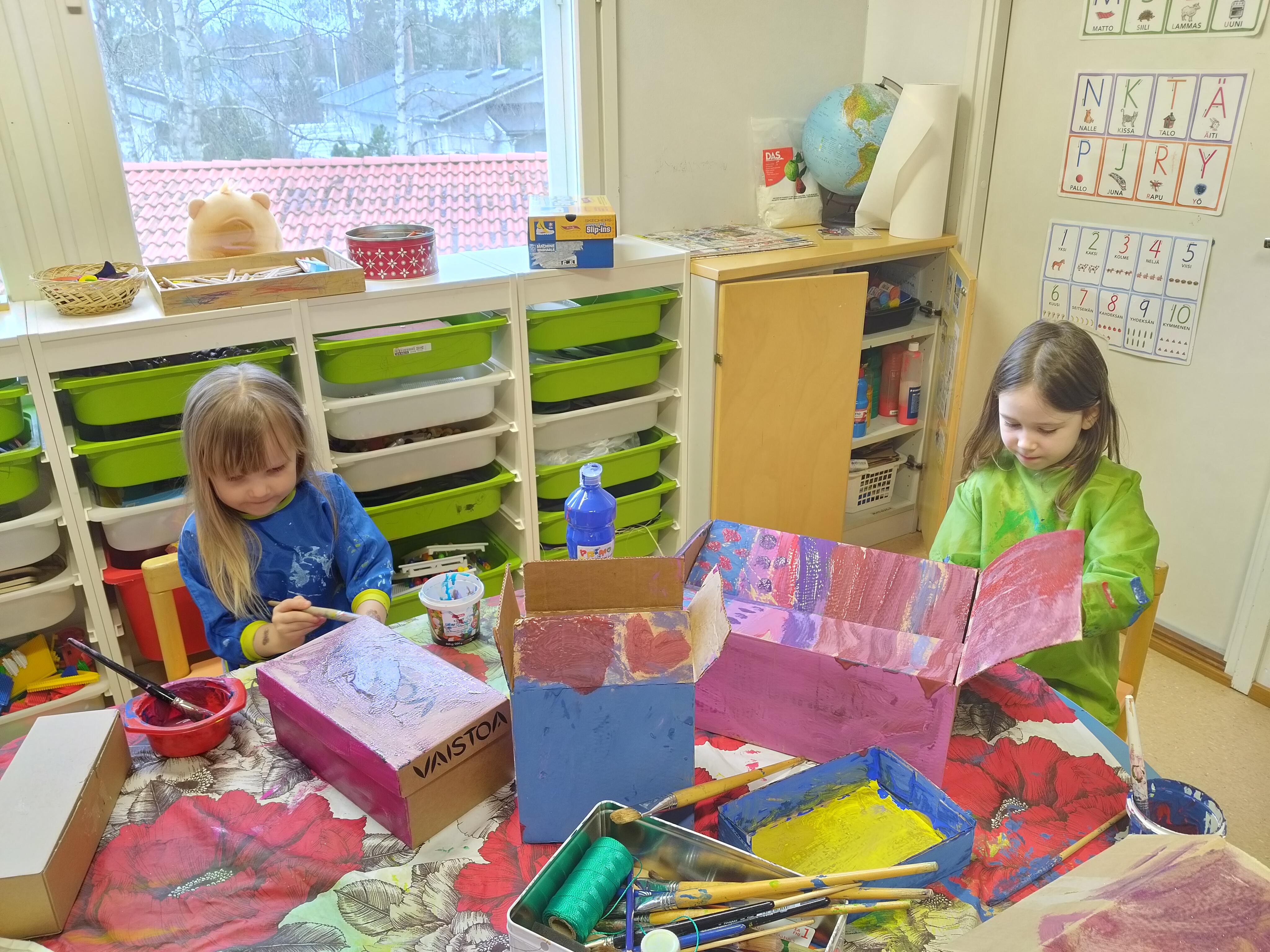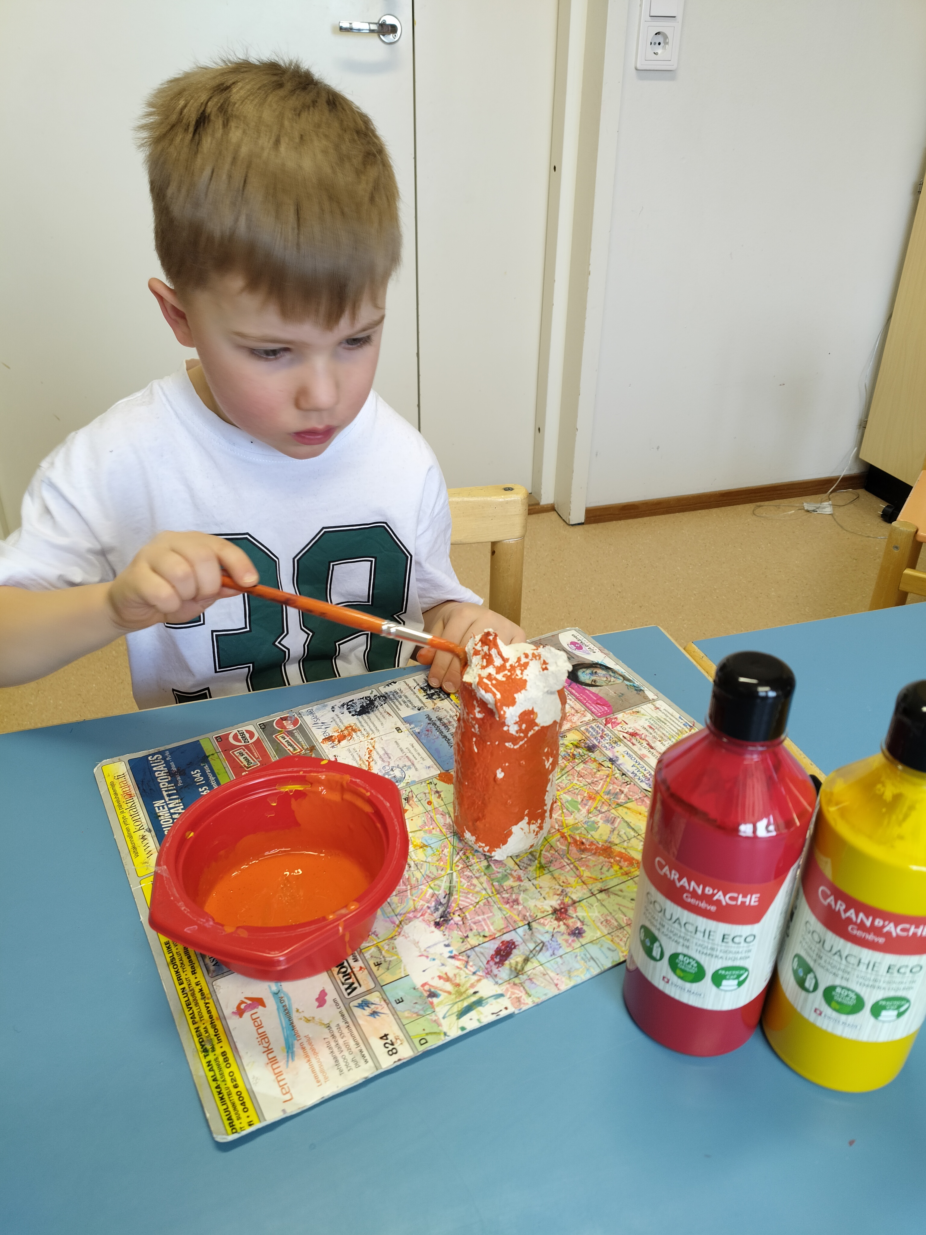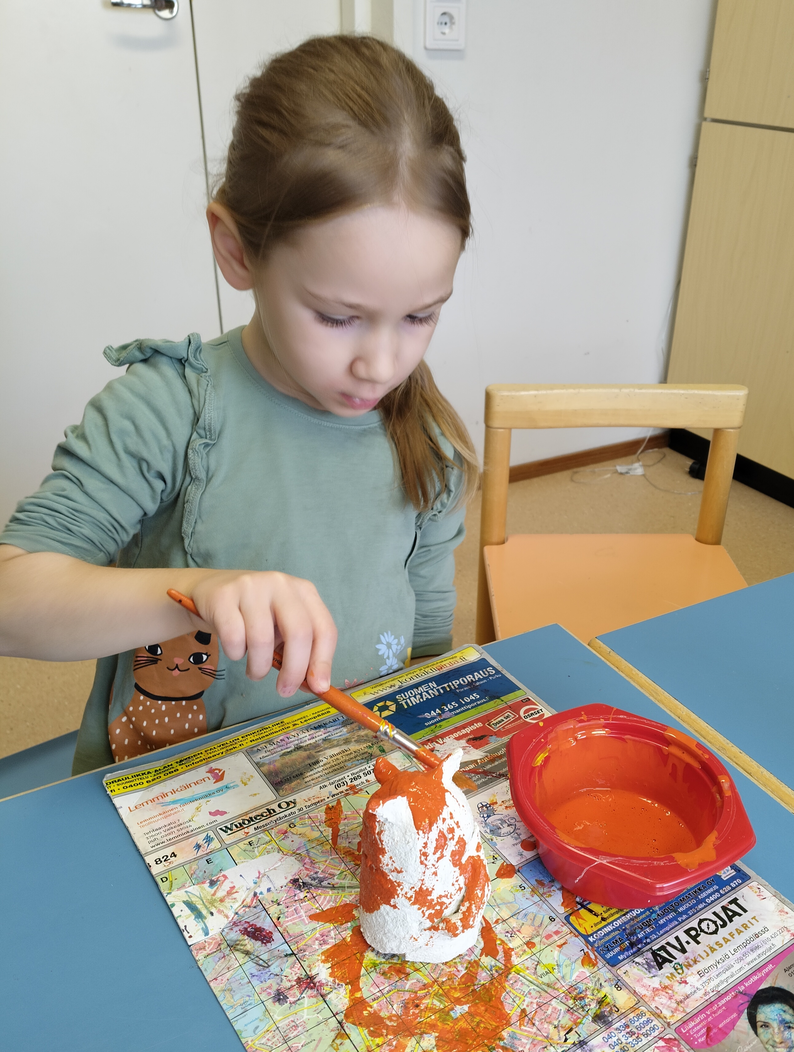 Olemme palanneet joululomilta ja tammikuu onkin käynnistynyt vauhdikkaasti leikkien ja touhuten. Aloitimme lasten kanssa orava-askartelut ja lapset pääsivät kokeilemaan erilaisia maalaustekniikoita.