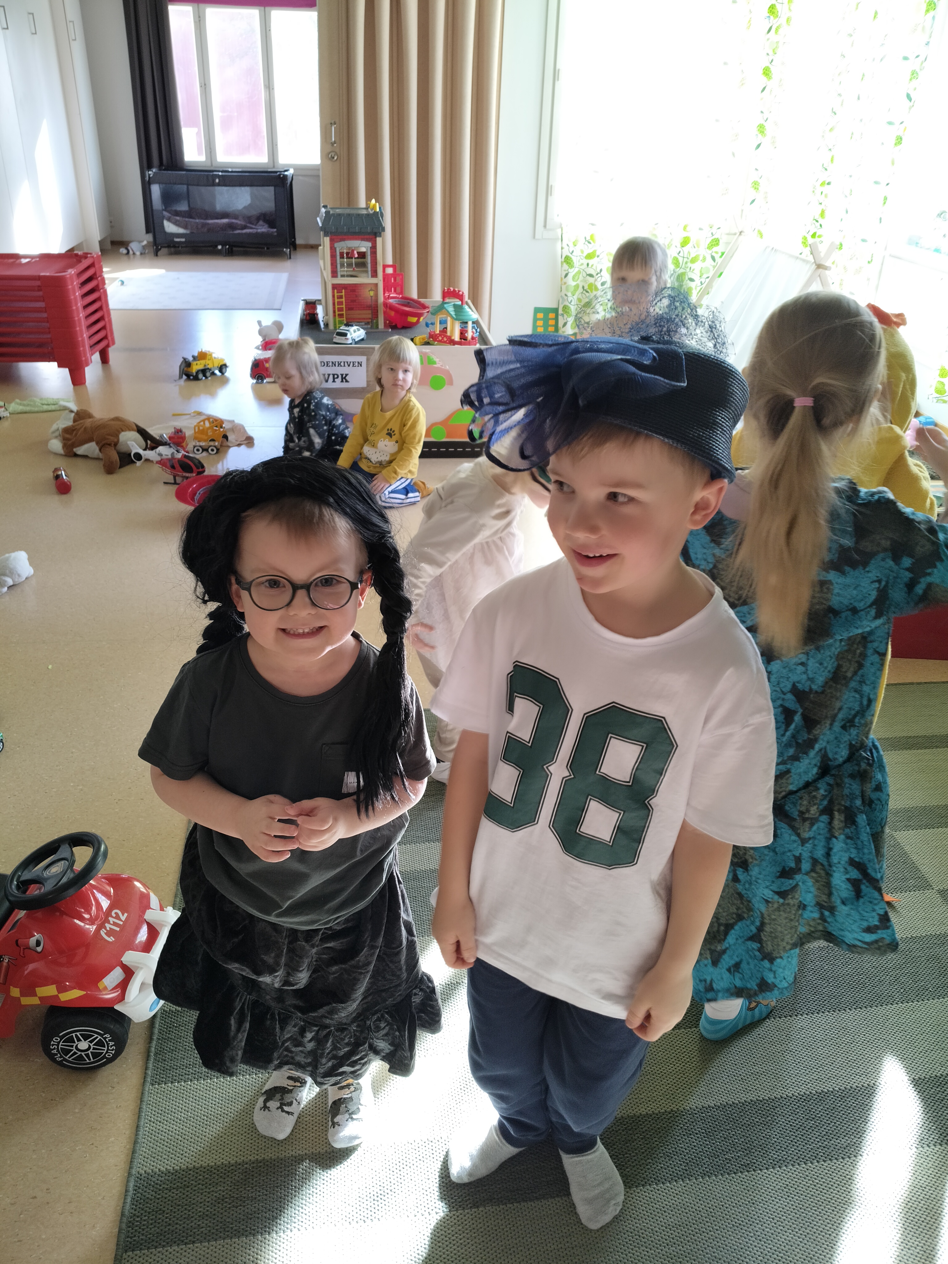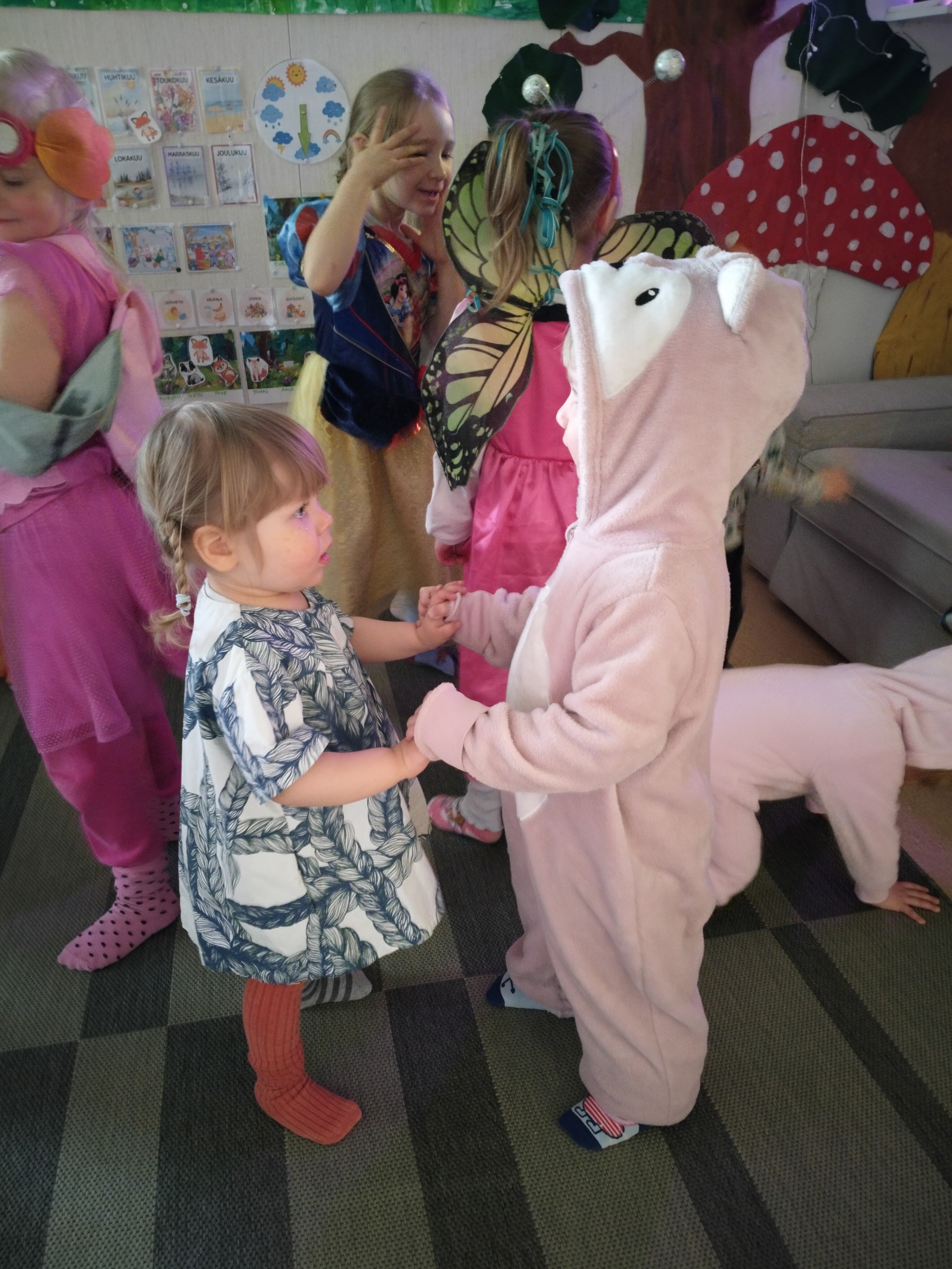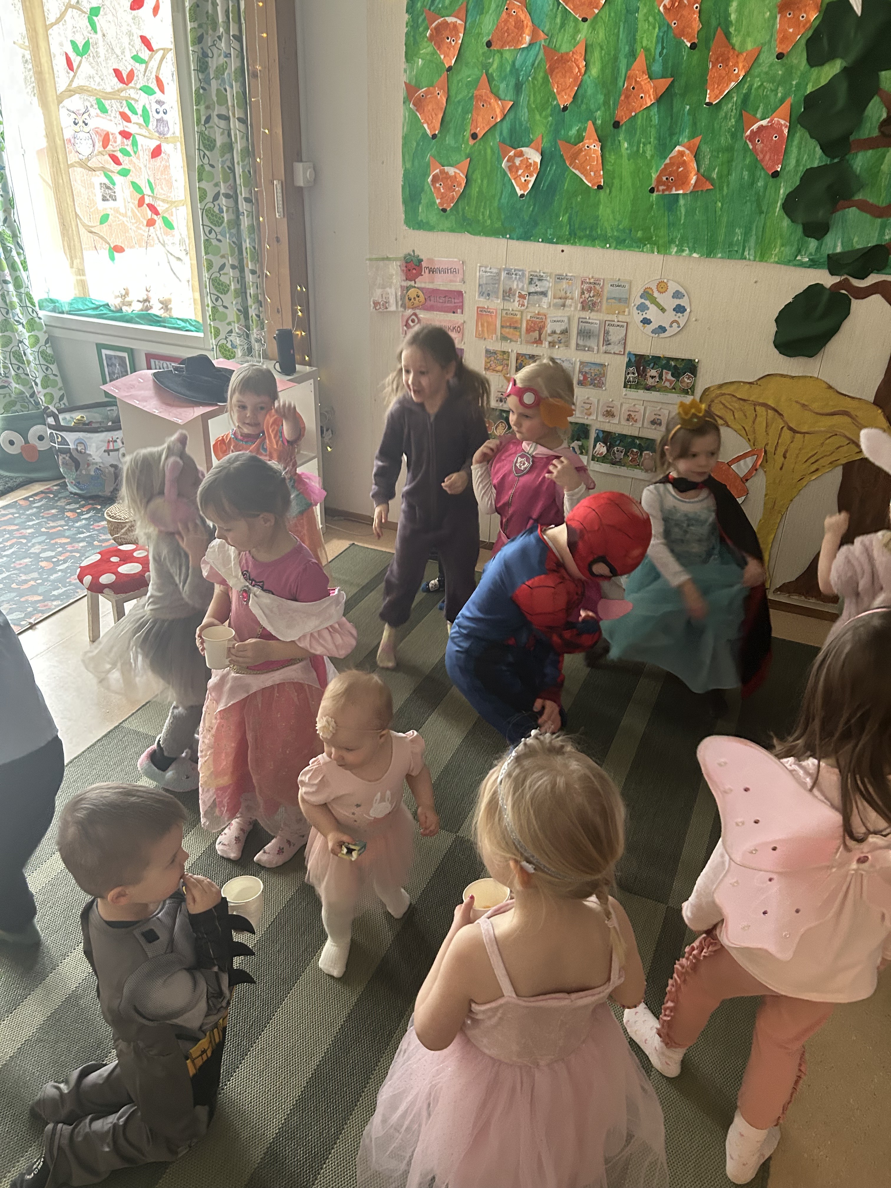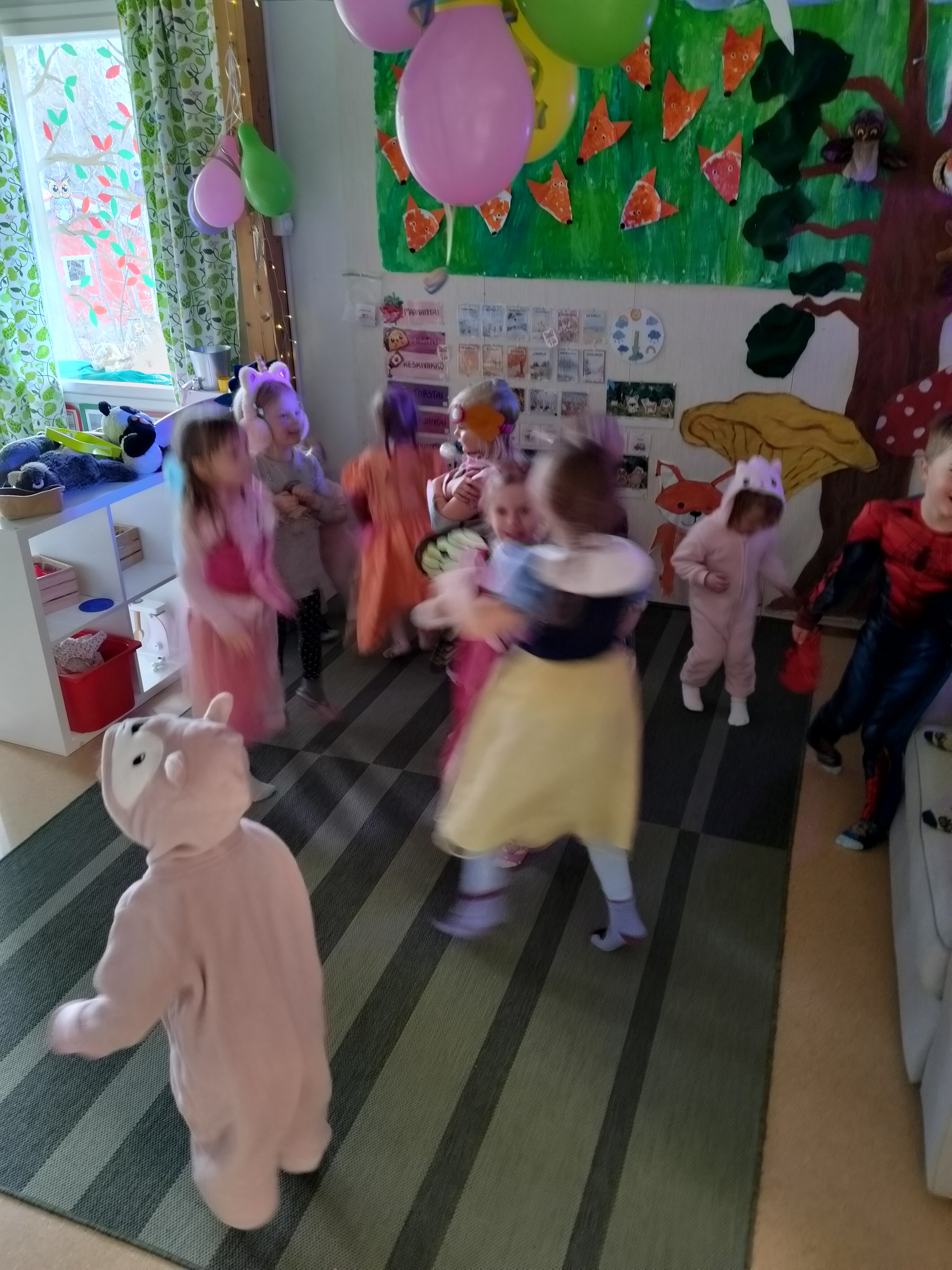 Lapset usein toivovat musiikkia ja roolivaatteita. Iltapäivisin heillä onkin monesti tanssifiilis ja saamme törmätä hauskoihin hahmoihin 🙂