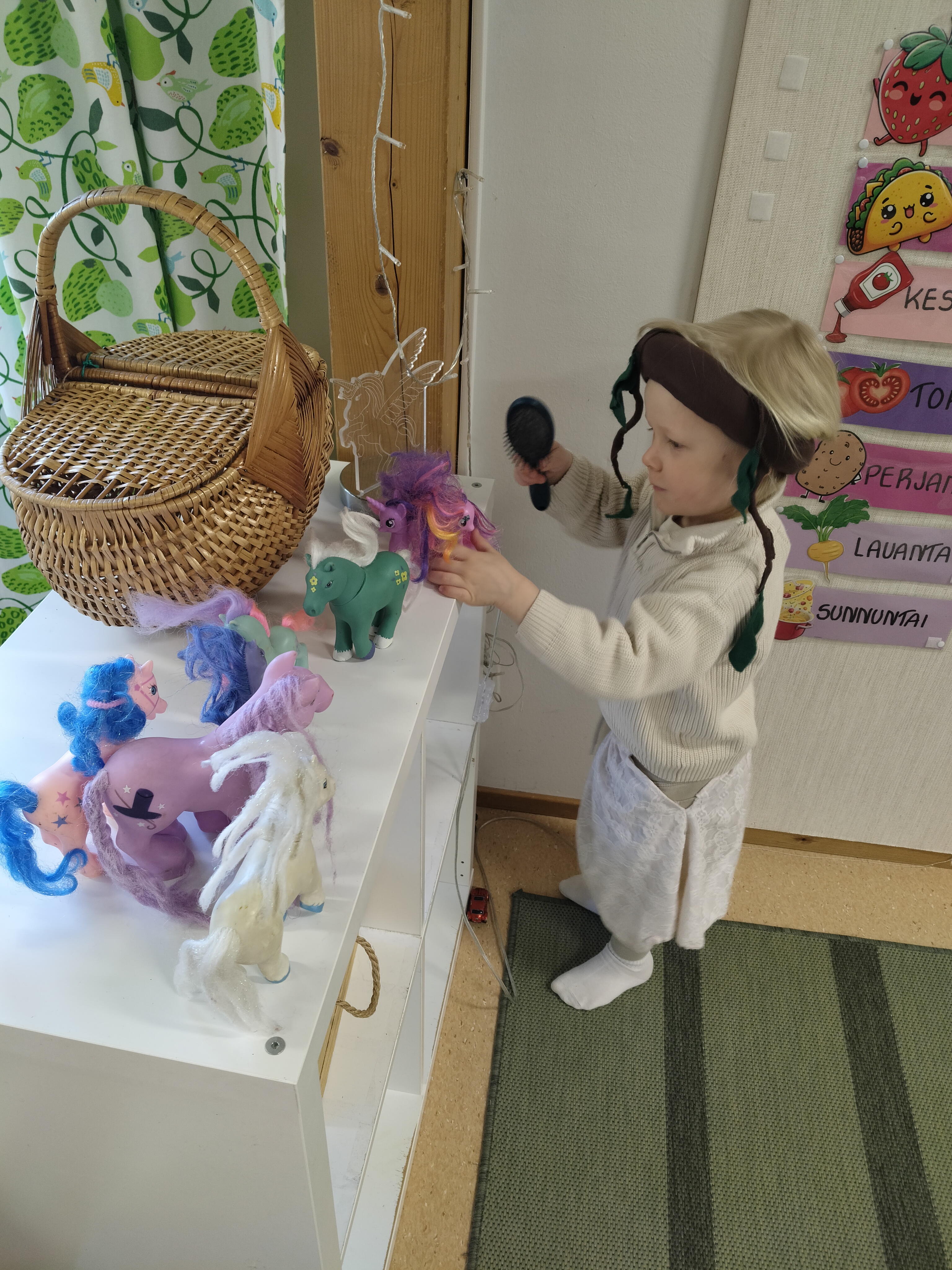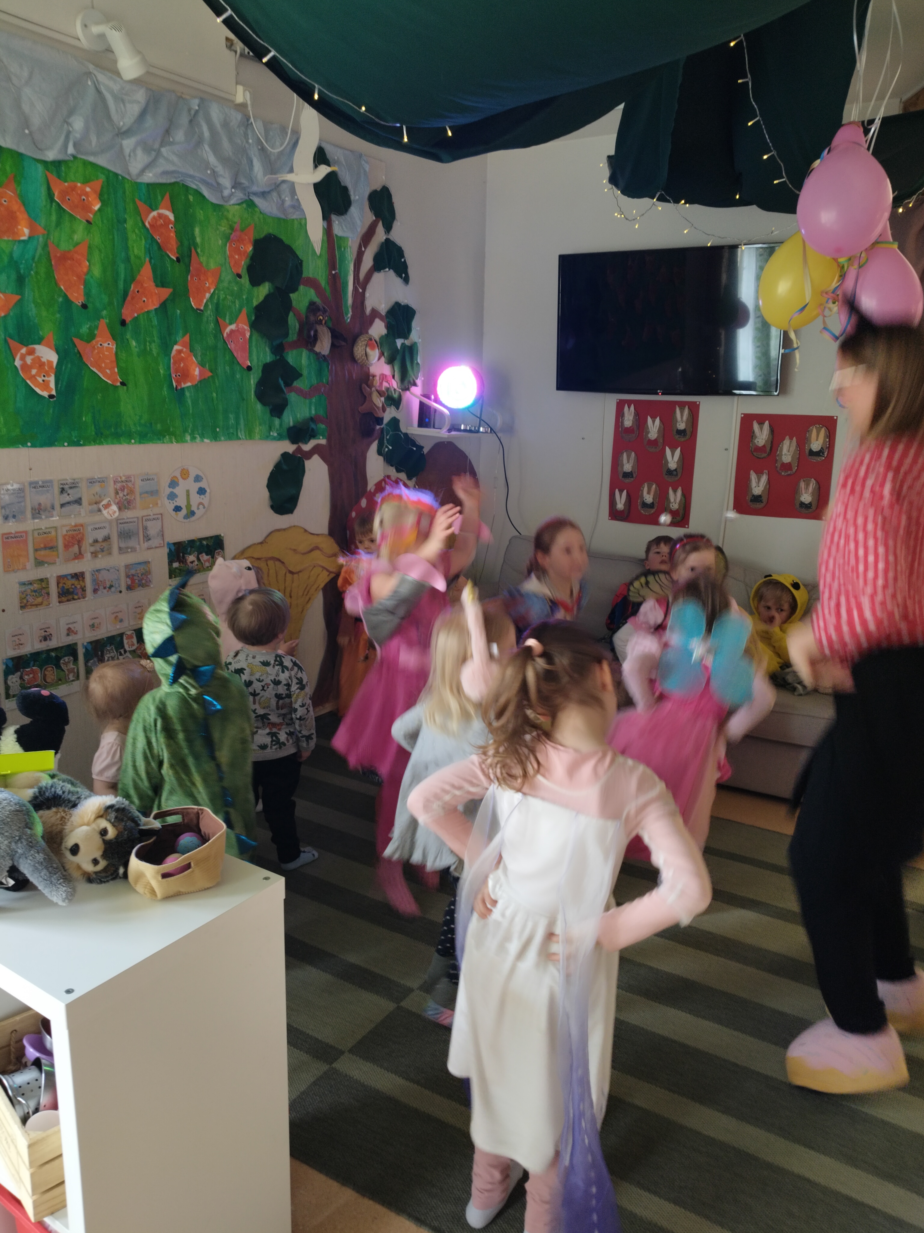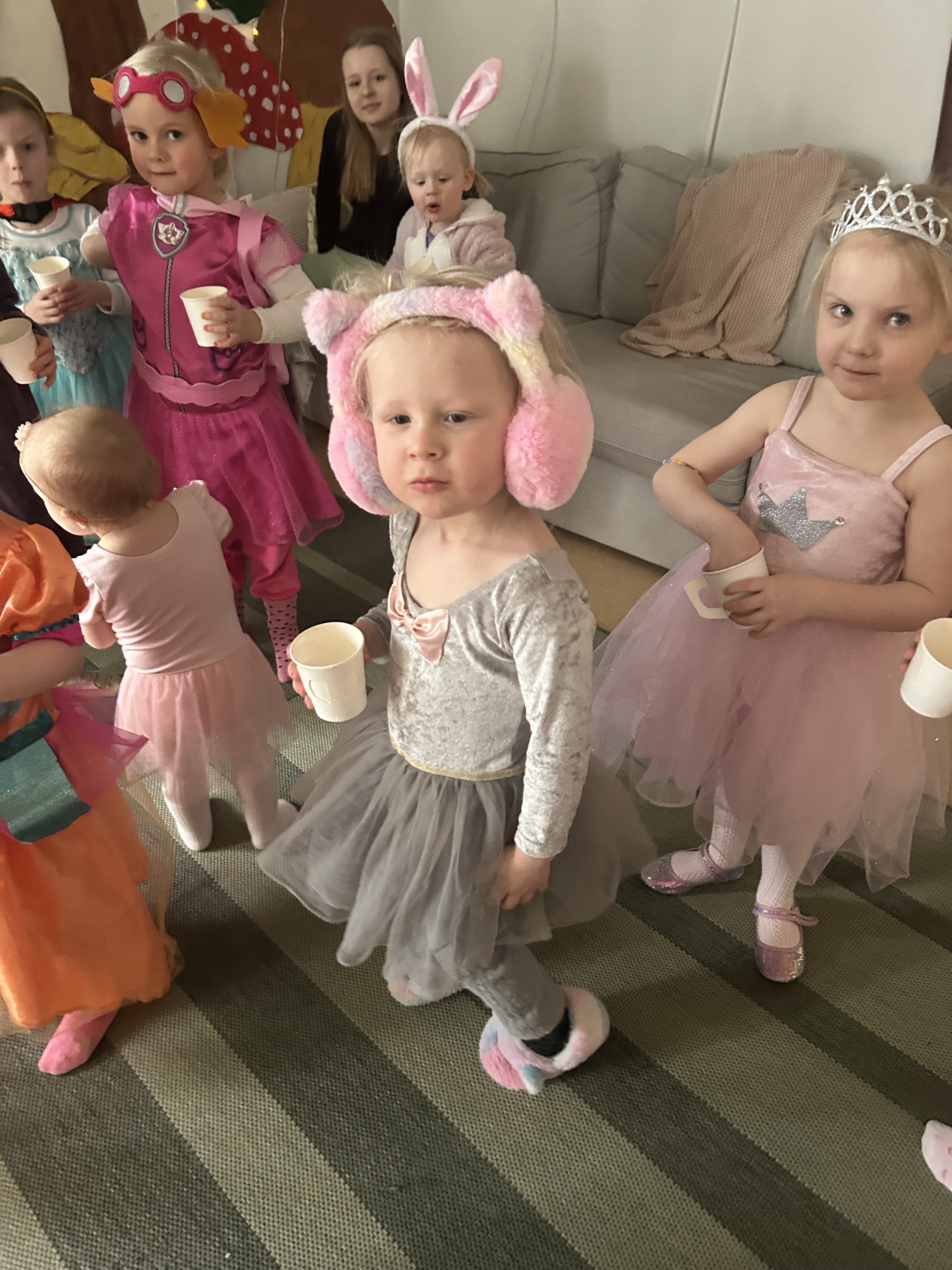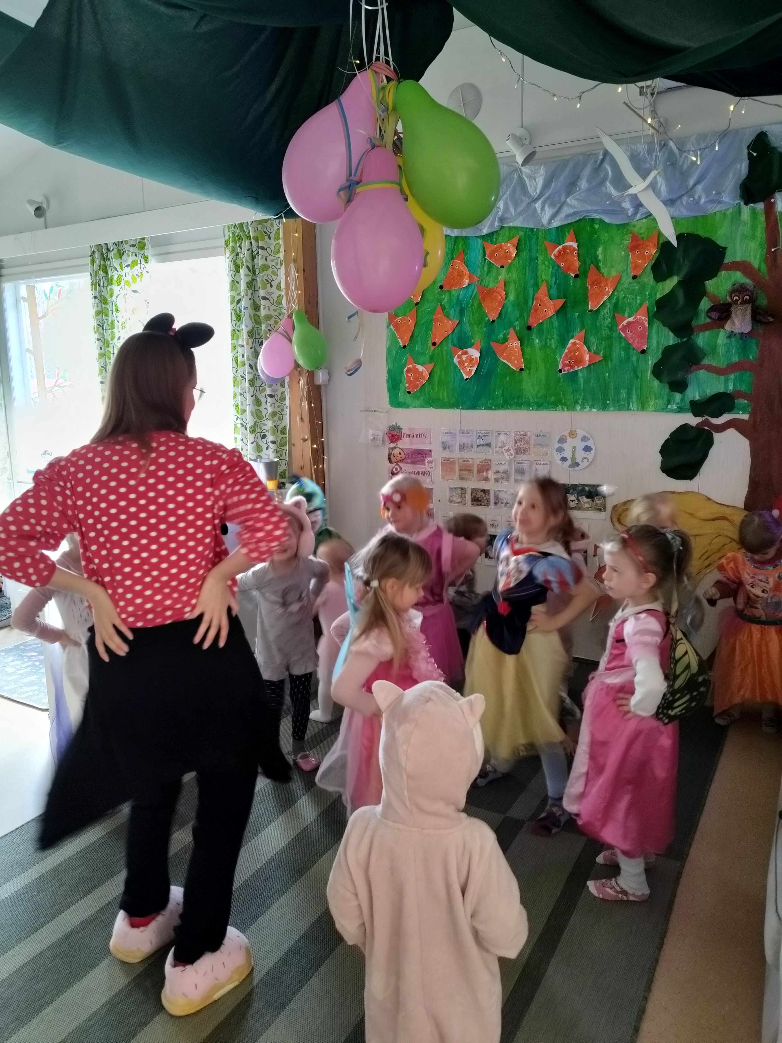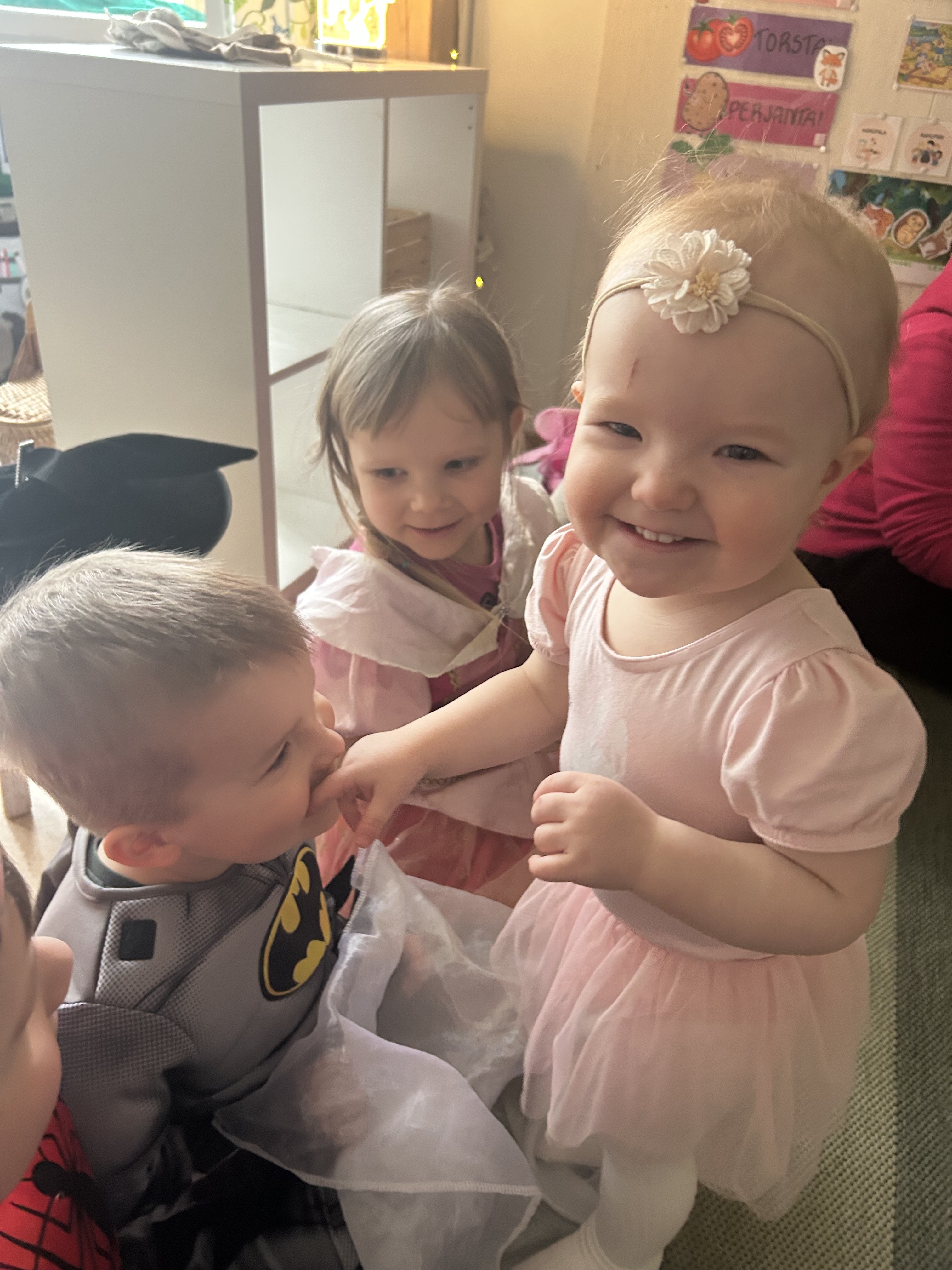 Lapset usein toivovat musiikkia ja roolivaatteita. Iltapäivisin heillä onkin monesti tanssifiilis ja saamme törmätä hauskoihin hahmoihin 🙂