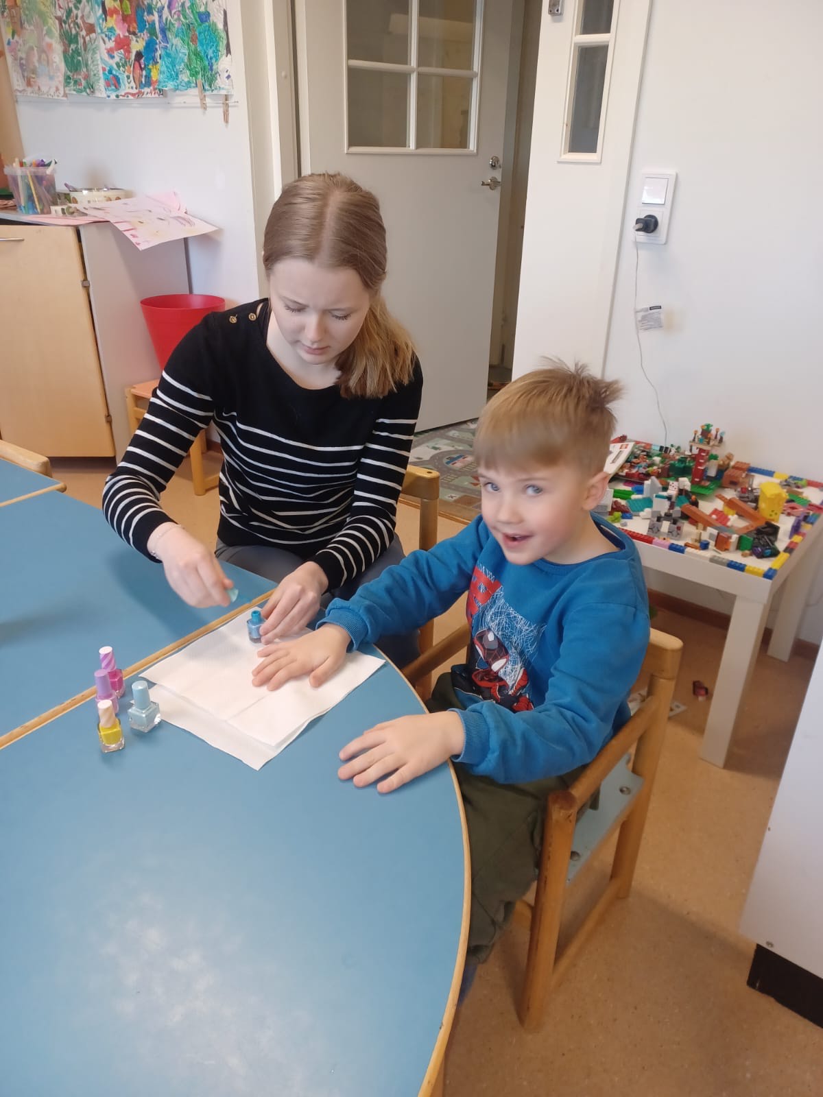 Ennen pääsiäistä opiskelijamme Aada ja Ella suunnittelivat lapsille munajahdin sekä toiminnallista ohjelmaa pommaan. Lapset etsivät innoissaan piilotettuja pääsiäismunia ympäri päiväkotia eri vihjeiden avulla. Pukeuduimme toki teemaan sopivasti 🙂
