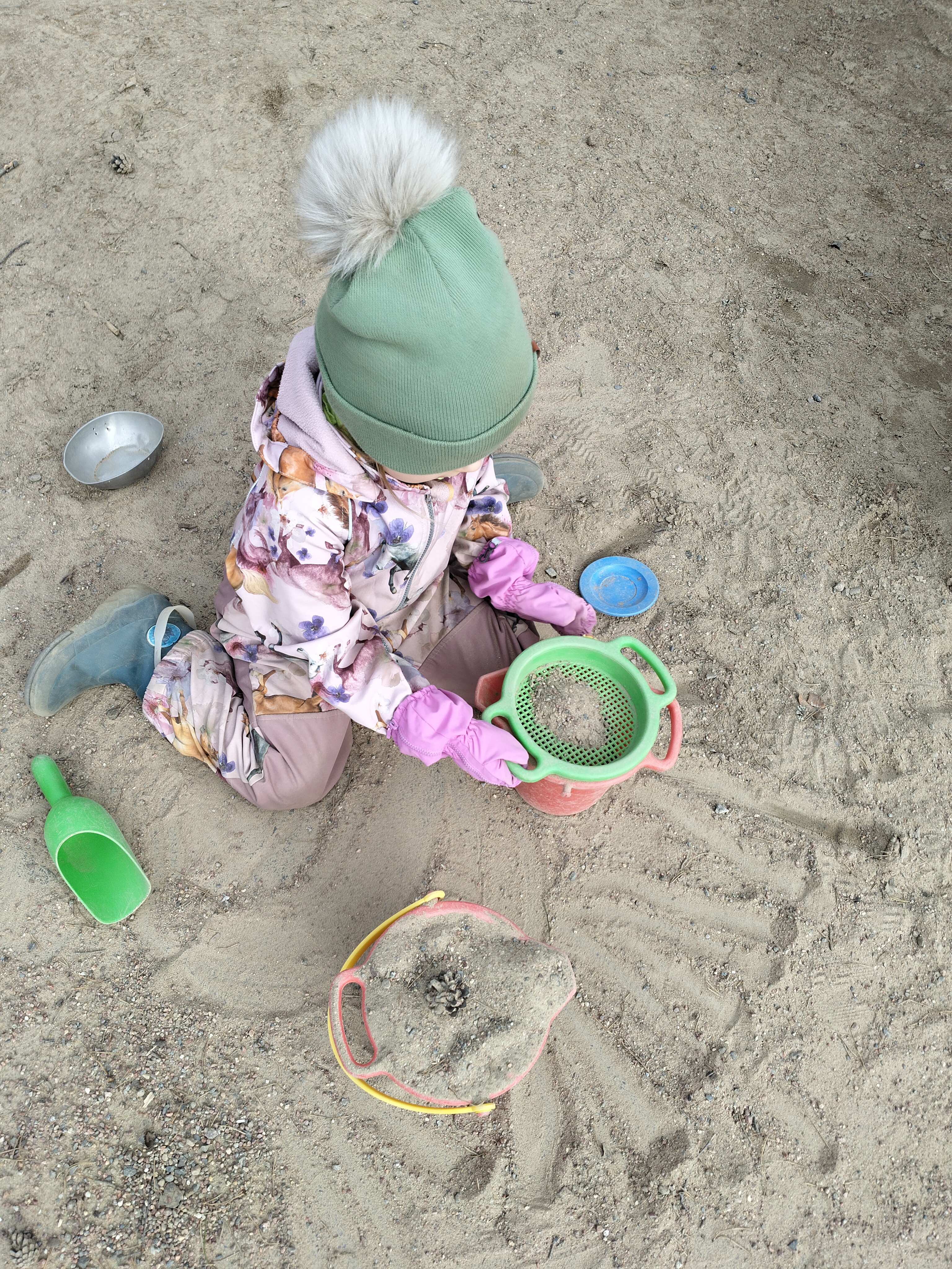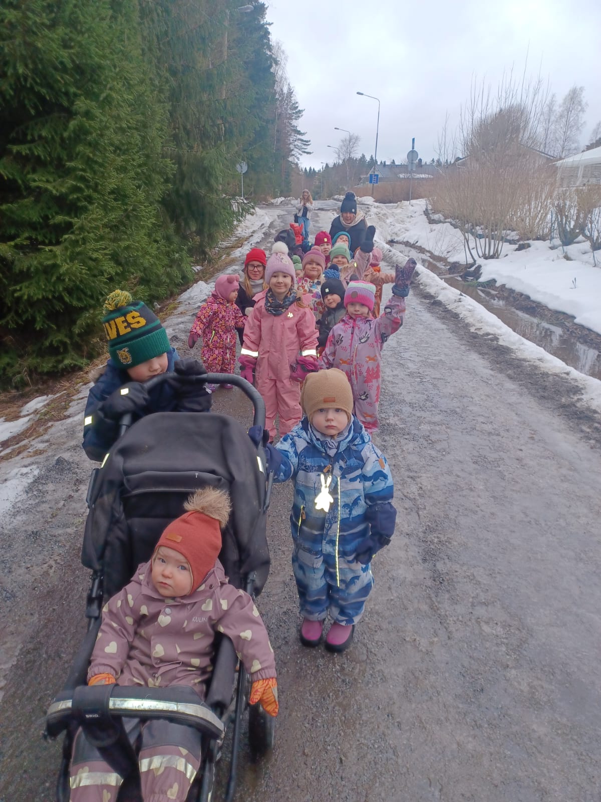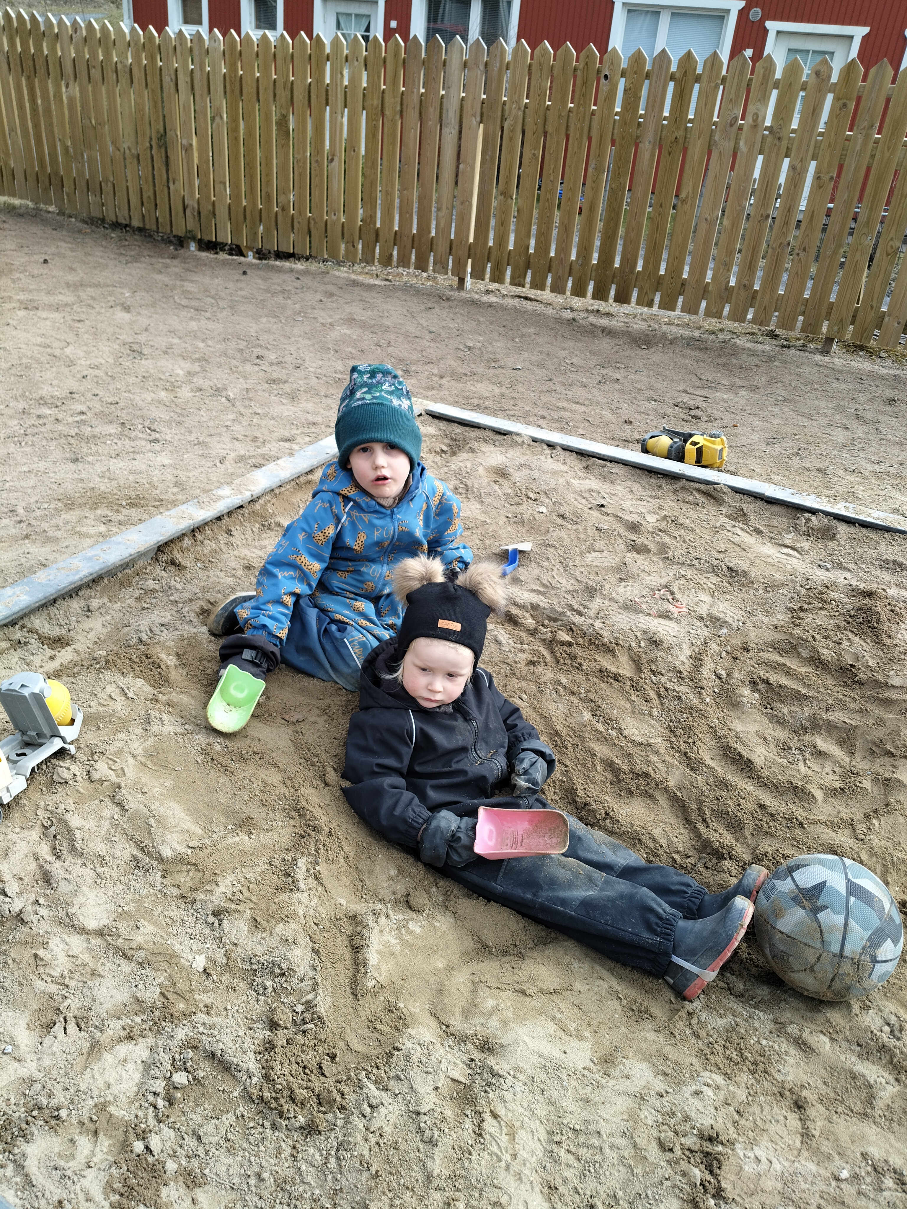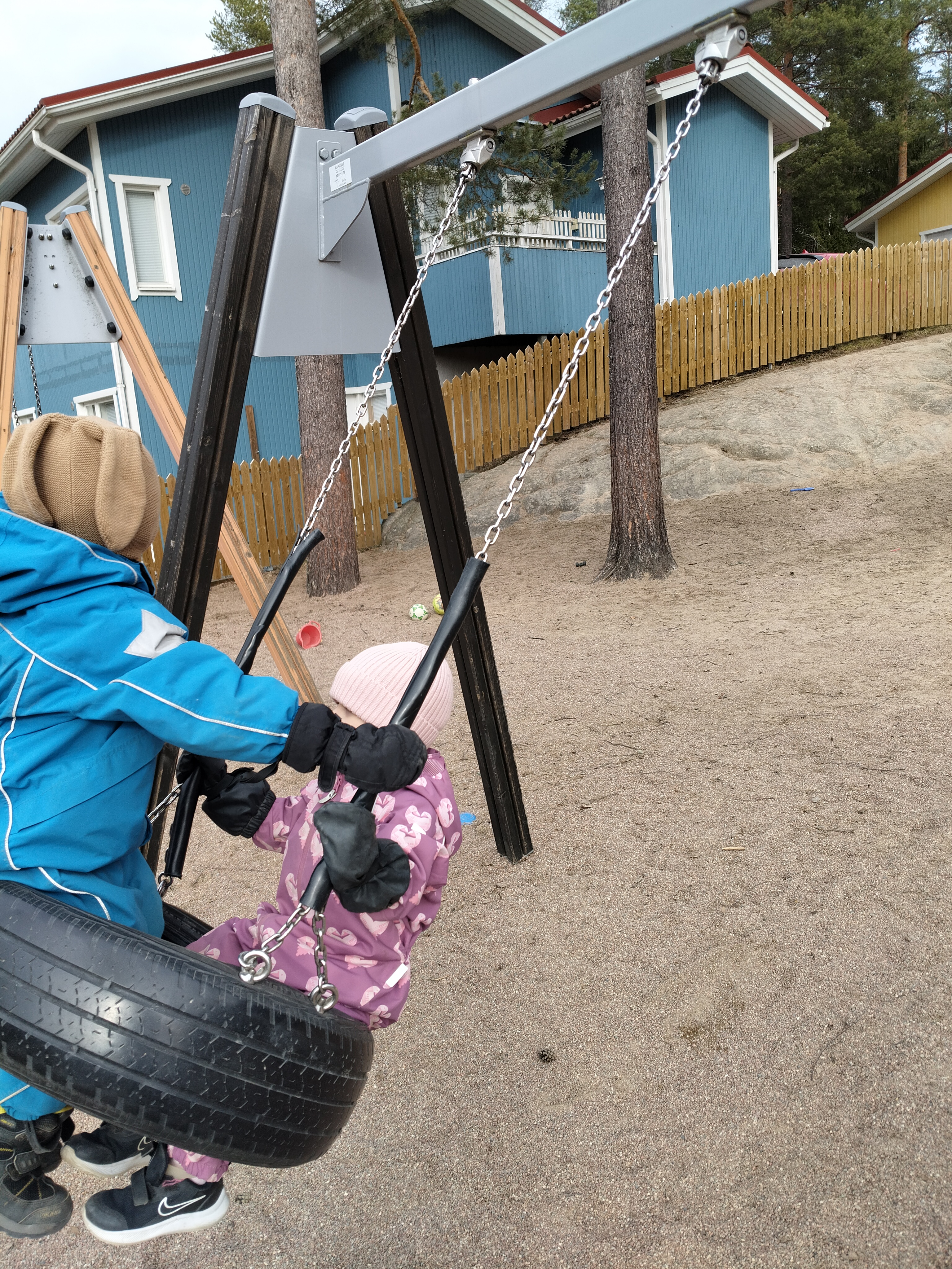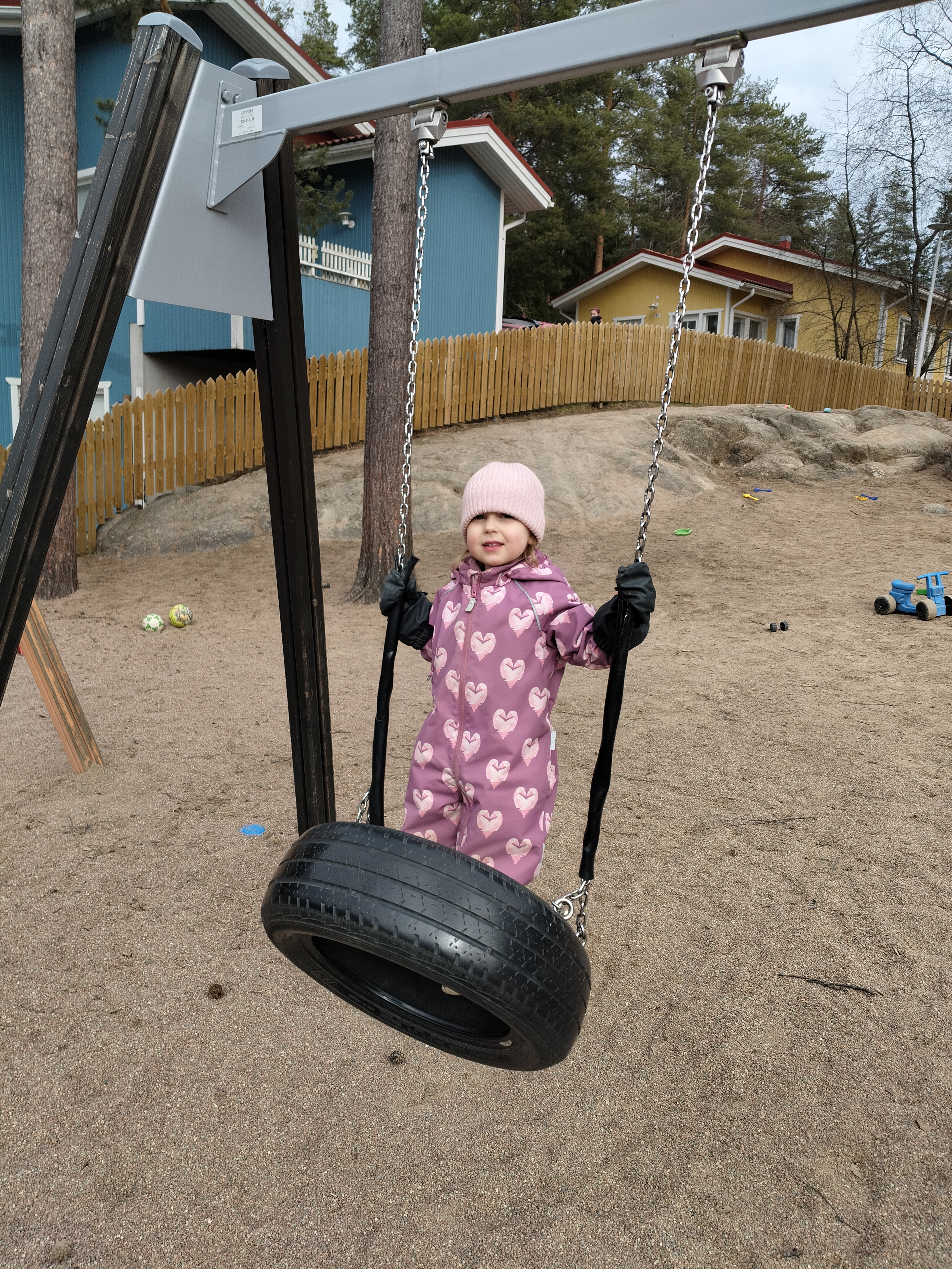 Olemme nauttineet auringon lämmöstä ja lapset ovat olleet innoissaan kun maa on sulanut ja taas pääsee tekemään kaivauksia. Keinuminen on talven tauon jälkeen myös superkivaa 🙂