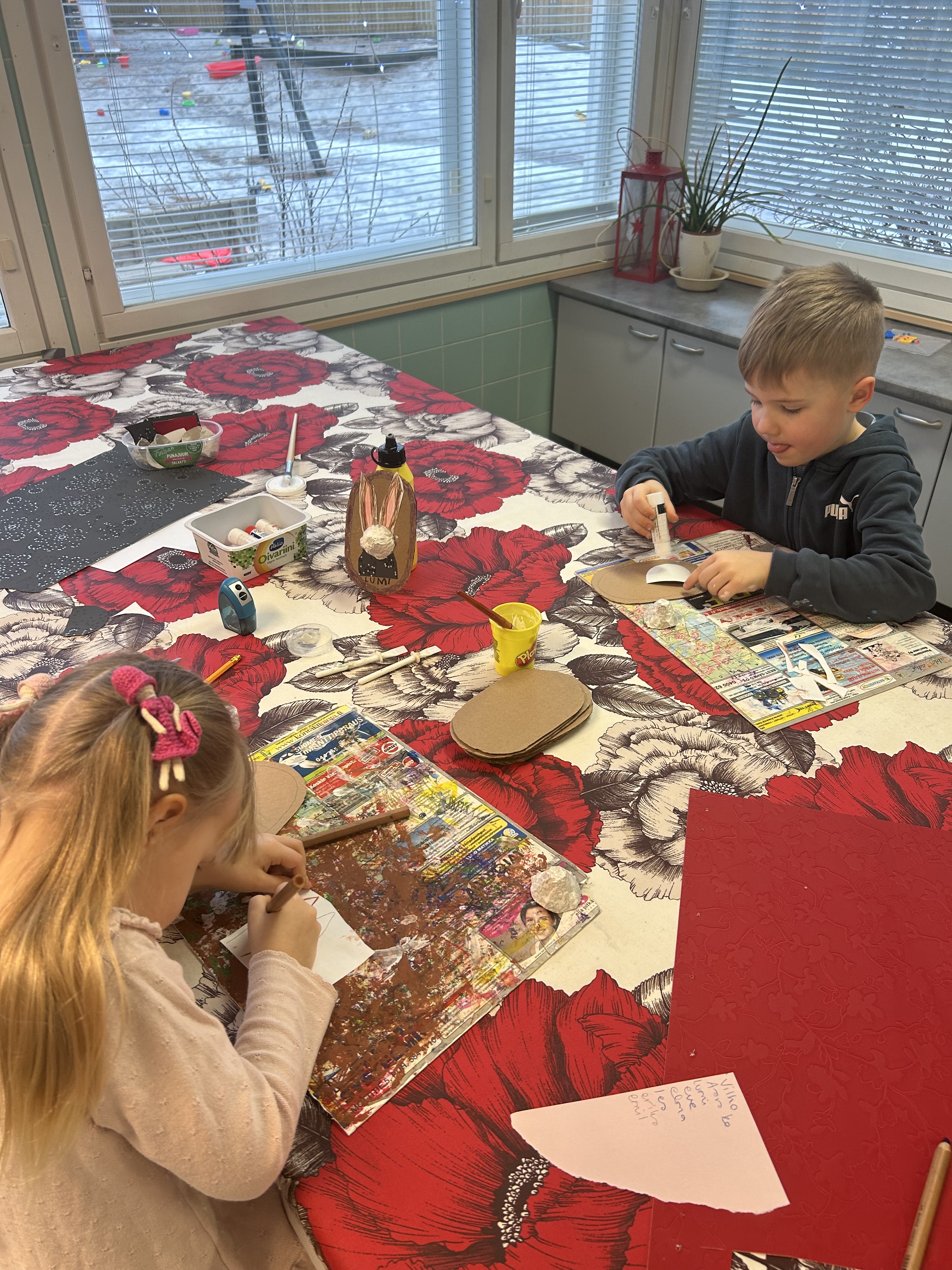 Jatkoimme myös silkkipaperiaskarteluja ja kaikki saivat pupunsa valmiiksi…