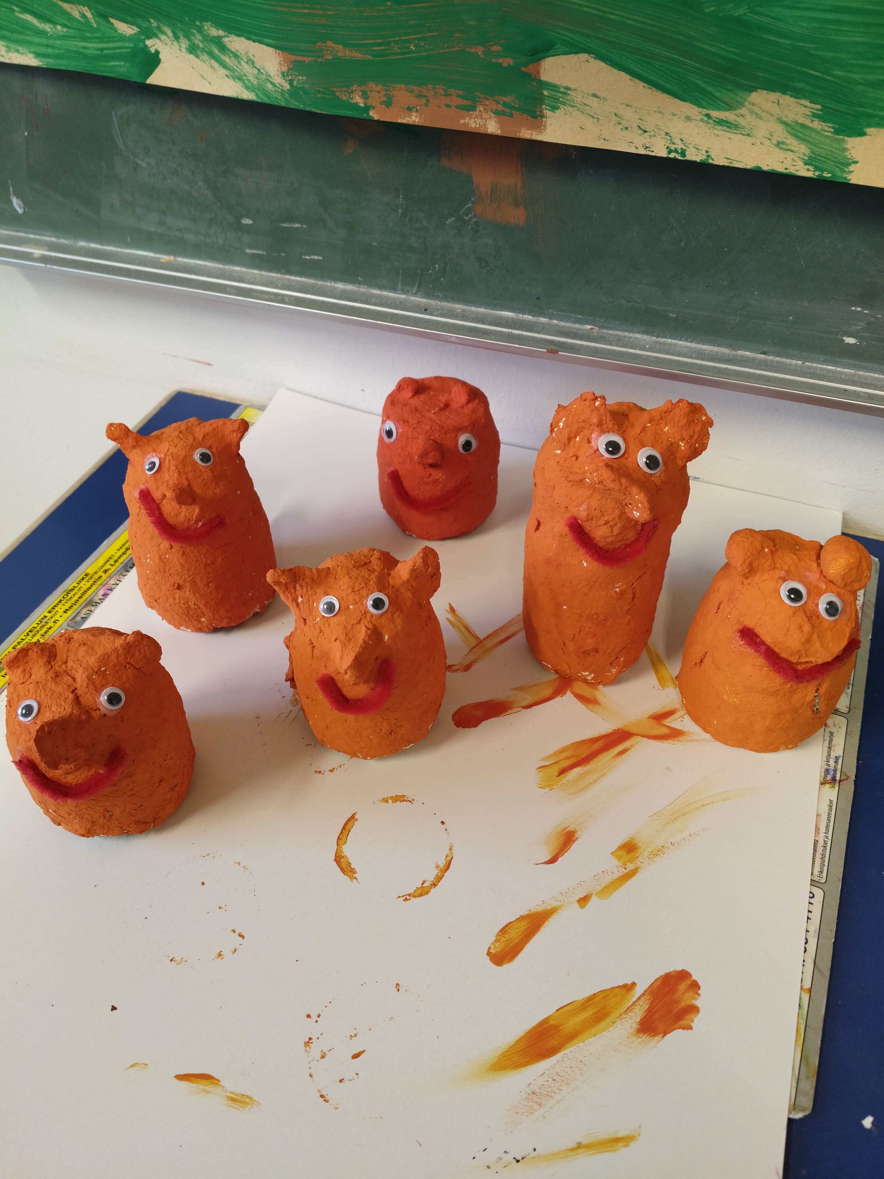 Taidetarvike Mannerin kanssa teimme taannoin paperimassasta kettuja ja nyt pääsimme maalaustoimiin 🙂 Näistä tuli todella hienoja. Teemme paperimassa askarteluja lisää kevään aikana.