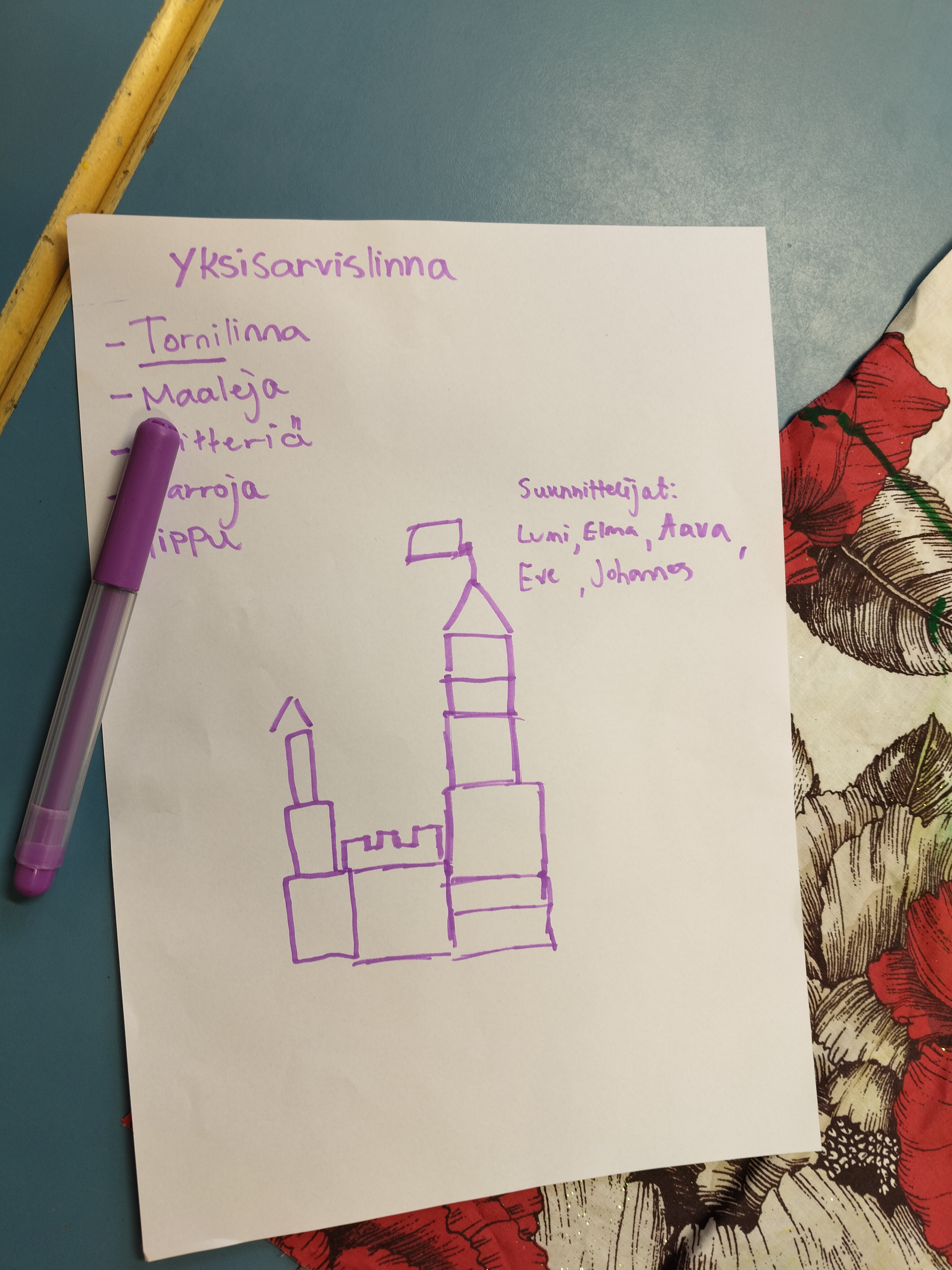 Lapsilta tuli hyviä ideoita ja näitä alettiinkin heti suunnittelemaan 🙂