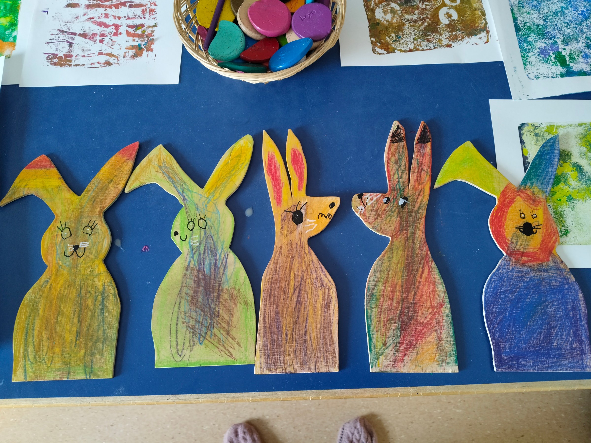 Hiihtolomalta ollaan palailtu, leikit jatkuu ja projektia olemme jatkaneet pupuaskarteluiden merkeissä. Leikkasimme pahvista taulupohjia joihin lapset saivat liimata munakennoista kuonot ja askarrella korvat ja mekot. Koristelimme taulujen reunat glitterliimalla 🙂 tauluista tulee hienoja. Näitä jatkamme ensiviikolla…
